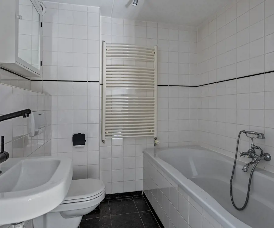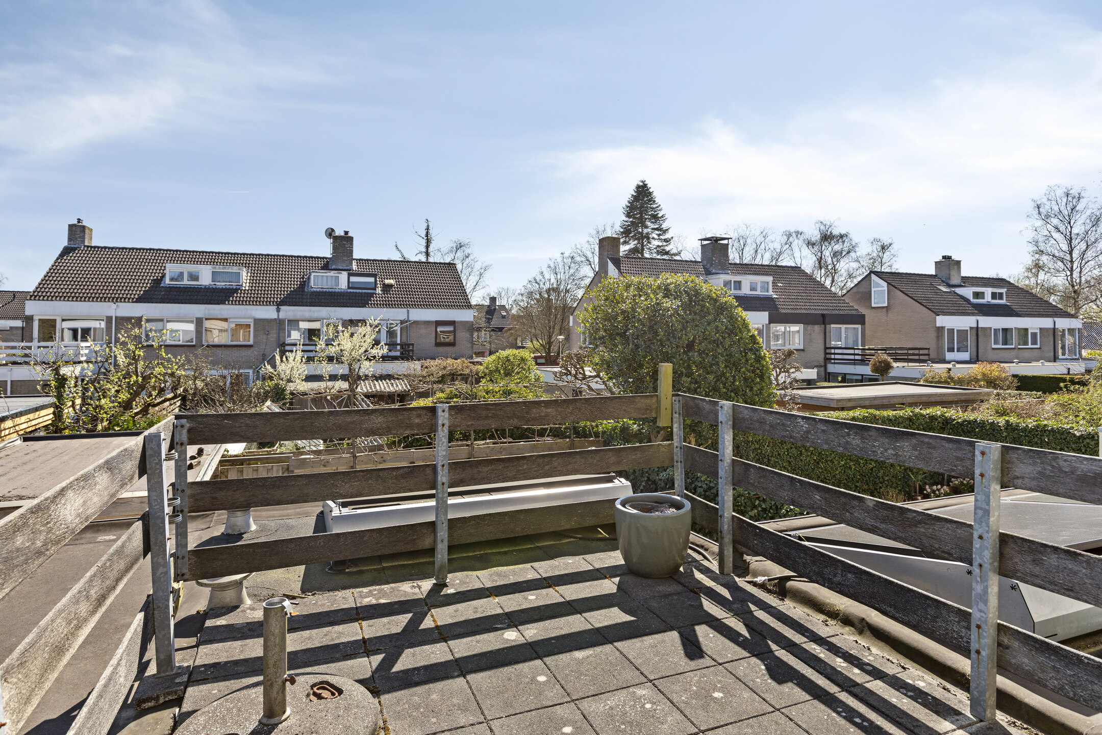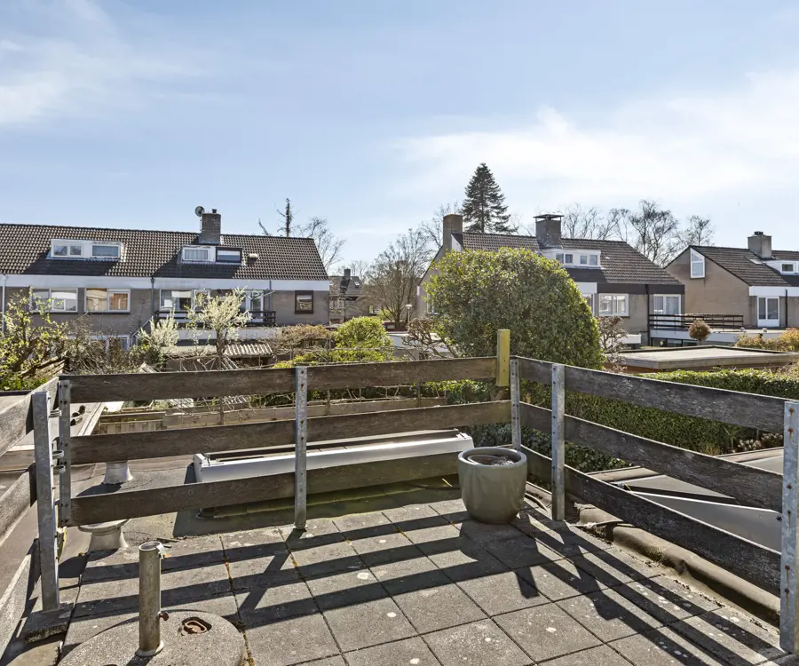 Op de eerste verdieping bevinden zich drie ruime slaapkamers, allemaal licht en goed van formaat. De badkamer is uitgerust met een douche/ligbad, wastafel en tweede toilet. Via de master bedroom is tevens het zonnige dakterras aan de achterzijde bereikbaar – een heerlijke plek voor een kop koffie in de ochtendzon.