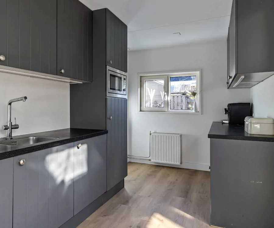 Bij binnenkomst in de ruime hal ervaar je direct het gevoel van ruimte. De centrale entree biedt toegang tot een toilet, trapopgang, meterkast en doorgang naar de woonkamer. De woonkamer is royaal opgezet en voorzien van een sfeervolle houtkachel en grote raampartijen die zorgen voor veel lichtinval. Aansluitend vindt je de riante aanbouw, die perfect dienst kan doen als extra zitkamer of eetkamer. Deze aanbouw biedt via een schuifpui toegang tot de tuin. De open keuken is voorzien van diverse inbouwapparatuur. De ruime bijkeuken en de garage is inpandig te bereiken wat zorgt voor volop bergruimte en praktisch gemak.
