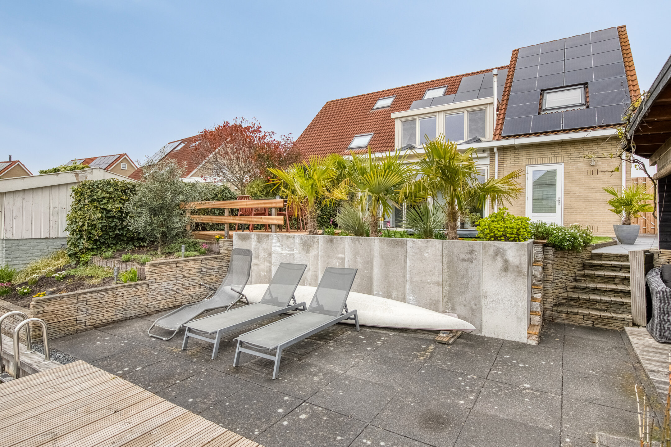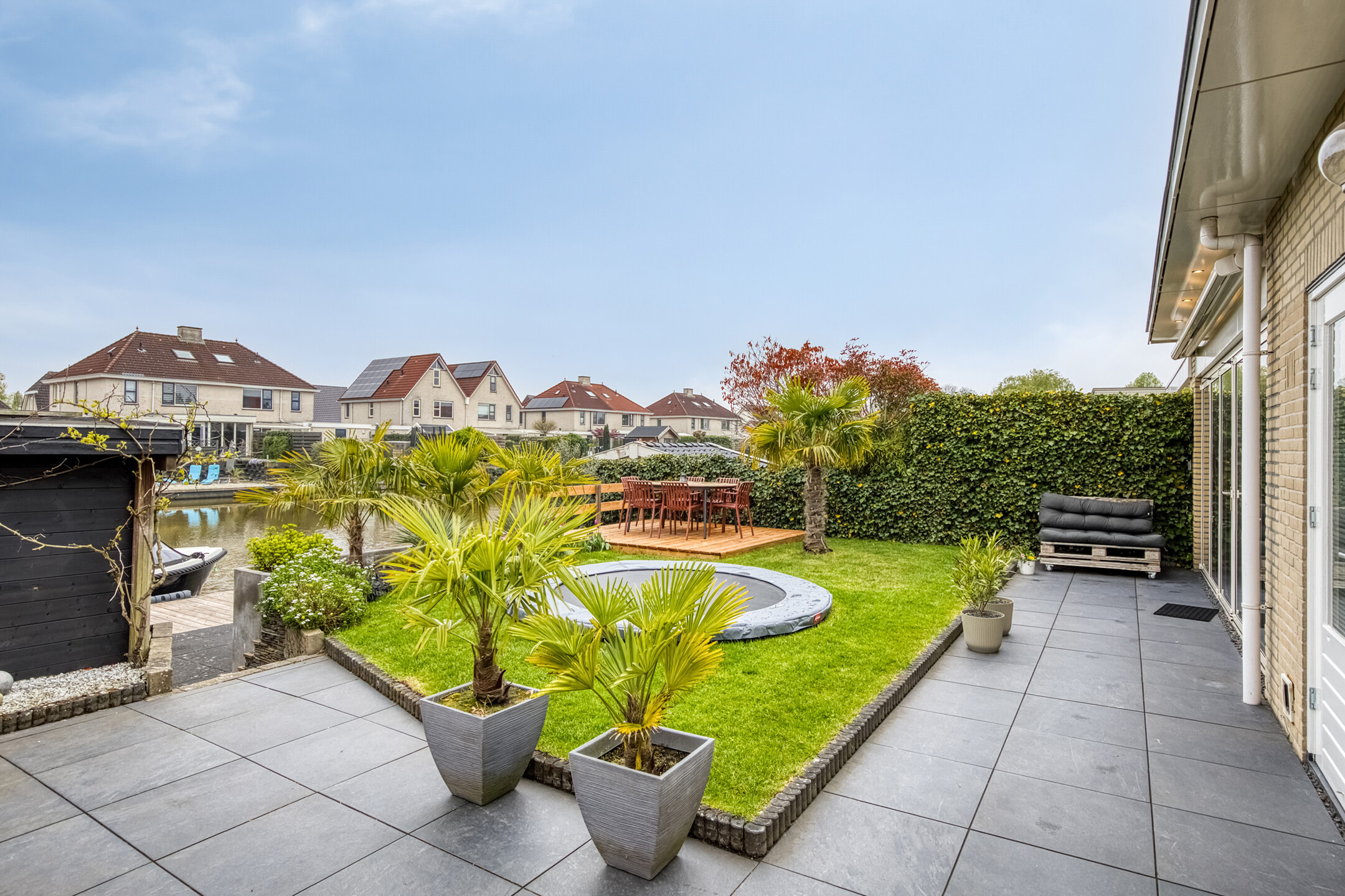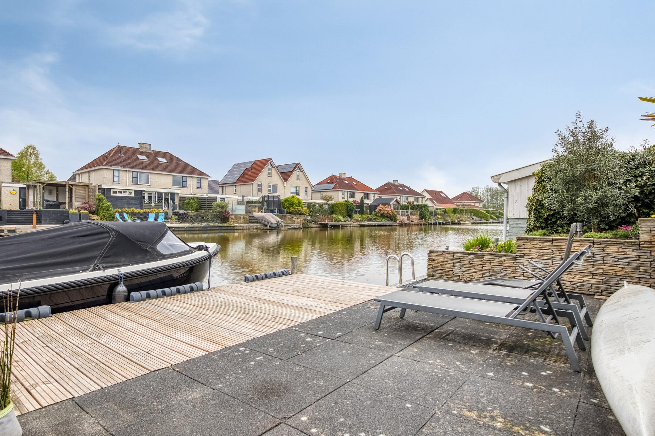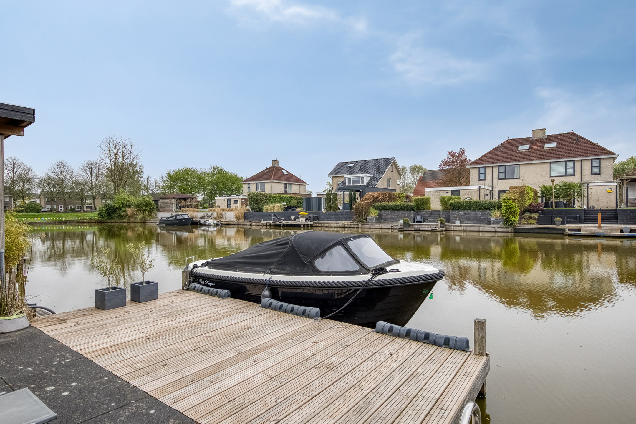 Tuin: de achtertuin is werkelijk een pareltje! Fraai aangelegd, gelegen aan het water en voorzien van een nieuw terras en schutting (2024) en vernieuwde beschoeiing (2023). Hier kun je heerlijk genieten van lange zomeravonden aan het water. Via de eigen aanlegsteiger stap je zo in je bootje om het water op te gaan. Een unieke plek waar ontspanning en natuur samenkomen.