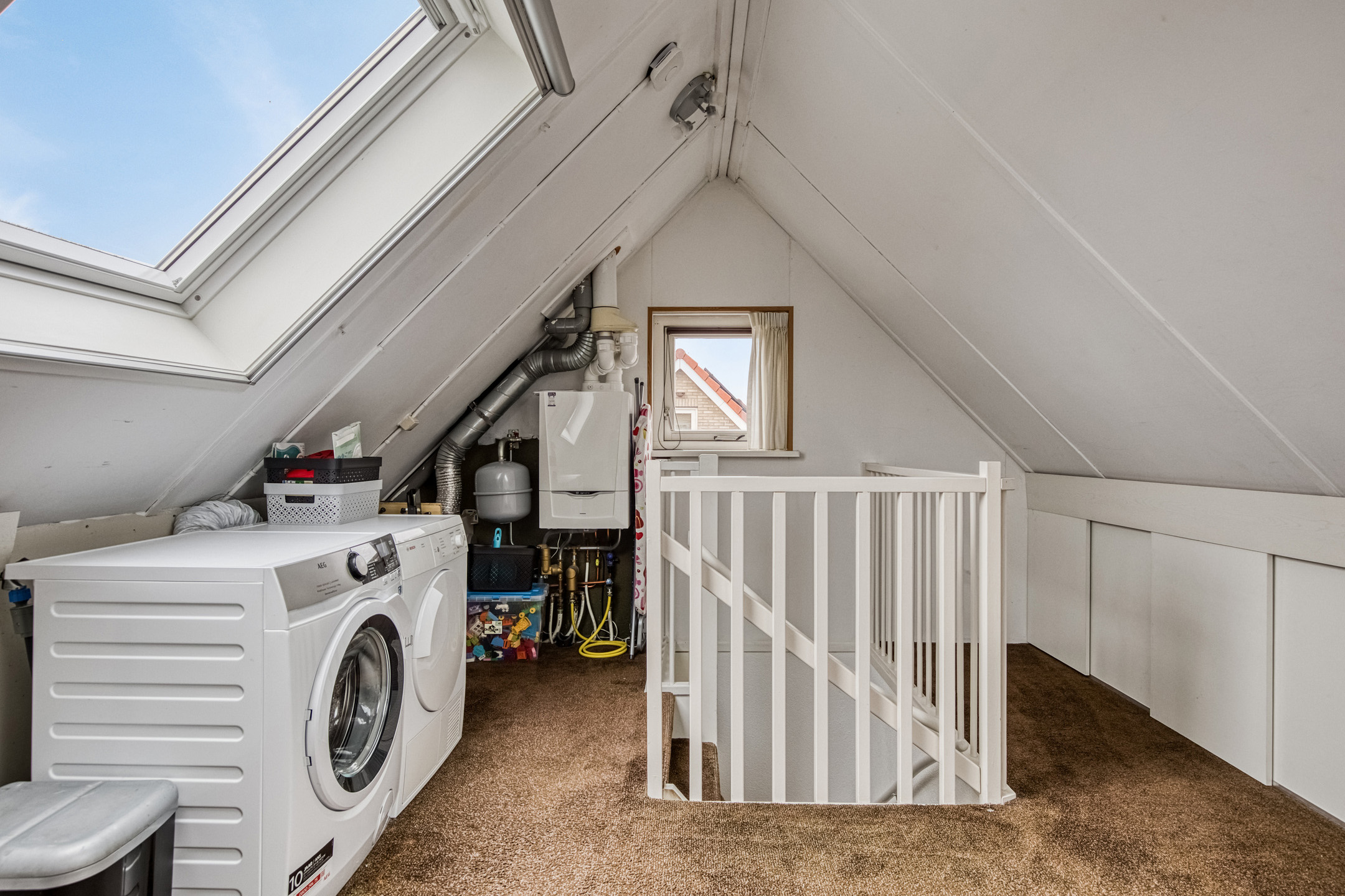 Tweede verdieping: de tweede verdieping biedt een ruime vierde slaapkamer en zolderruimte met wasmachine aansluiting. Deze verdieping is ideaal te gebruiken als extra slaapkamer, hobbyruimte of kantoor.
