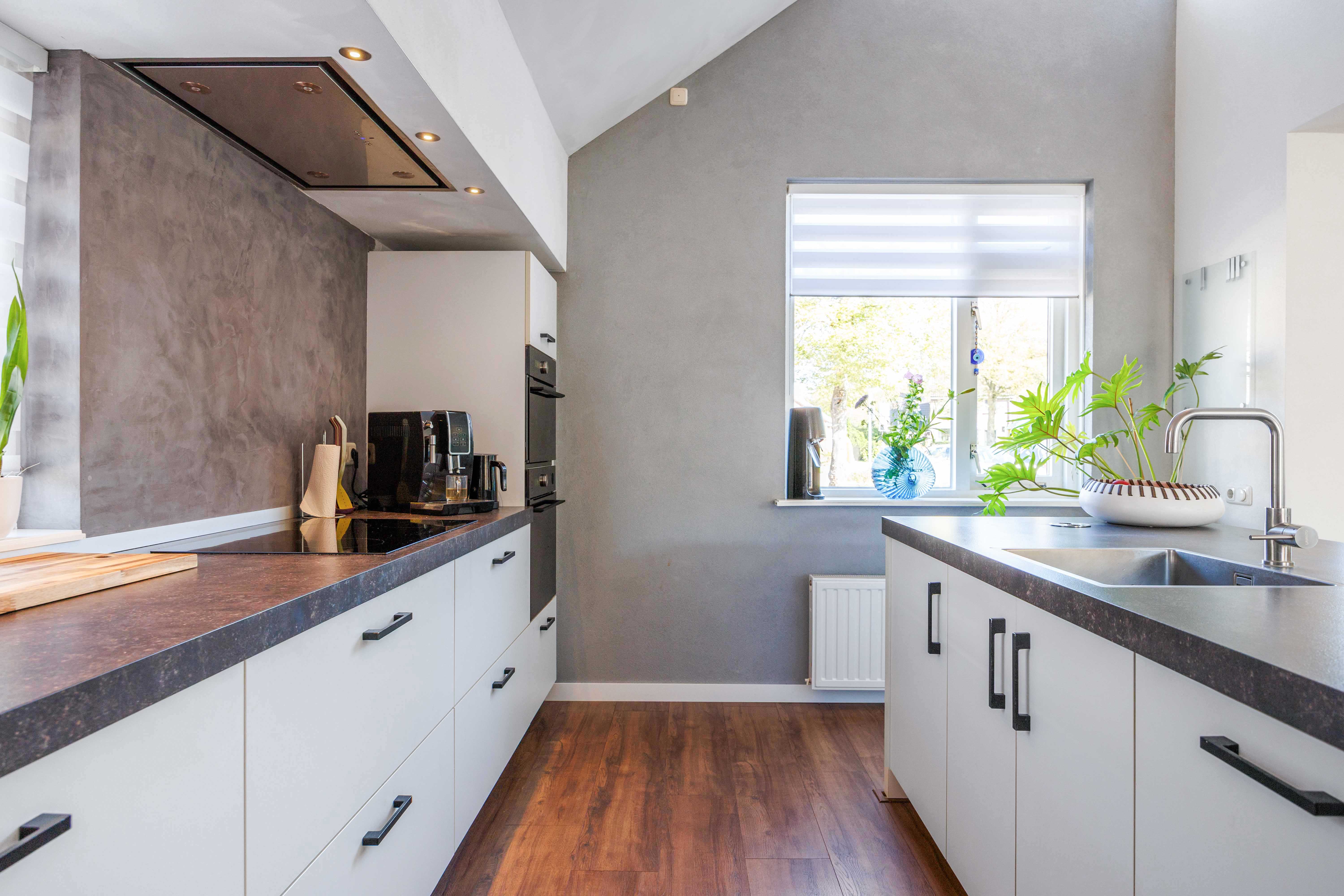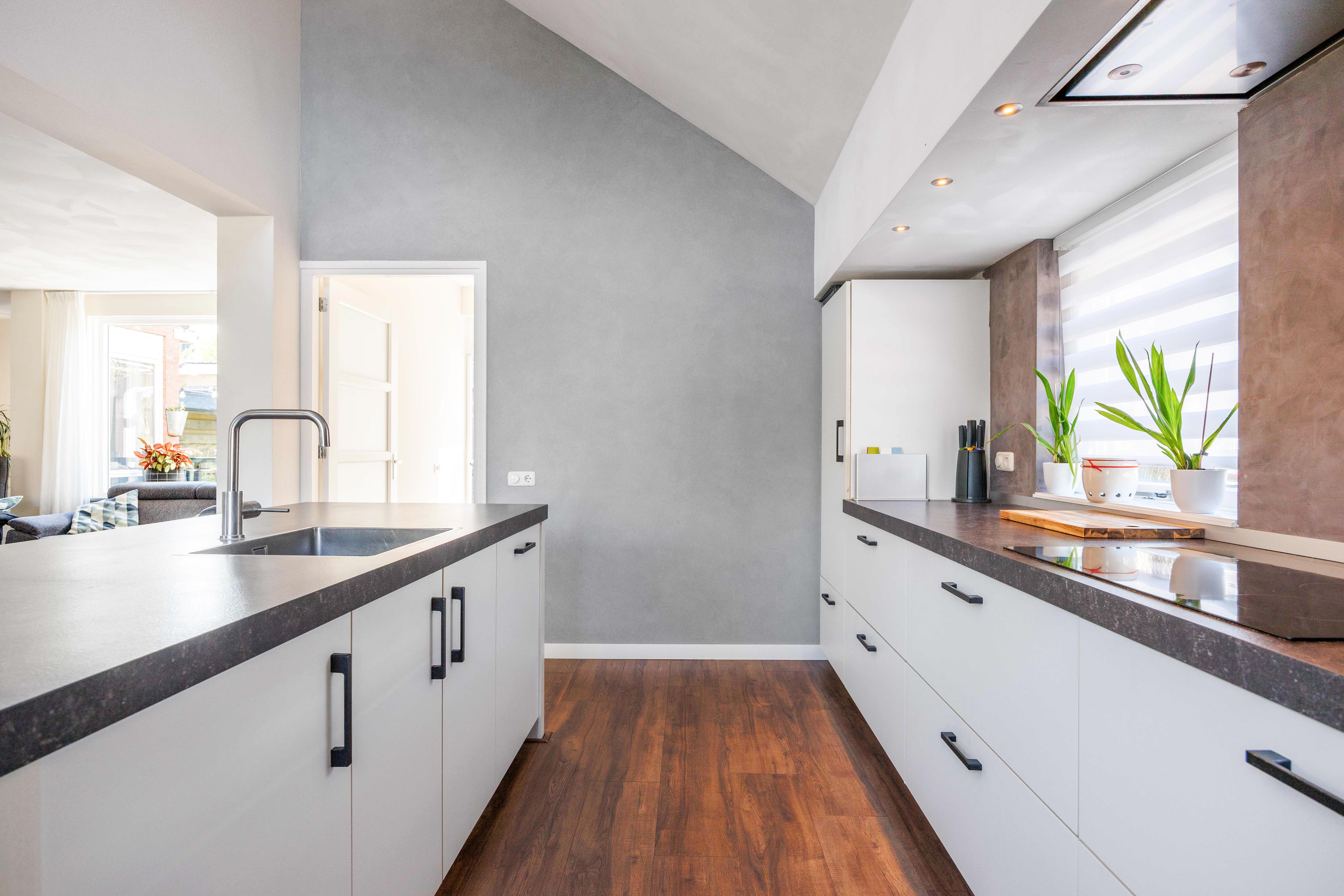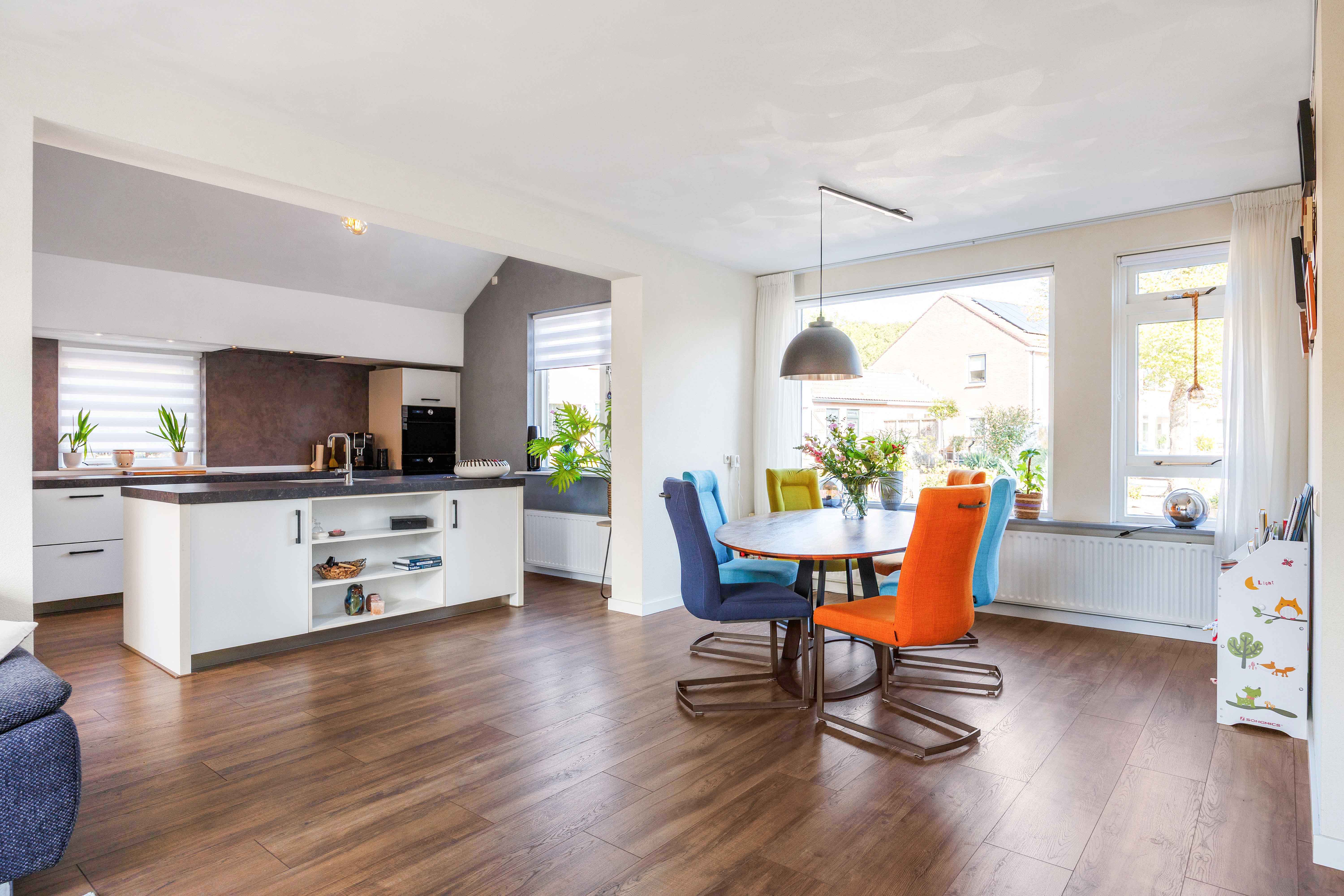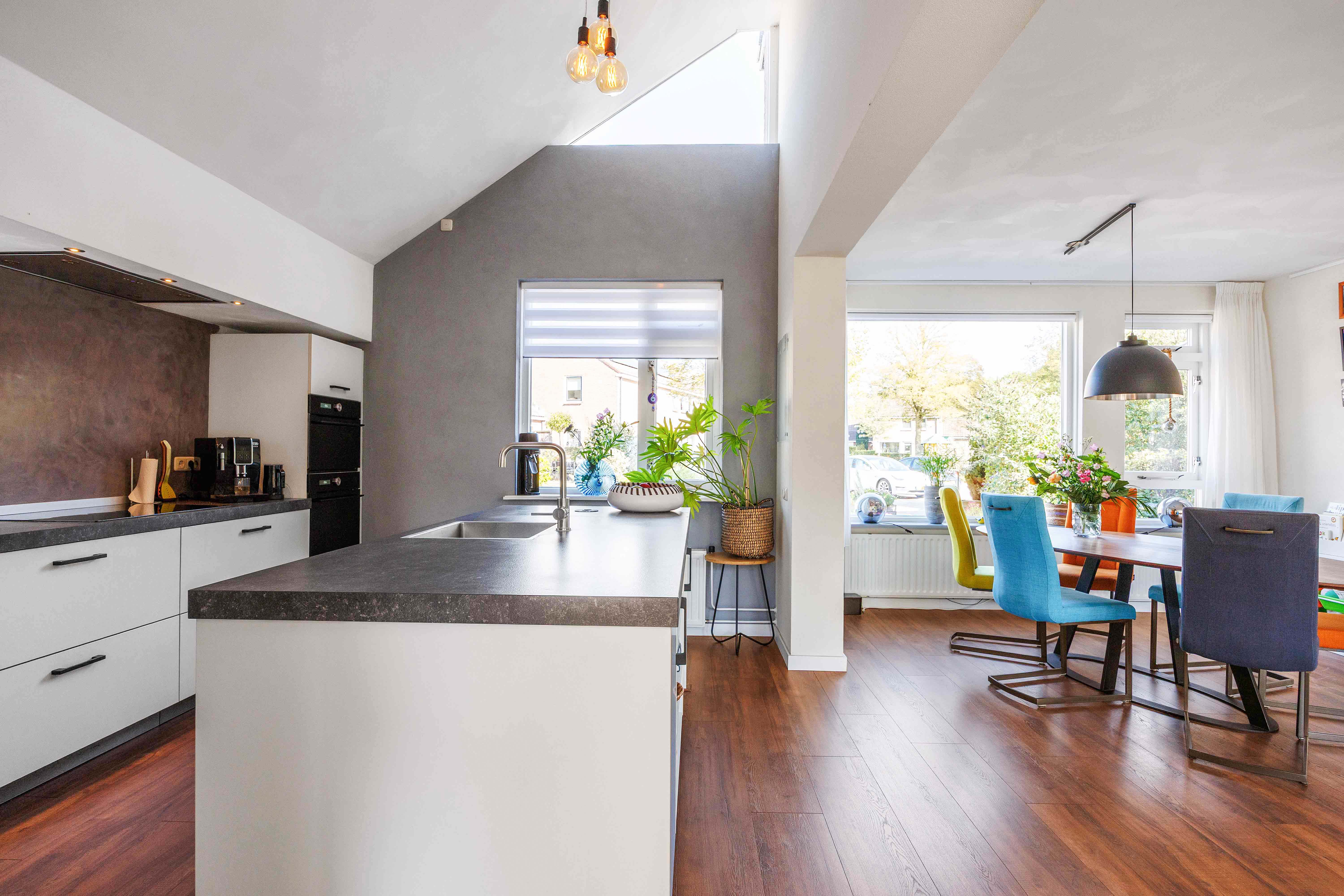 Begane grond: via de mooi aangelegde voortuin bereik je de voordeur. Wanneer je binnenkomt, tref je een hal met de meterkast, een modern toilet en een fraai afgewerkte trap met geïntegreerde verlichting. Vanuit hier loop je door naar de lichte en ruime woonkamer. Dankzij de grote ramen is dit een plek waar de zon heerlijk naar binnen schijnt. Aan de achterzijde bevindt zich een knusse zithoek en aan de voorzijde is volop ruimte voor een royale eethoek. Aangrenzend vind je de moderne keuken met kookeiland, uitgevoerd in een strakke opstelling met volop kastruimte en inbouwapparatuur. Een ideale plek voor wie graag kookt of gezellig samenkomt met familie en vrienden. Aangrenzend aan de keuken bevindt zich een ruime hal met toegang tot de tuin en volop bergruimte. Direct daaraan vast ligt de bijkeuken/wasruimte, eveneens voorzien van veel praktische opbergmogelijkheden.