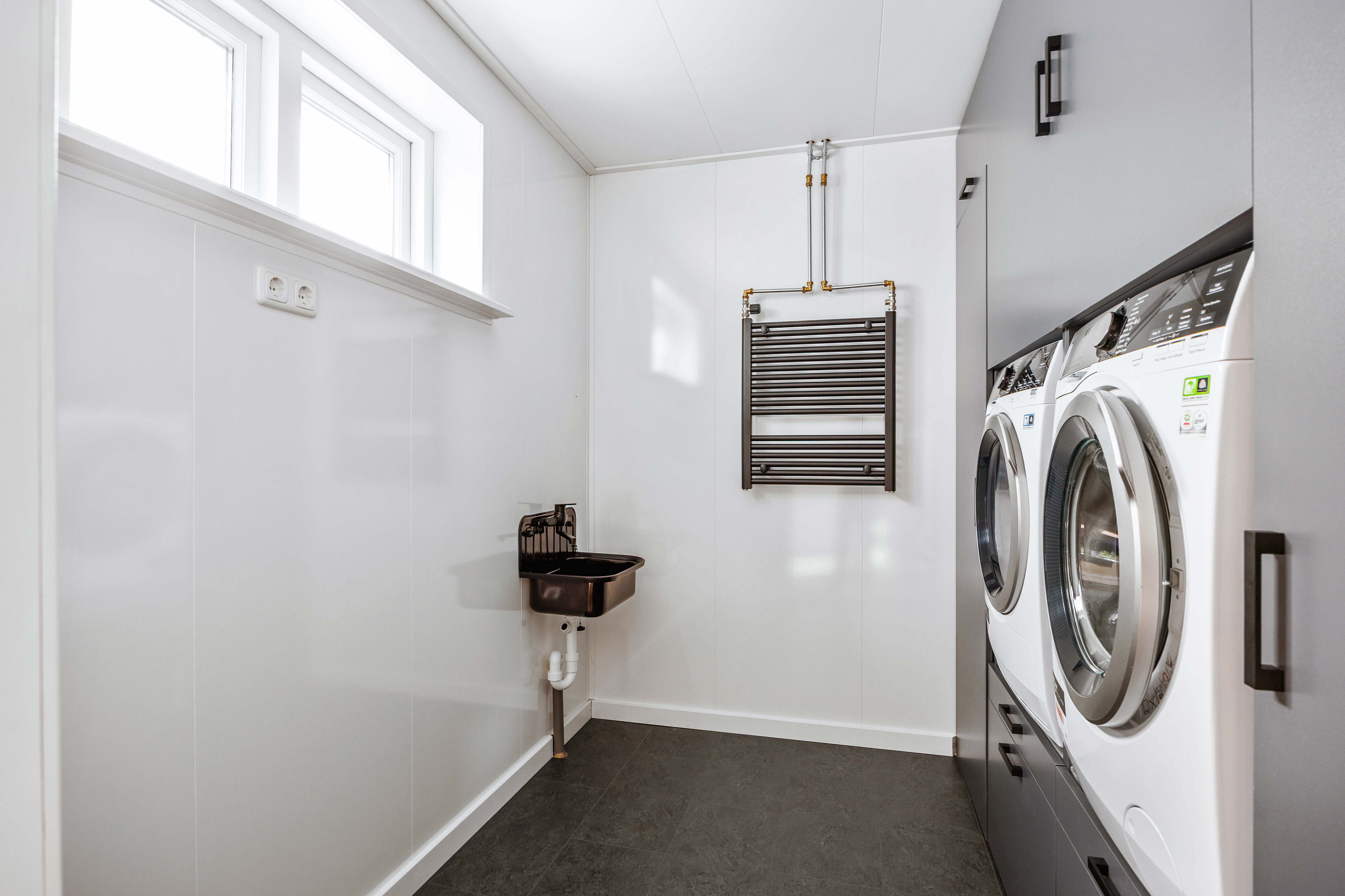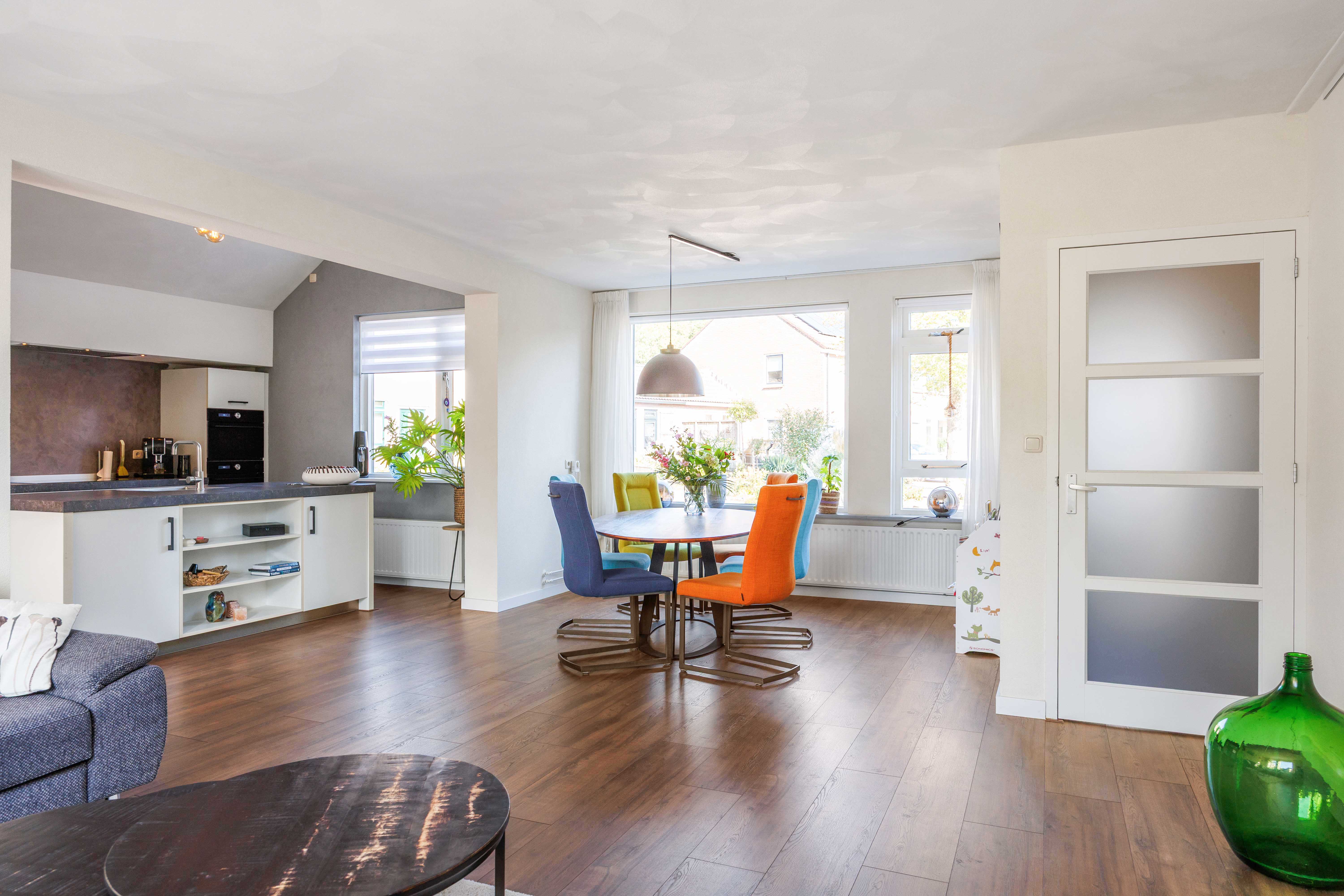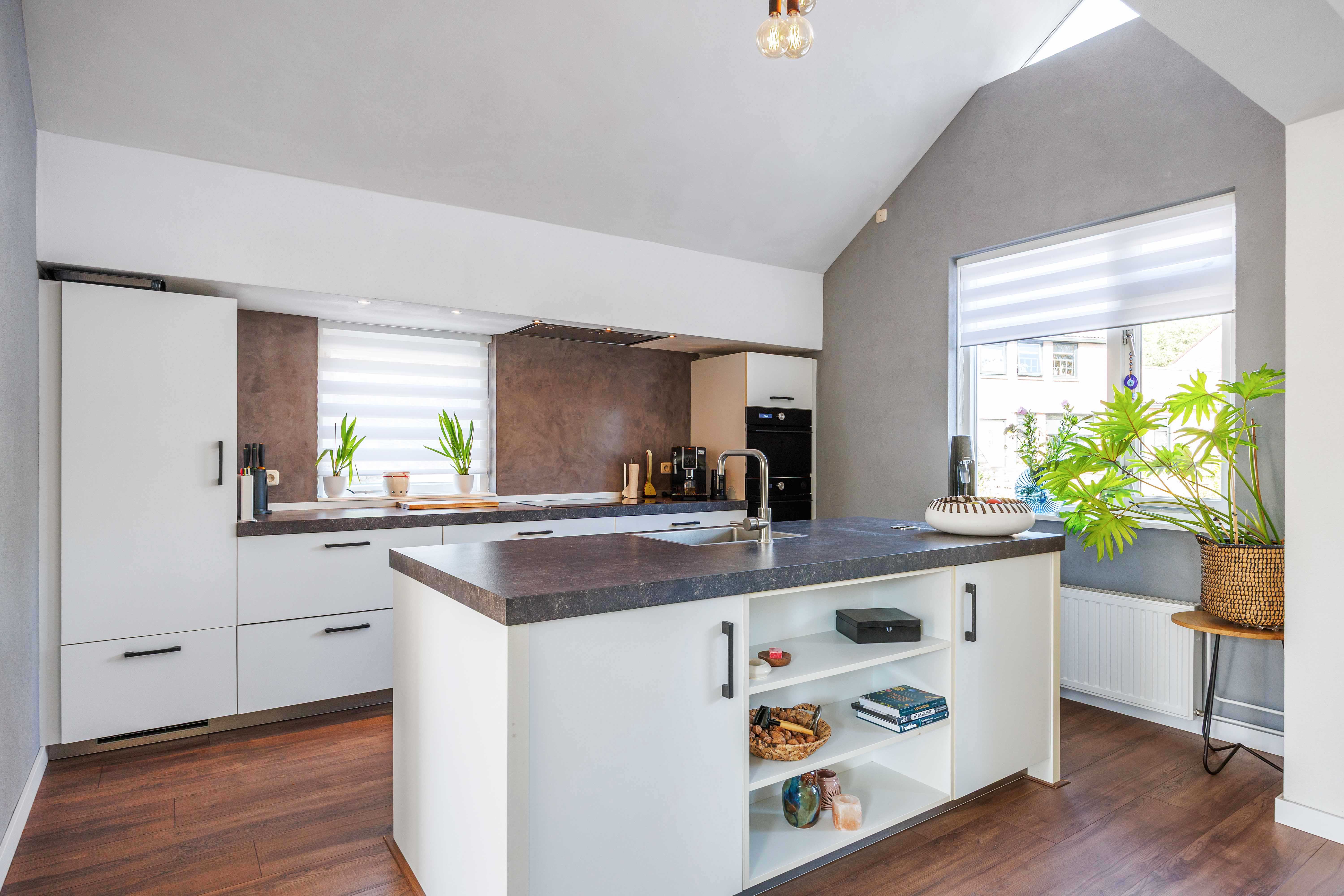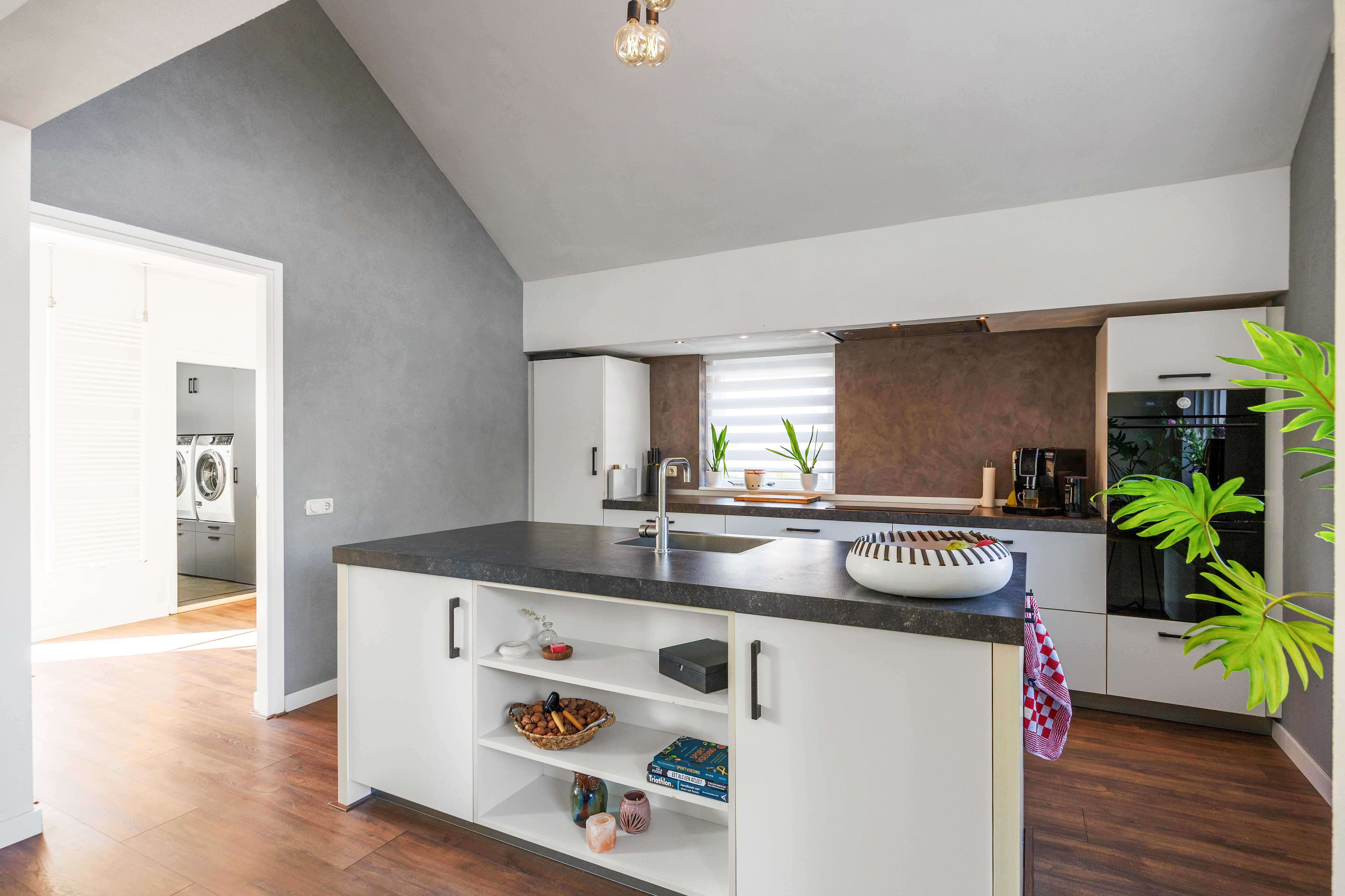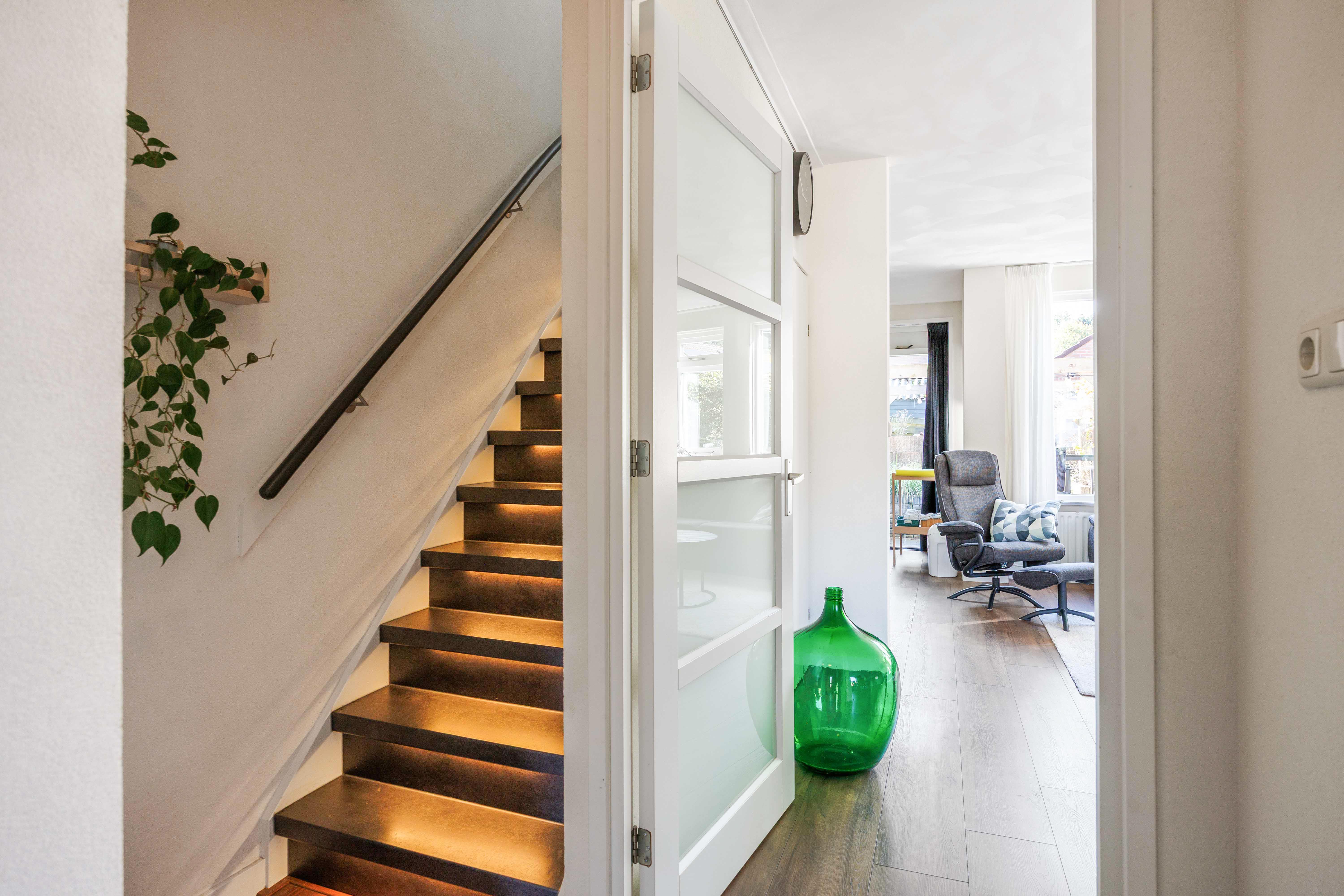 Begane grond: via de mooi aangelegde voortuin bereik je de voordeur. Wanneer je binnenkomt, tref je een hal met de meterkast, een modern toilet en een fraai afgewerkte trap met geïntegreerde verlichting. Vanuit hier loop je door naar de lichte en ruime woonkamer. Dankzij de grote ramen is dit een plek waar de zon heerlijk naar binnen schijnt. Aan de achterzijde bevindt zich een knusse zithoek en aan de voorzijde is volop ruimte voor een royale eethoek. Aangrenzend vind je de moderne keuken met kookeiland, uitgevoerd in een strakke opstelling met volop kastruimte en inbouwapparatuur. Een ideale plek voor wie graag kookt of gezellig samenkomt met familie en vrienden. Aangrenzend aan de keuken bevindt zich een ruime hal met toegang tot de tuin en volop bergruimte. Direct daaraan vast ligt de bijkeuken/wasruimte, eveneens voorzien van veel praktische opbergmogelijkheden.