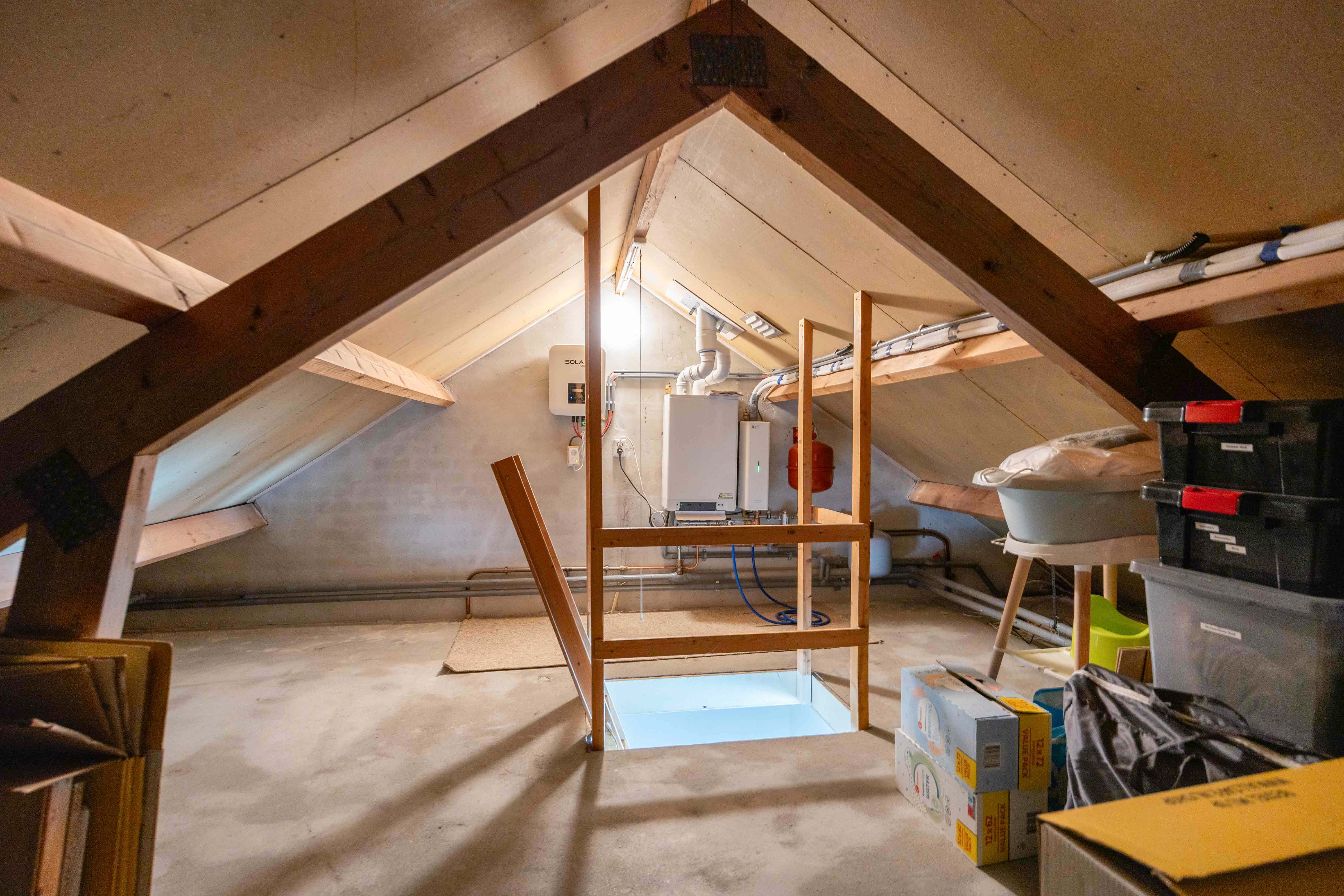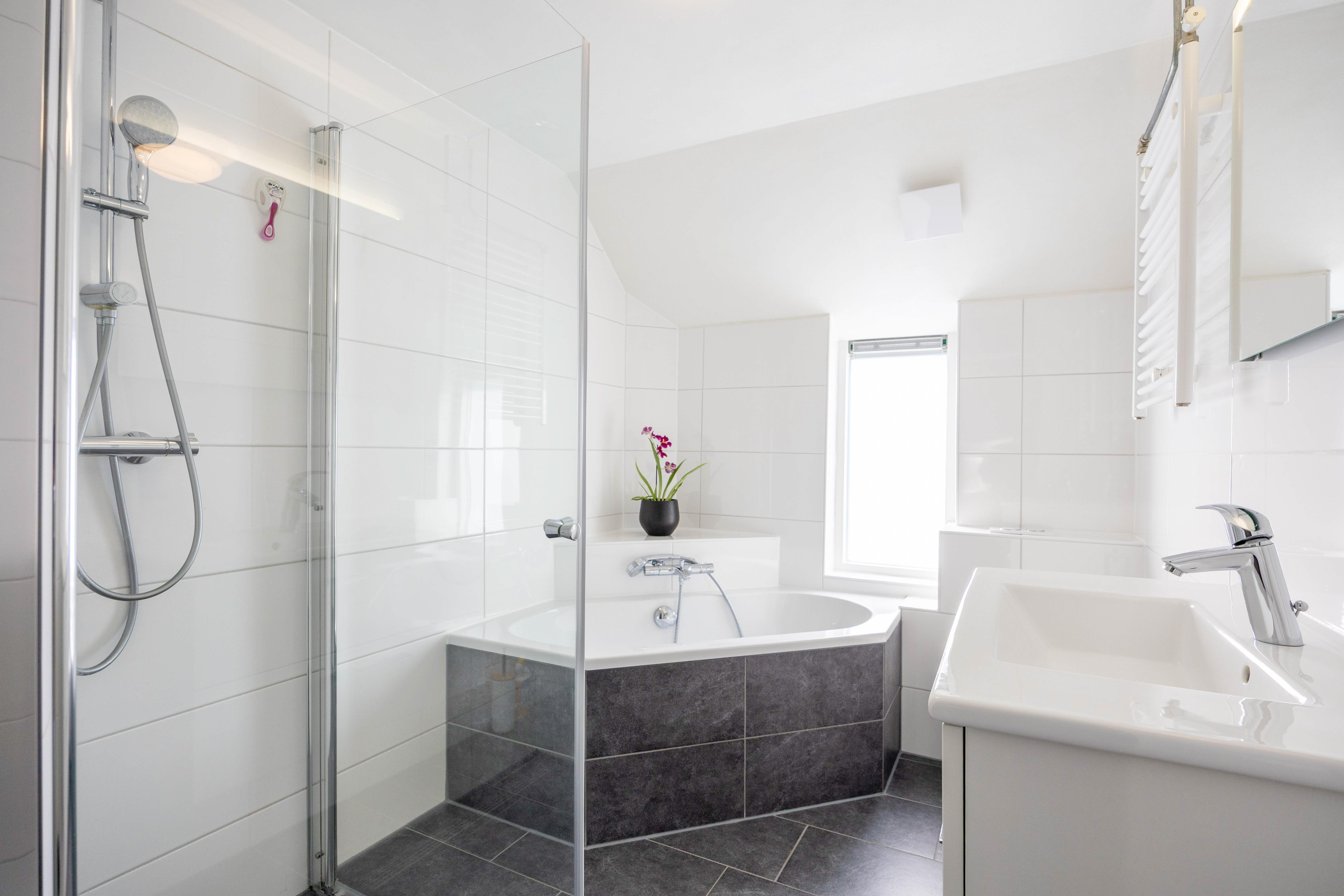 Eerste verdieping: op de eerste verdieping vind je drie slaapkamers en een moderne badkamer met inloopdouche, ligbad, wastafelmeubel en tweede toilet. De vliering is bereikbaar via een vlizotrap en biedt handige extra bergruimte.