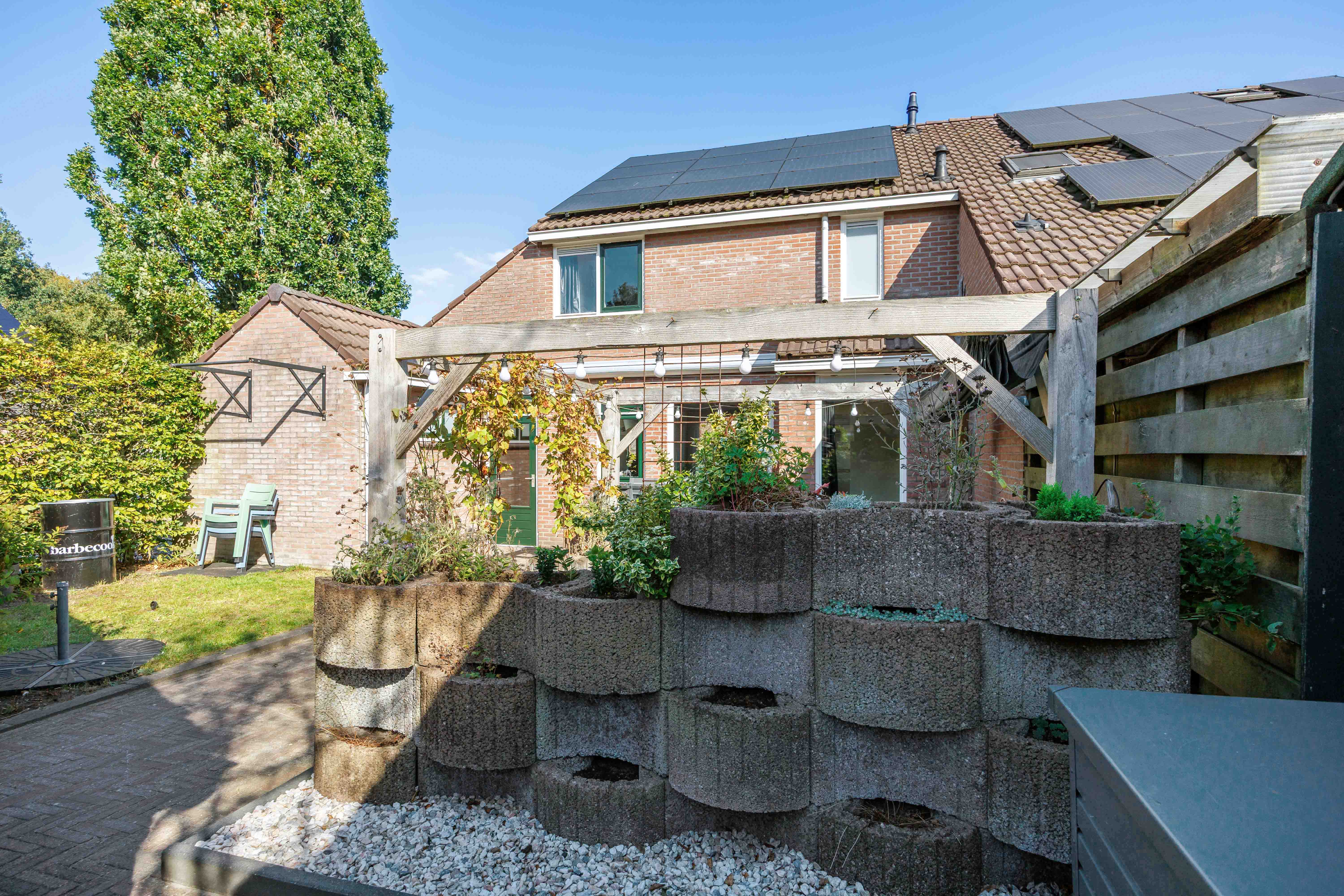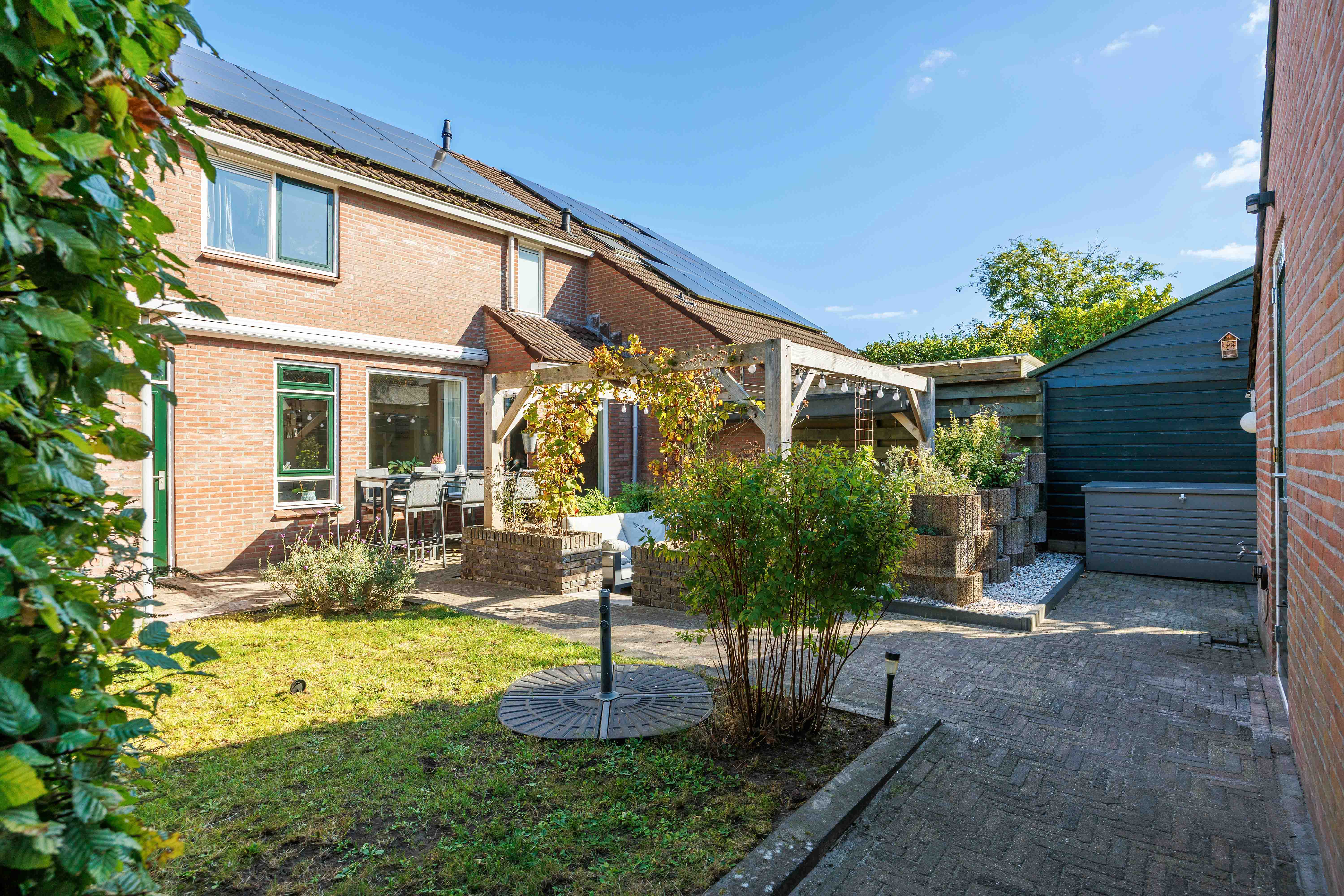 Buiten: de zonnige tuin biedt volop zitgelegenheden, waaronder een heerlijke plek voor een loungeset. Dankzij de ligging op een hoekperceel geniet je van extra privacy. Je auto parkeer je gemakkelijk op de oprit aan de voorzijde of bij de eigen garage aan de achterzijde.