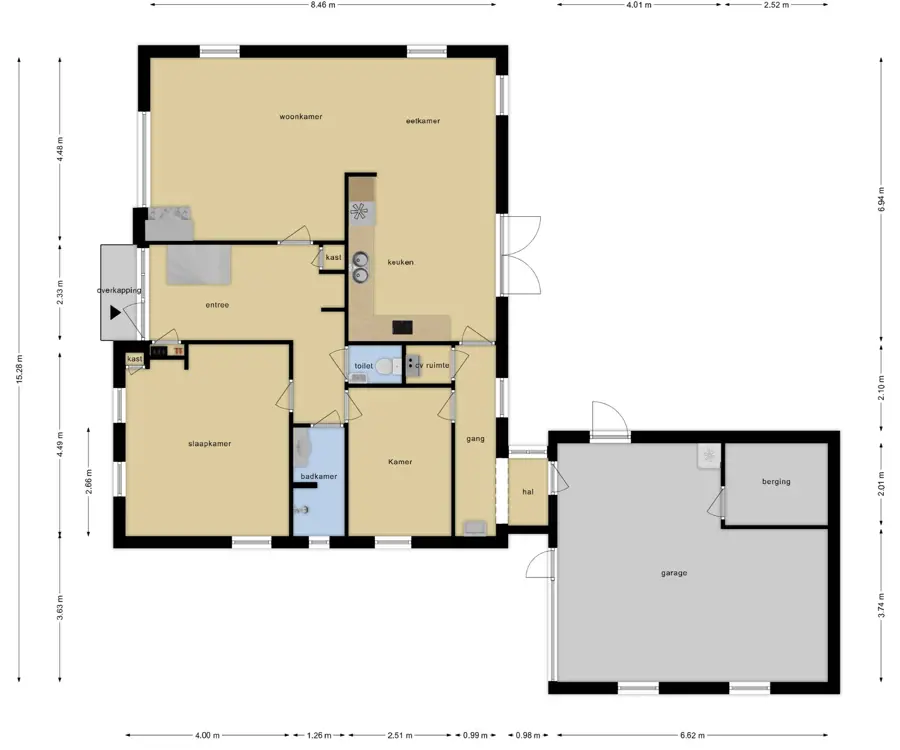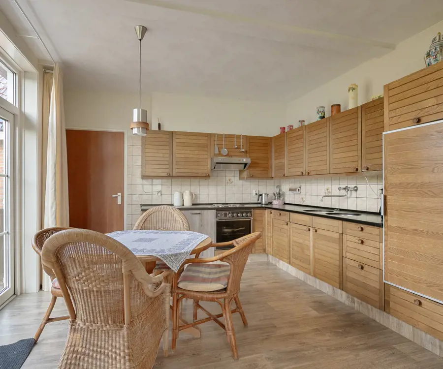 Begane grond: bij binnenkomst in de woning valt direct de ruime opzet op. In de hal bevinden zich de meterkast, toilet en trapopgang. De entree leidt naar een gezellige woonkamer met vrij uitzicht over de groene omgeving. Aangrenzend bevindt zich de eetkamer, die in open verbinding staat met de keuken. De keuken is ruim en functioneel opgezet, voorzien van voldoende opbergruimte en ruimte voor een eethoek, ideaal voor een gezin. Bij de keuken bevinden zich prachtige openslaande deuren die directe toegang bieden tot de tuin. Deze deuren zorgen voor een heerlijk lichtinval en verbinden binnen en buiten op een natuurlijke manier. Aan de andere kant van de woning is een royale slaapkamer, gelegen naast de badkamer welke is voorzien van inloopdouche en een wastafelmeubel. De woning beschikt verder over een tweede kamer op de begane grond die als kantoor, hobbykamer of extra slaapkamer kan dienen. Aan de achterkant van de woning is nog een bijkeuken. Vanuit de bijkeuken is er directe toegang tot de ruime garage met een aparte berging, perfect voor opslag en kluswerkzaamheden.