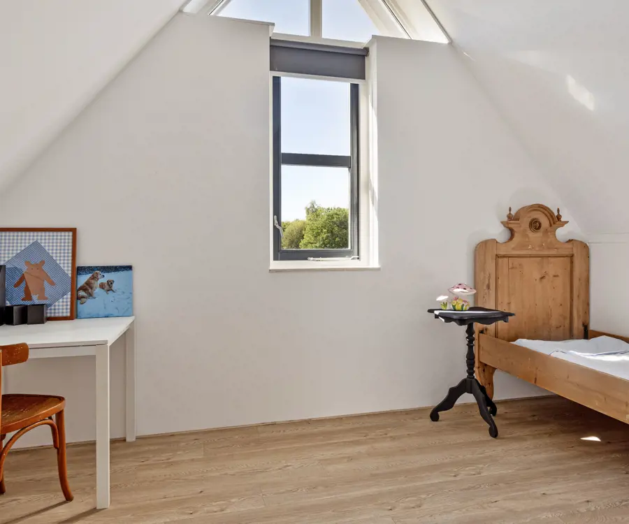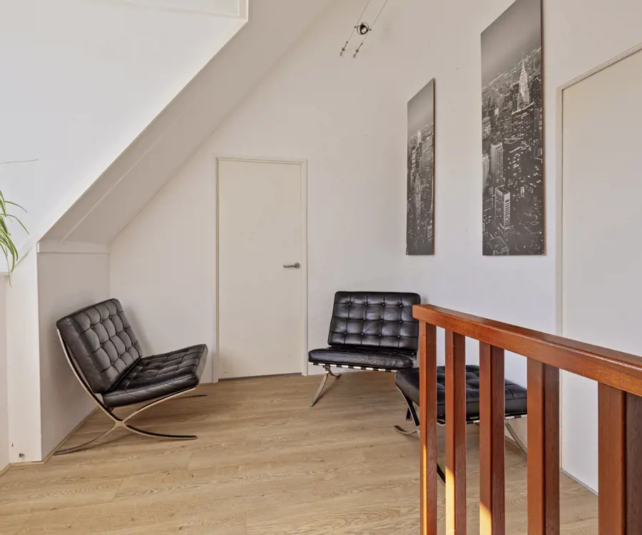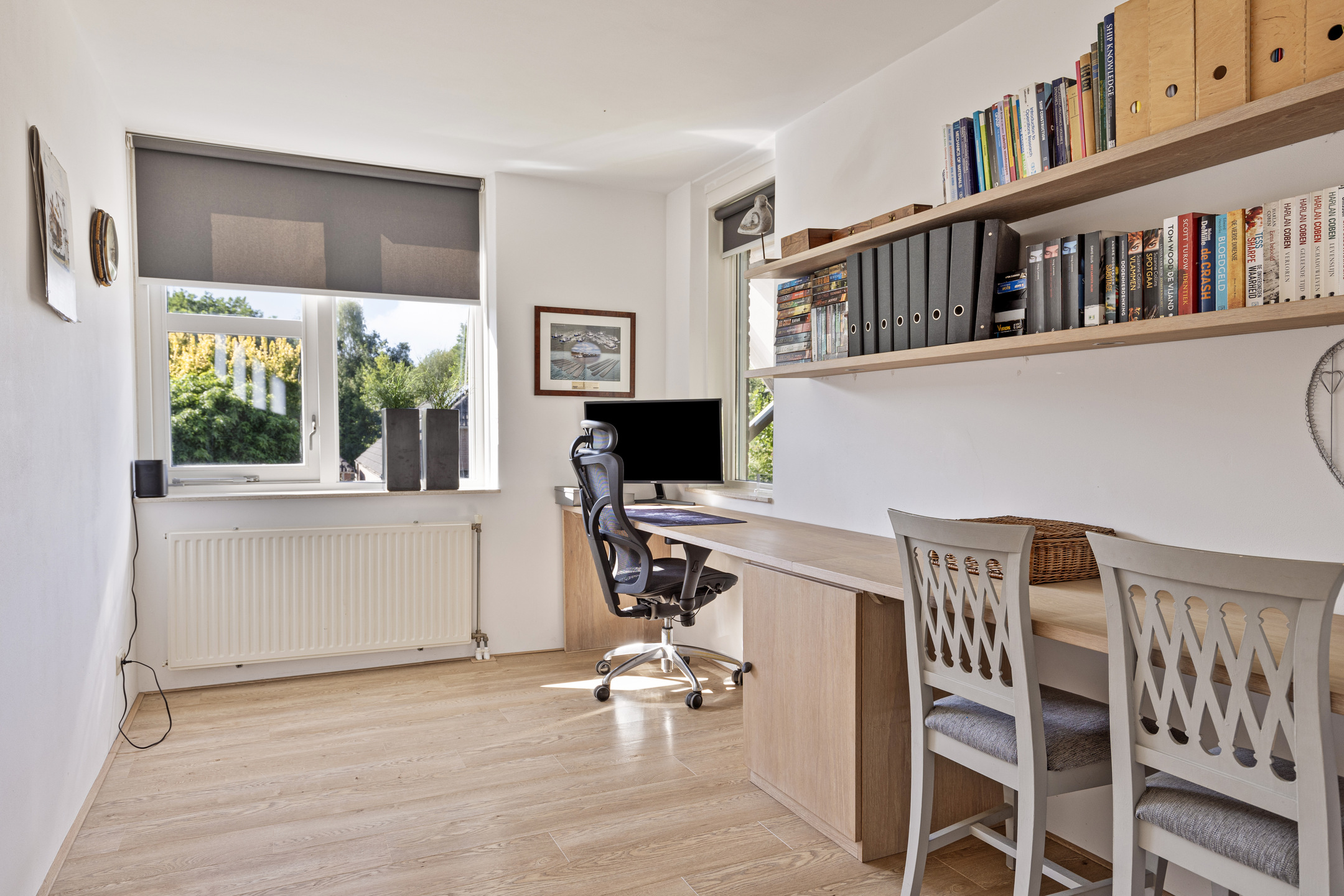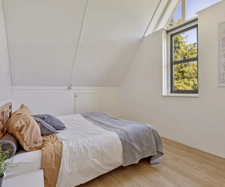 Tweede verdieping: op de tweede verdieping zijn nog eens twee slaapkamers. Onder de schuine kap zijn knieschotten geplaatst voor extra opbergruimte. Daarnaast is er een kastruime aanwezig. Deze verdieping is uitermate geschikt als slaap-, werk- of hobbyruimte.