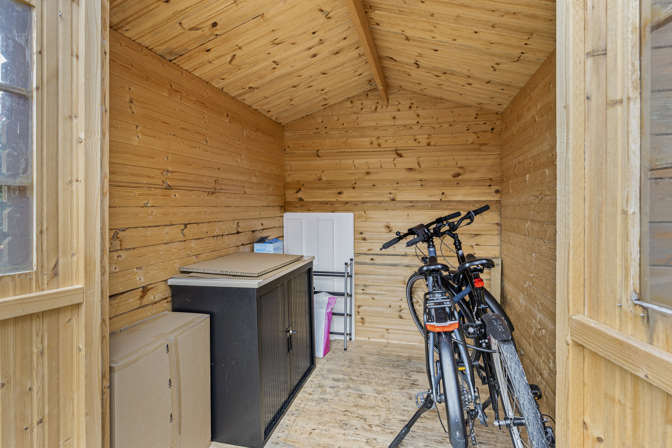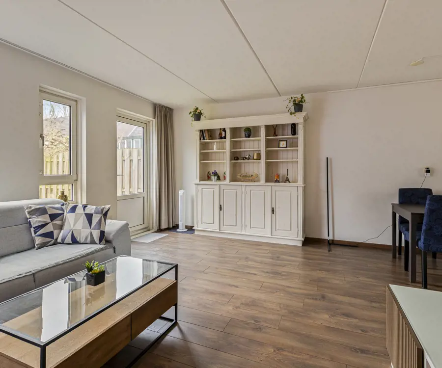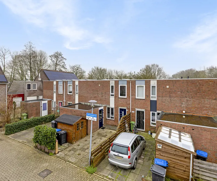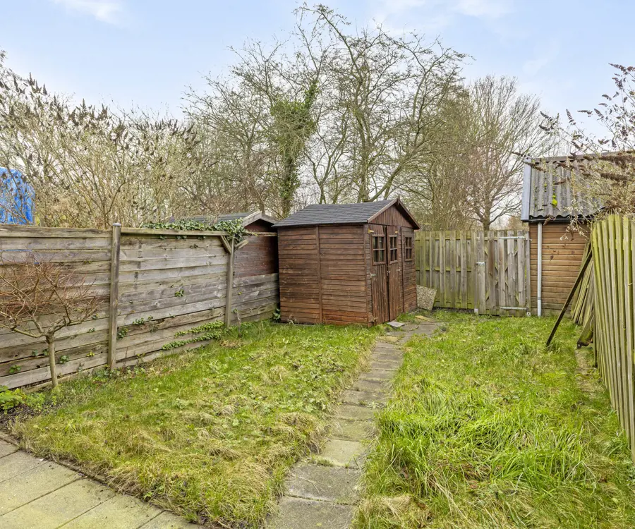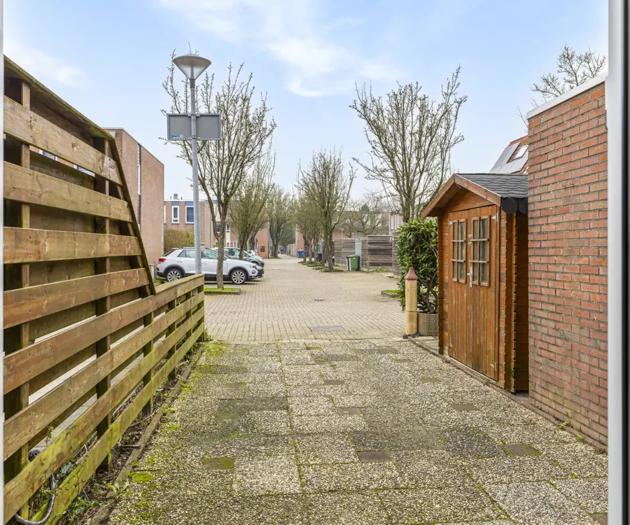 Tuin: de woning beschikt over een eigen oprit, wat zorgt voor extra gemak. Aan de voorkant van de woning bevindt zich ook een handige berging, ideaal voor het stallen van fietsen. Daarnaast is er aan de voorkant ruimte om de containers te plaatsen. De achtertuin grenst direct aan de woonkamer en biedt veel privacy doordat er geen directe woningen achter liggen. Achterin de tuin staat een extra houten berging, perfect voor het opbergen van tuingereedschap of andere spullen. Tot slot is er een achterom die uitkomt bij een speeltuin, wat het extra aantrekkelijk maakt voor gezinnen met kinderen.