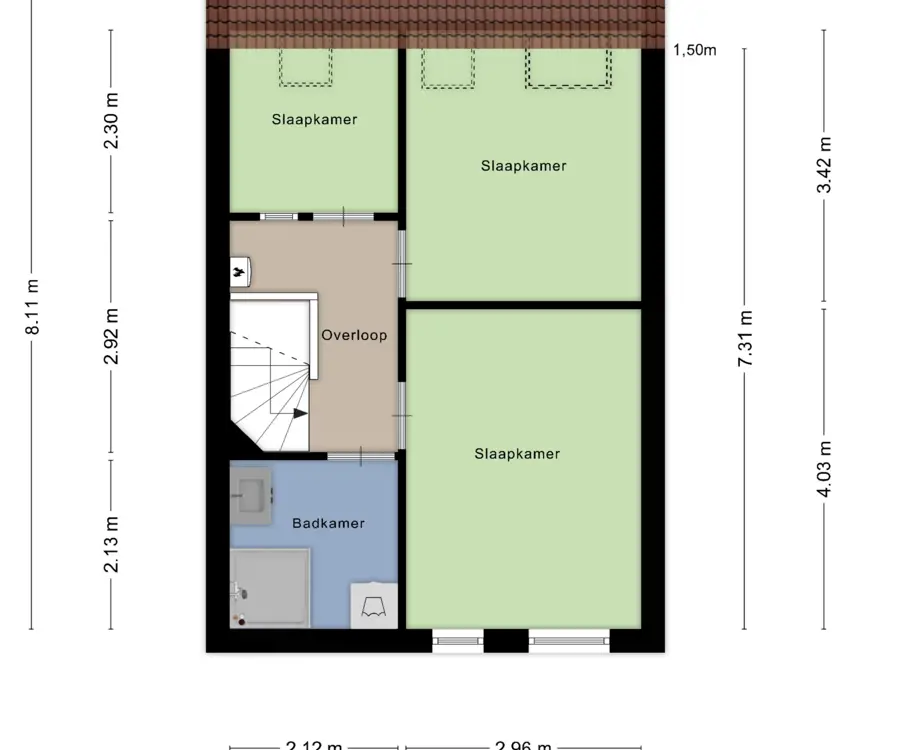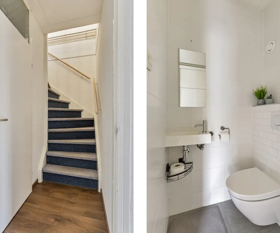 Eerste verdieping: op deze verdieping bevinden zich drie slaapkamers, elk met voldoende lichtinval en ruimte voor een bed, kast en eventueel een bureau. Op de overloop bevindt zich de cv-ketel uit 2021. De badkamer is voorzien van een douche, wastafelmeubel en aansluiting voor de wasmachine.