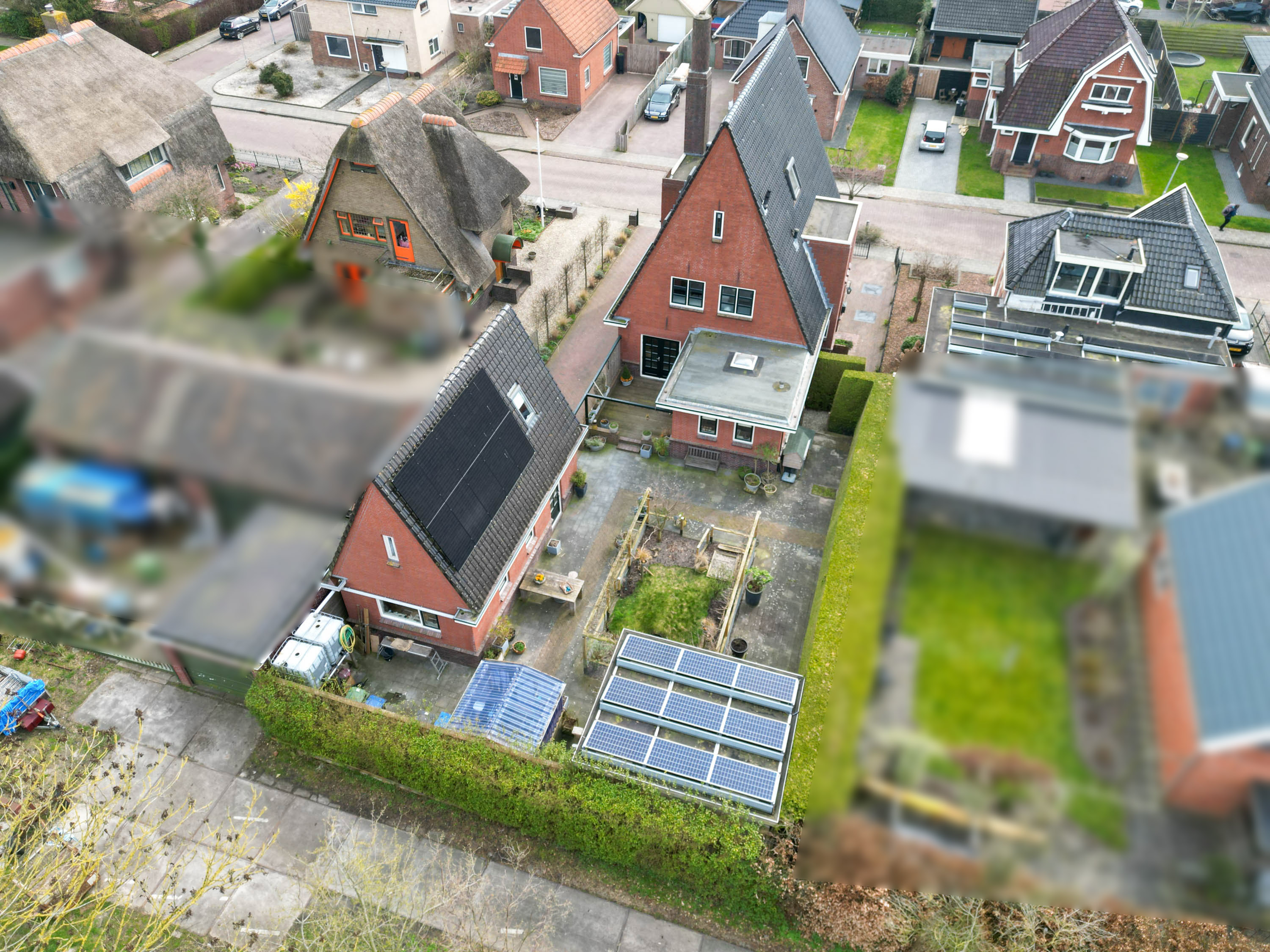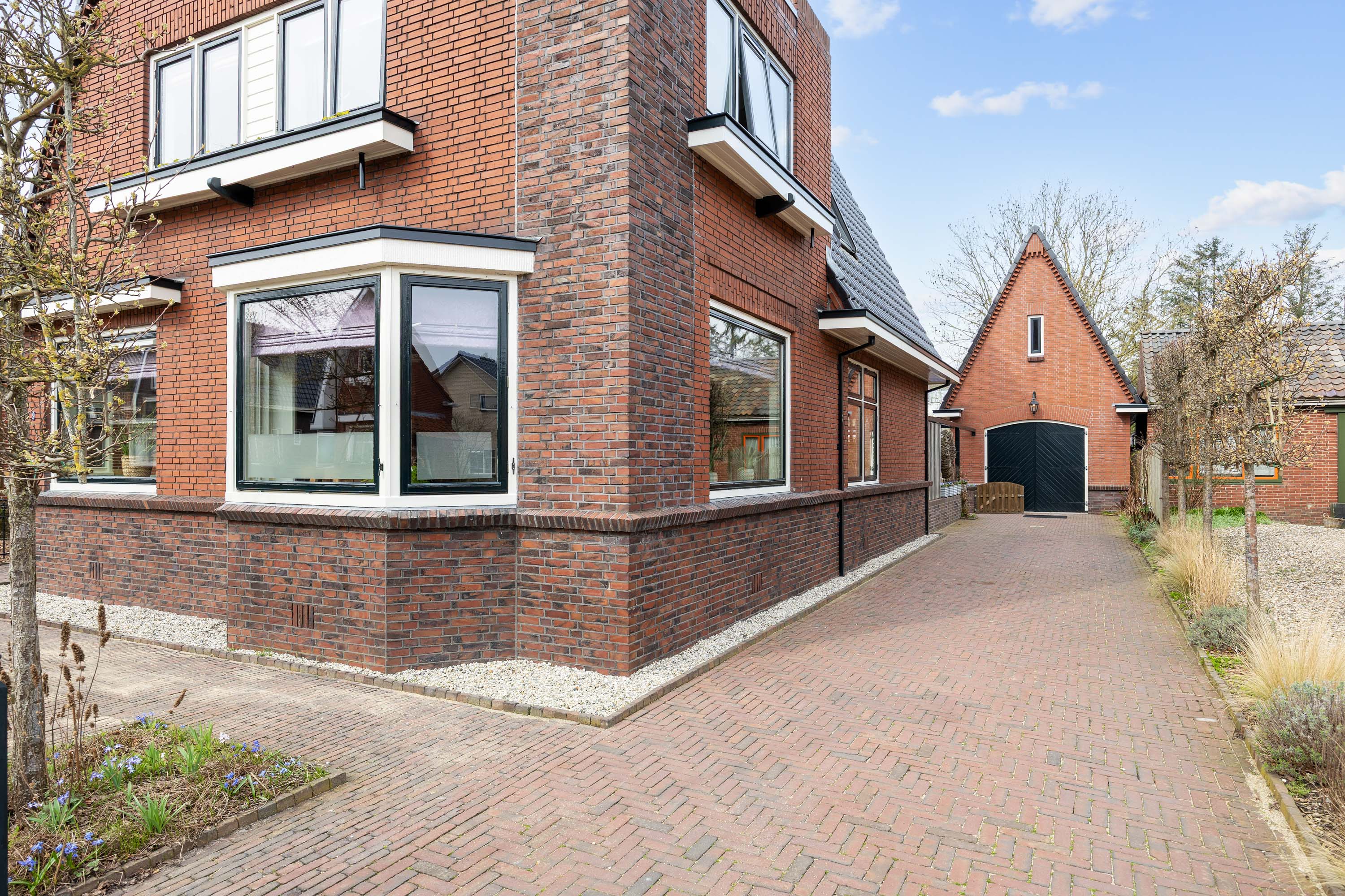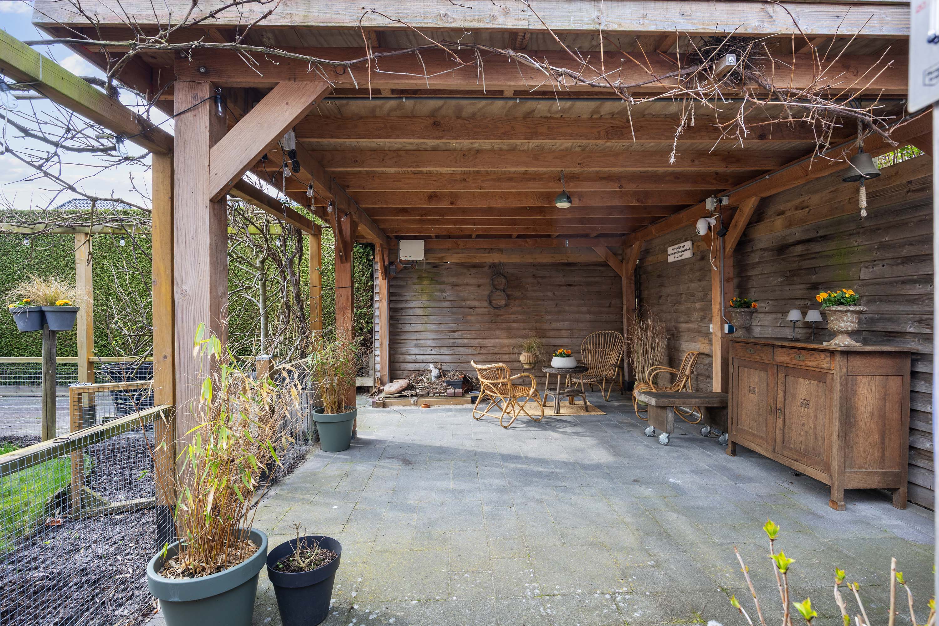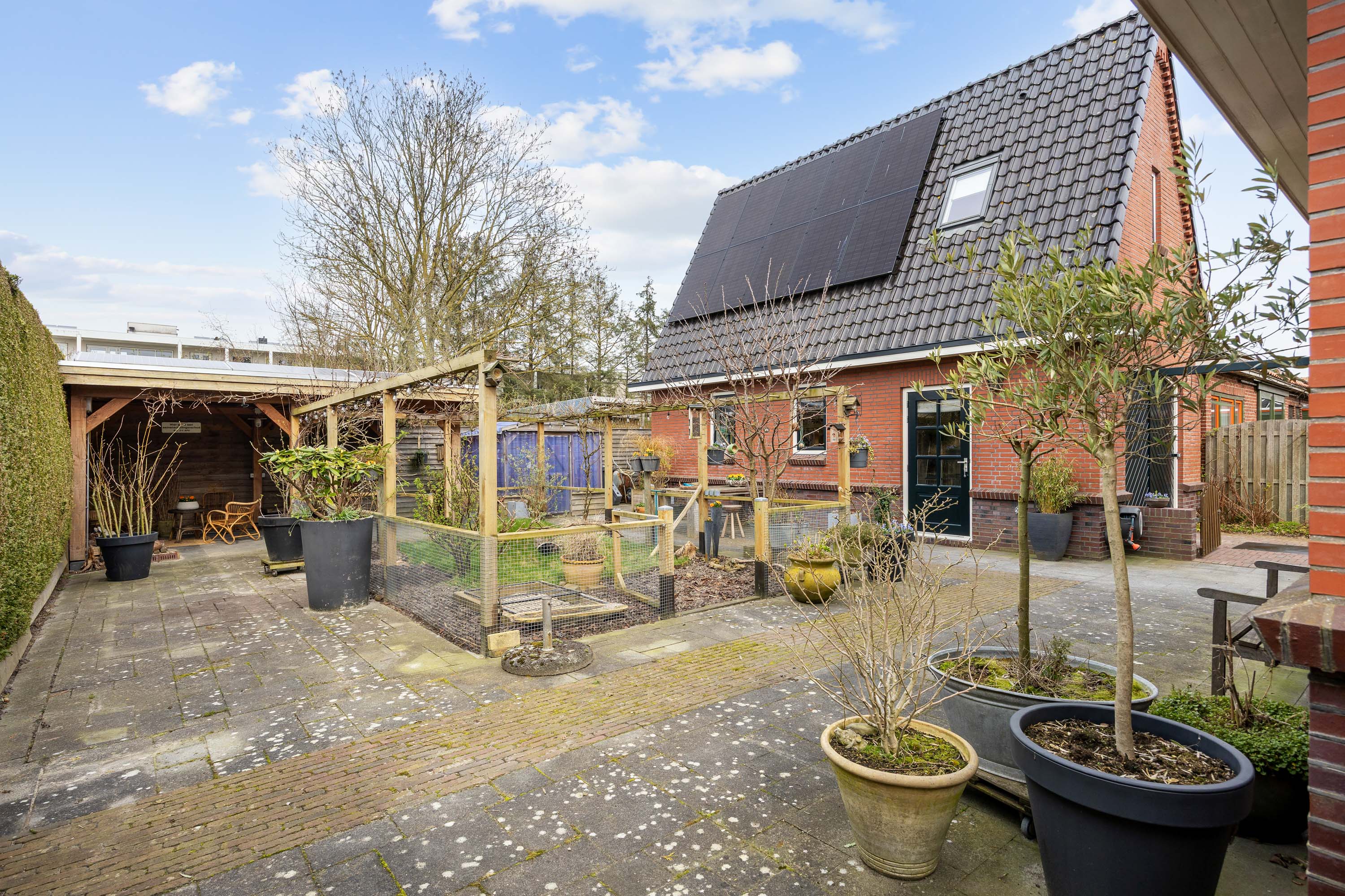 De woning beschikt over een eigen oprit, waardoor parkeren op eigen terrein vanzelfsprekend is. De tuin is verzorgd aangelegd en beschikt over een vrijstaande overkapping. Rechts van de woning staat de vrijstaande garage, uitgevoerd als een verkleinde kopie van het woonhuis. De vrijstaande garage is ruim, volledig geïsoleerd, elektrisch verwarmd en momenteel ingericht als werkplaats en sportruimte. Maar eerlijk is eerlijk: hier kan je veel meer mee. Kantoor aan huis, hobbyruimte, praktijk – het kan allemaal. Met de bergzolder erbij is het ook nog eens verrassend praktisch.