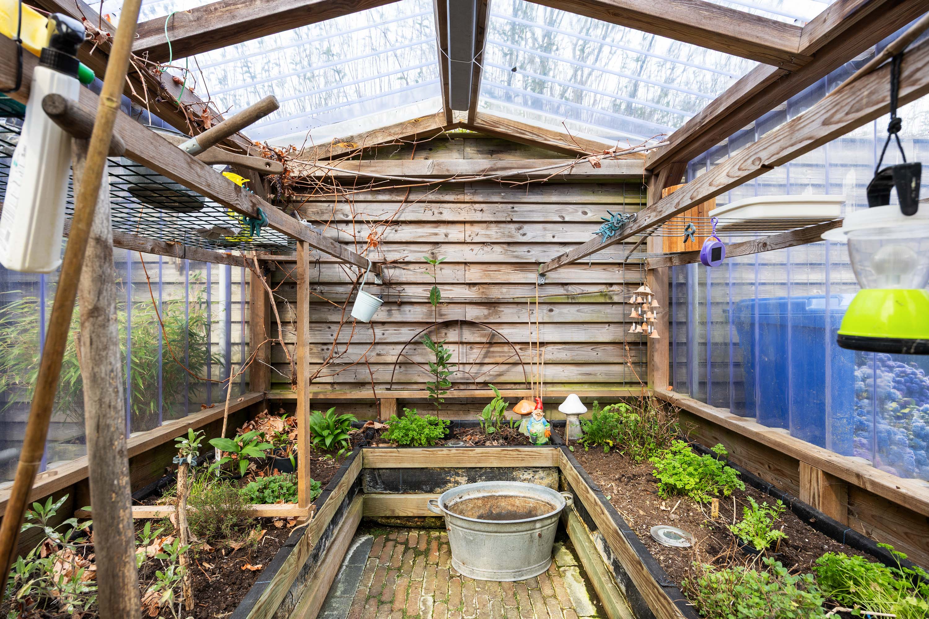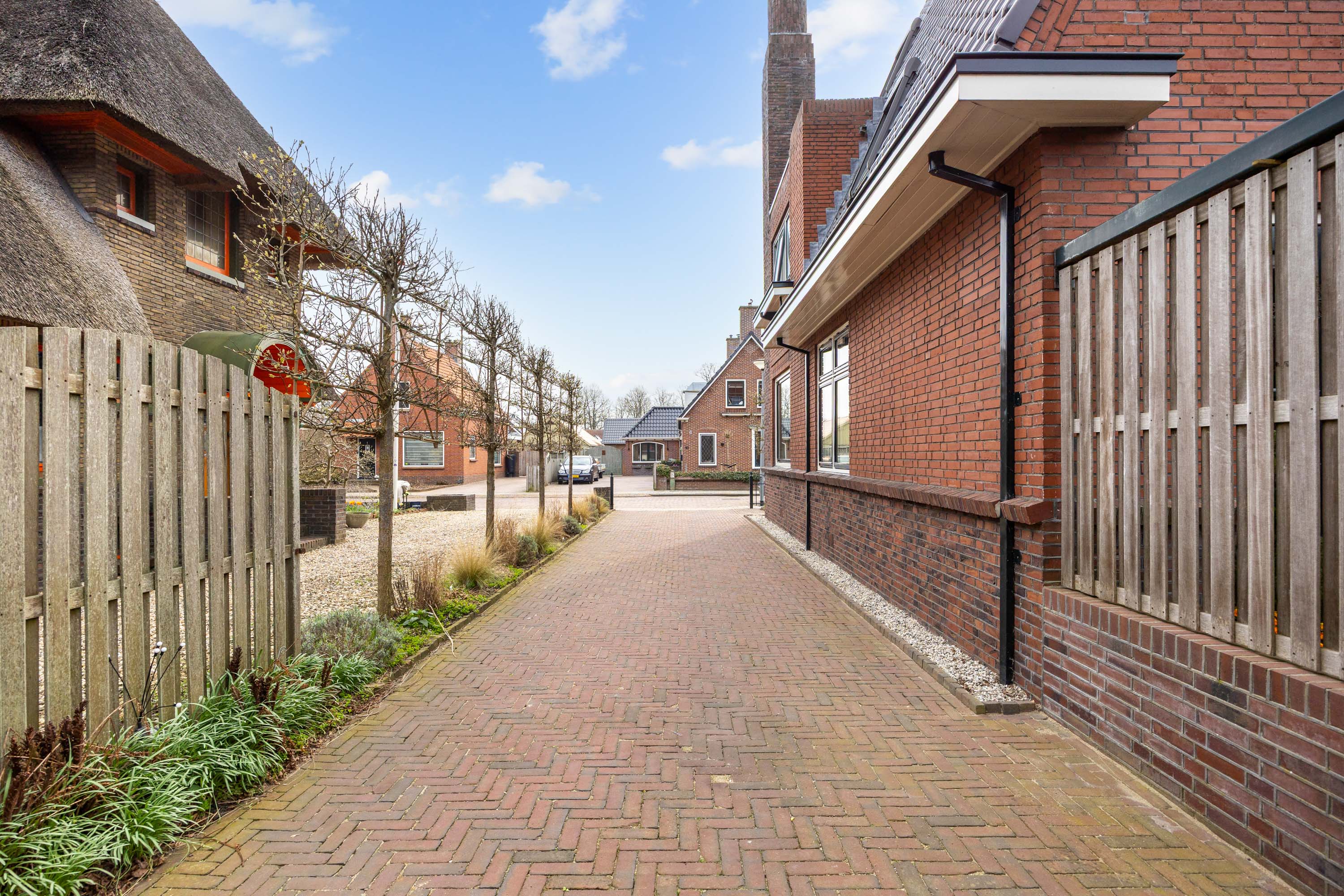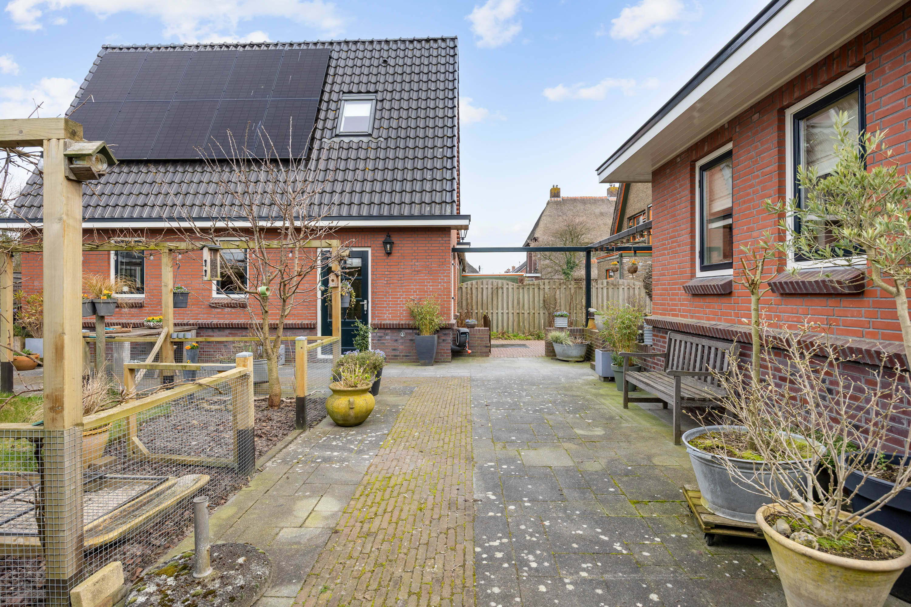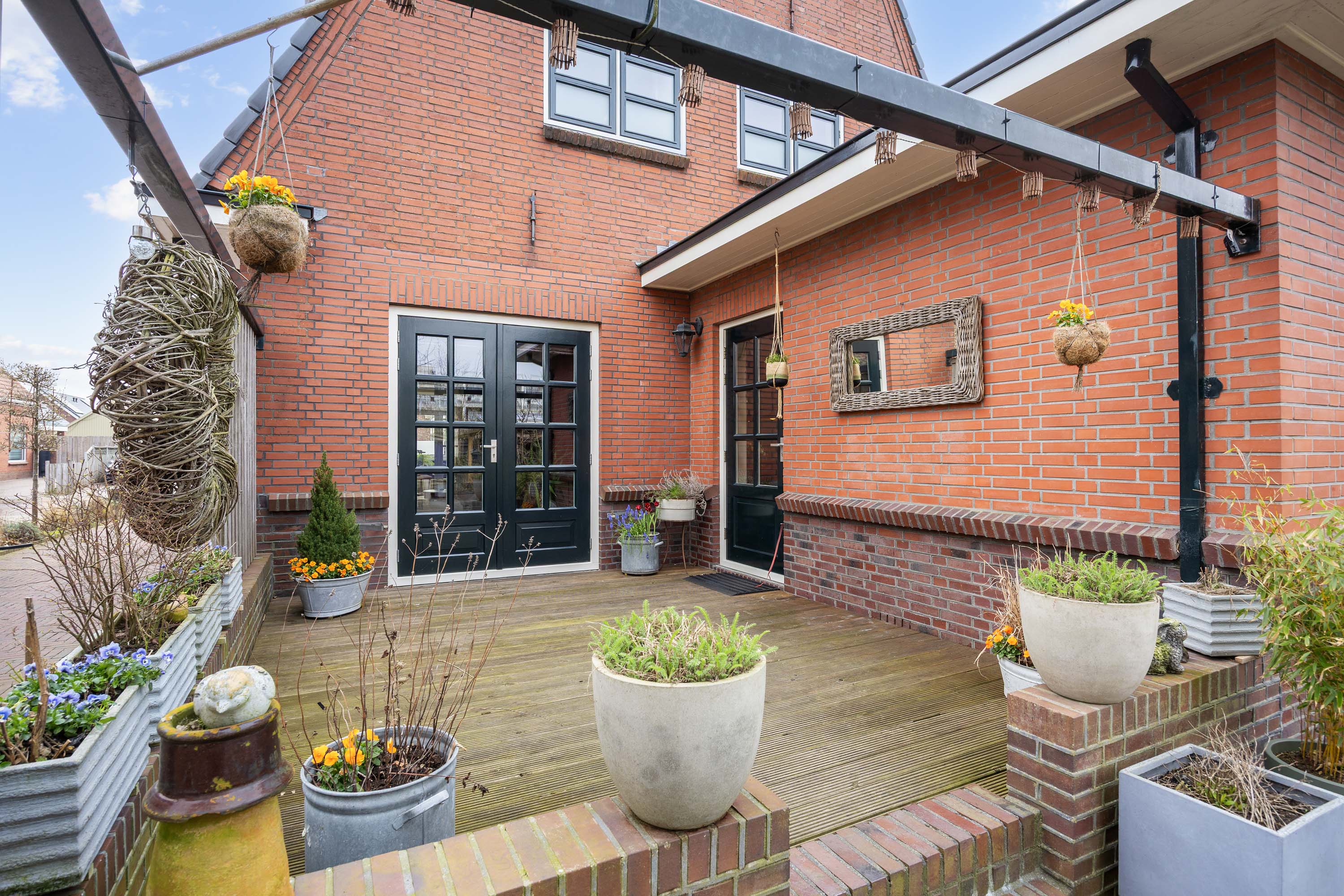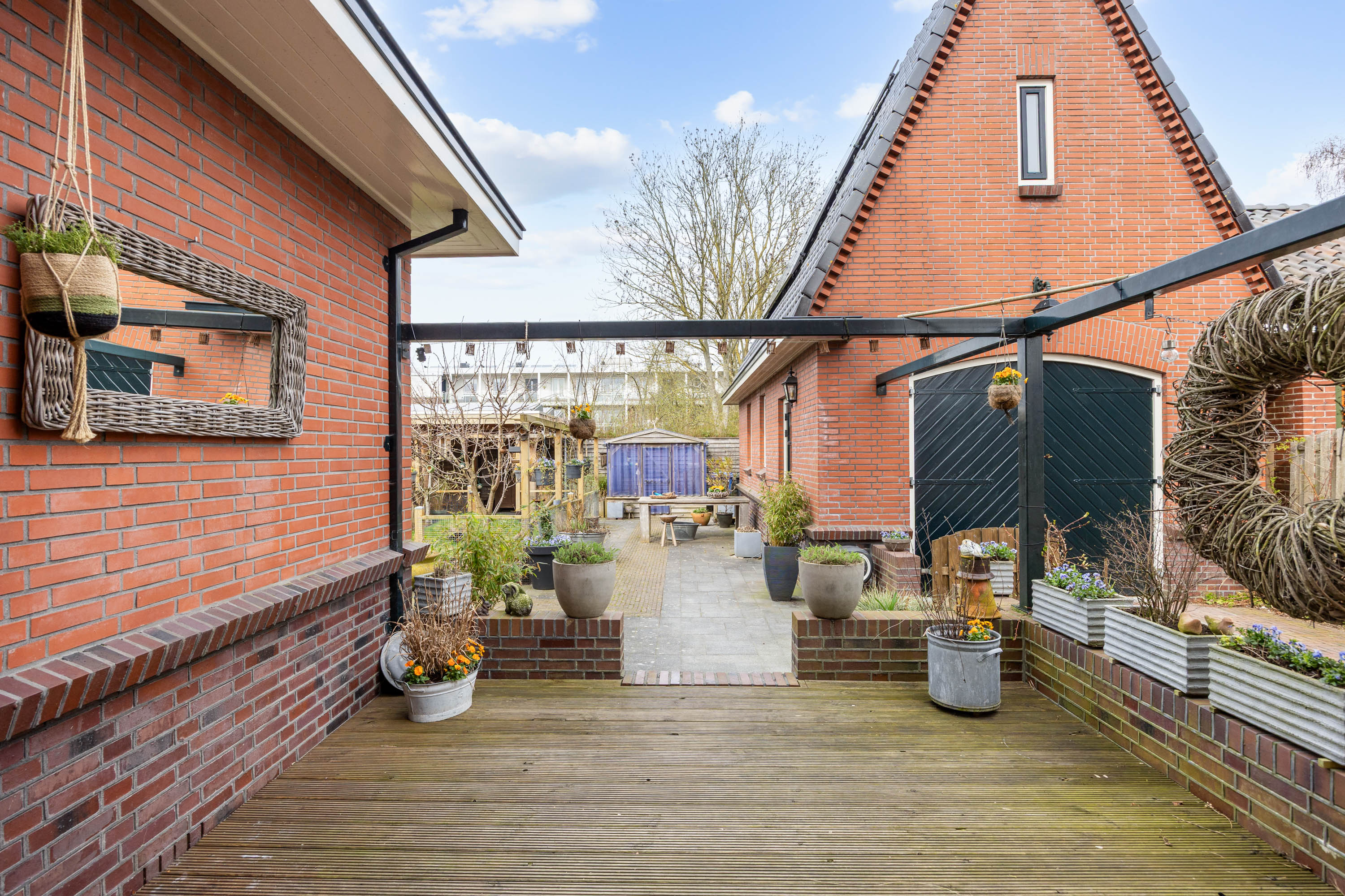 De woning beschikt over een eigen oprit, waardoor parkeren op eigen terrein vanzelfsprekend is. De tuin is verzorgd aangelegd en beschikt over een vrijstaande overkapping. Rechts van de woning staat de vrijstaande garage, uitgevoerd als een verkleinde kopie van het woonhuis. De vrijstaande garage is ruim, volledig geïsoleerd, elektrisch verwarmd en momenteel ingericht als werkplaats en sportruimte. Maar eerlijk is eerlijk: hier kan je veel meer mee. Kantoor aan huis, hobbyruimte, praktijk – het kan allemaal. Met de bergzolder erbij is het ook nog eens verrassend praktisch.