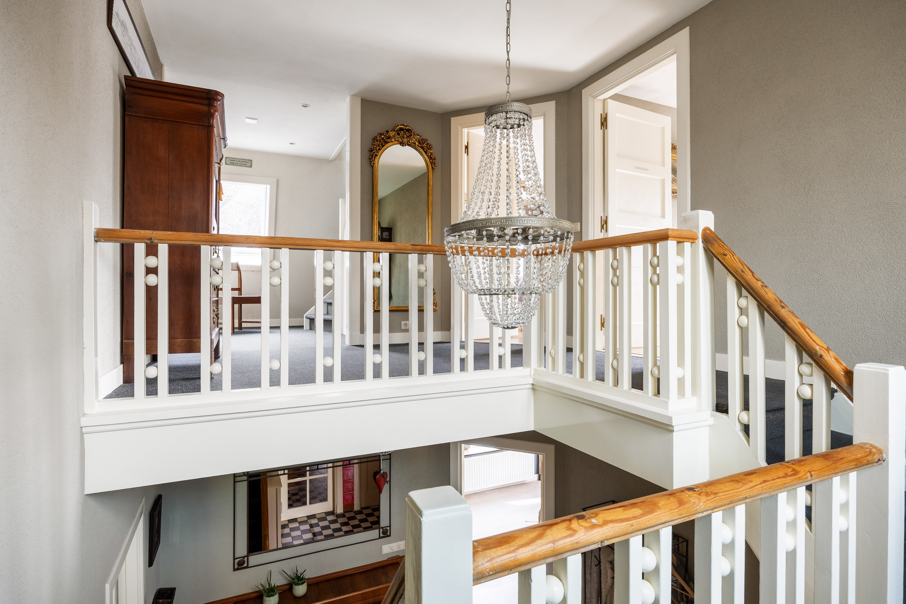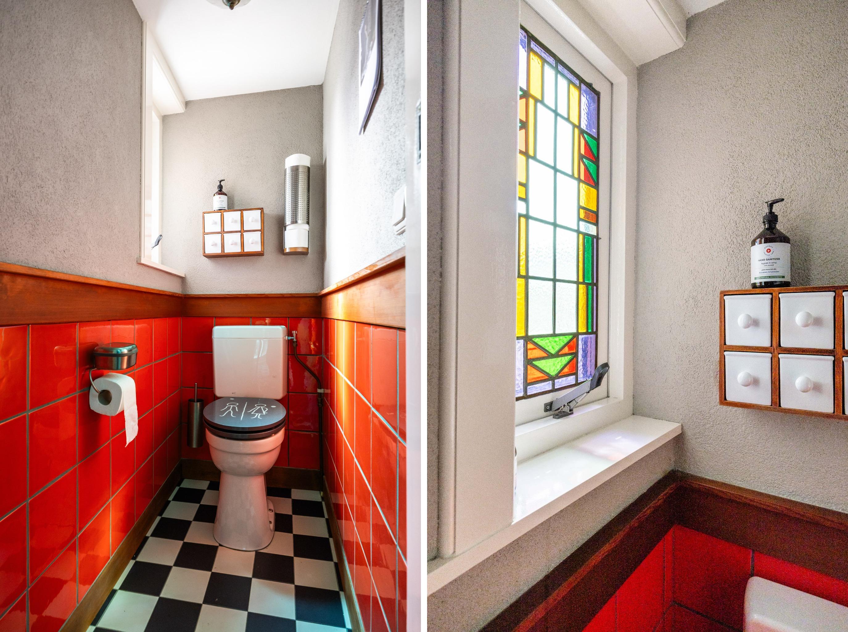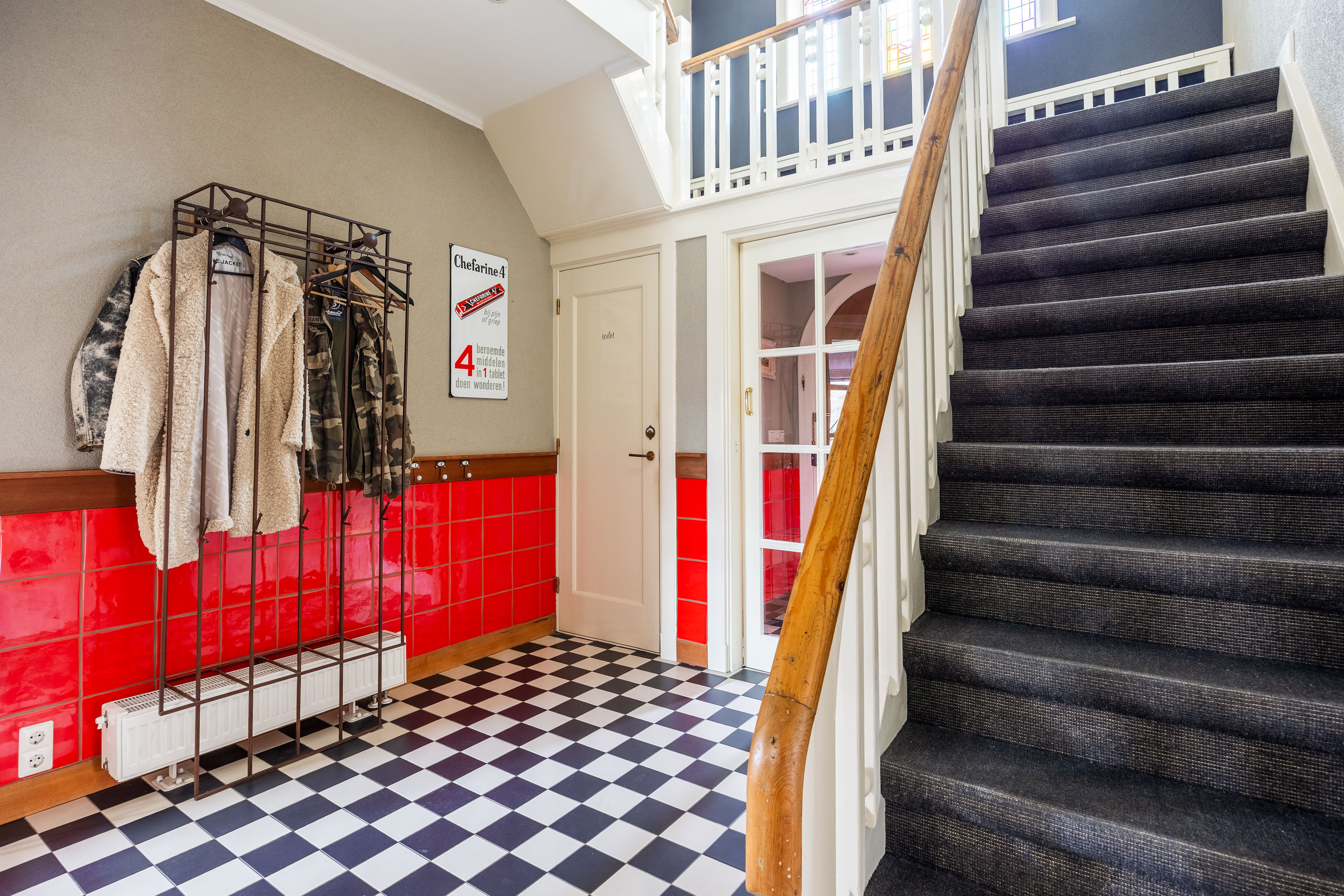 Begane grond: via de karakteristieke voordeur kom je de woning binnen, waar het bijzondere karakter direct voelbaar is – maar dan gecombineerd met comfort en ruimte. Je stapt binnen in de hal waar meteen duidelijk wordt dat dit geen standaard woning is. De centrale hal vormt het hart van het huis en geeft toegang tot het toilet, de keuken en de leefruimtes. In het toilet valt direct het mooie glas-in-loodraam op, een detail dat perfect past bij de stijl van de woning. Tegelijkertijd is het comfort van nu overal aanwezig: vloerverwarming is doorgelegd in de hal, keuken en het toilet, wat zorgt voor een aangename en constante warmte.