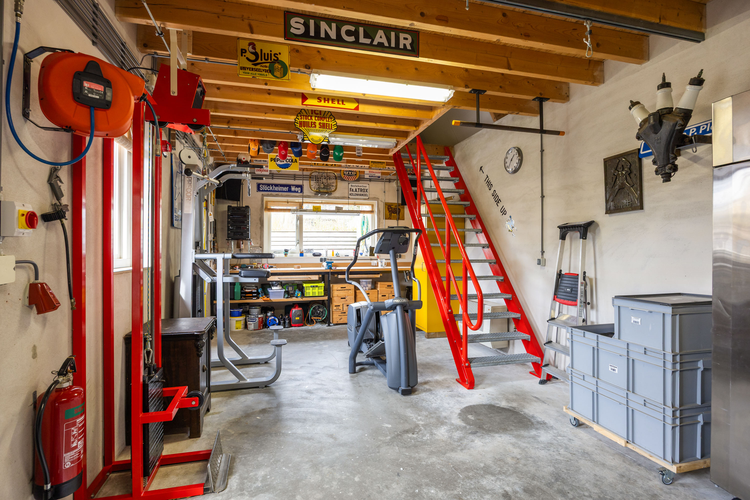 - Grote vrijstaande, geïsoleerde garage met bergzolder;