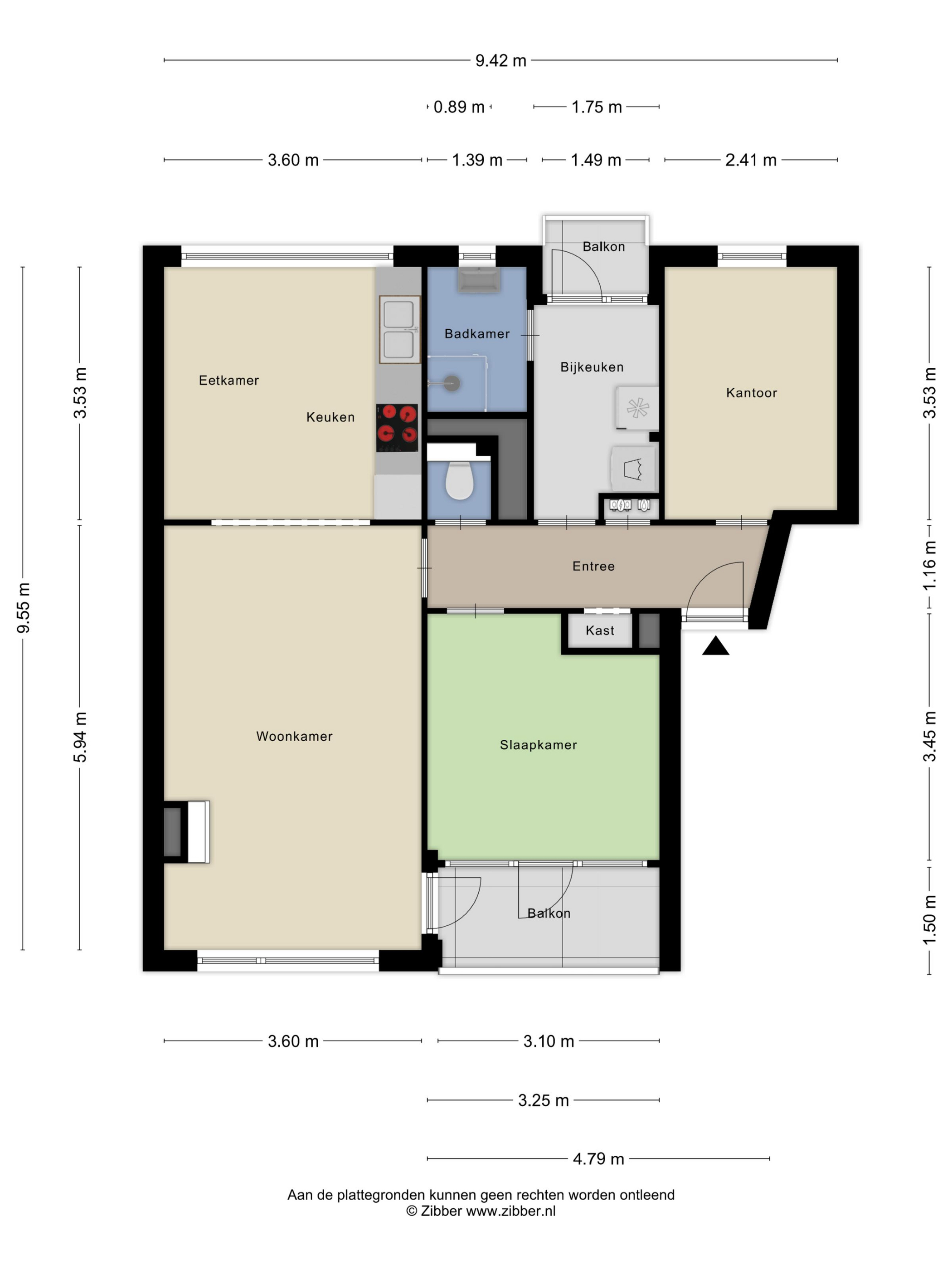 - Twee balkons (oost en west);