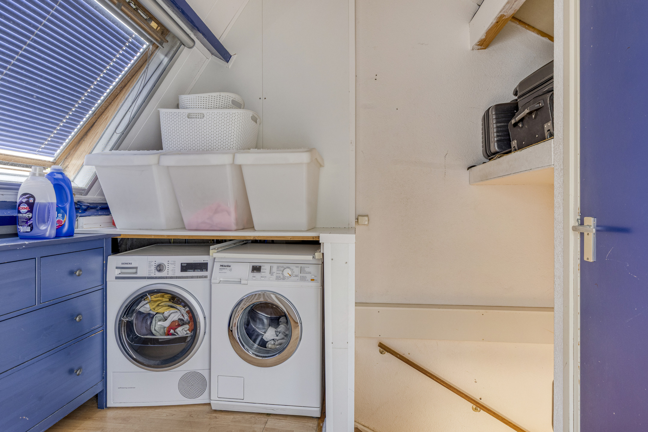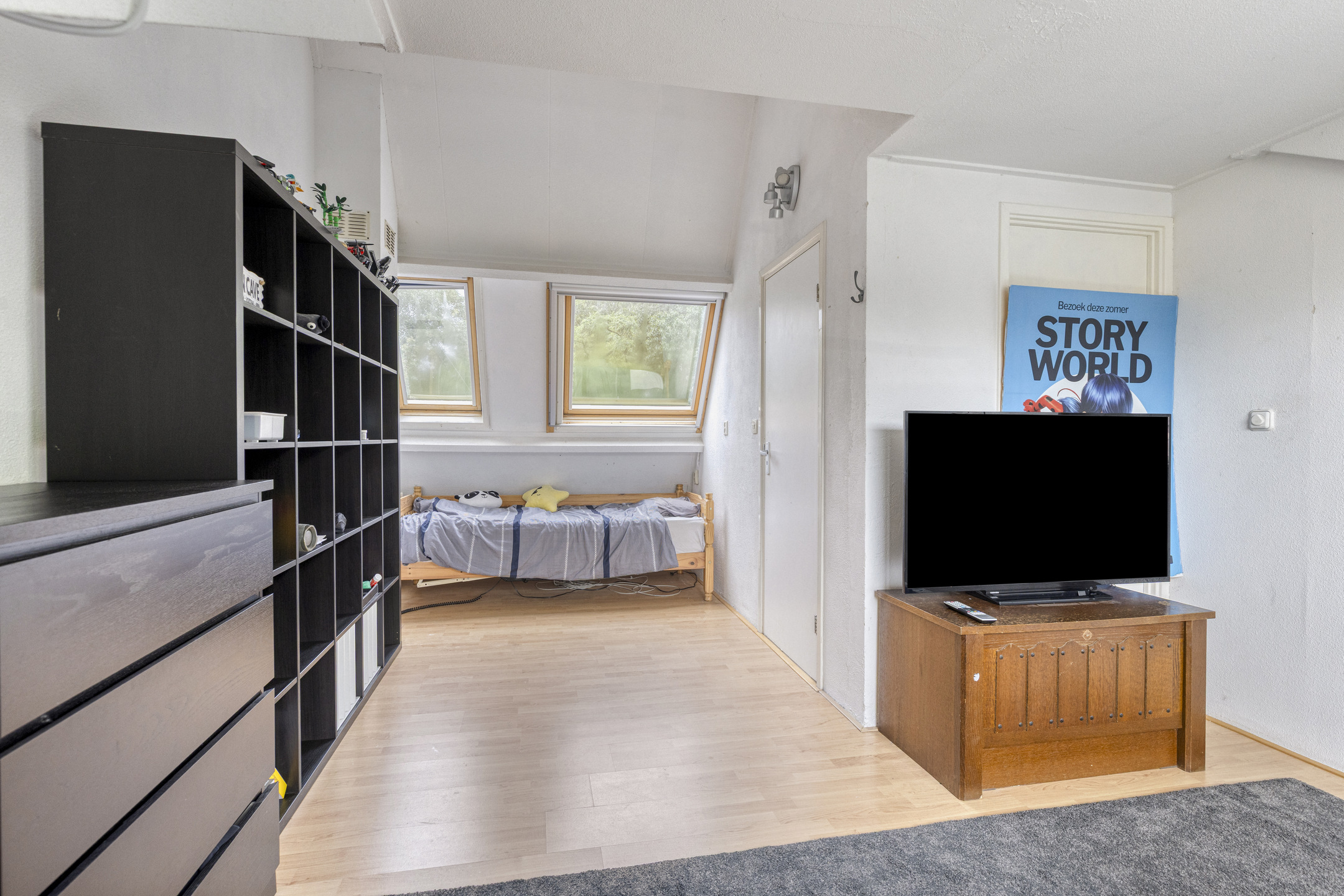 Tweede verdieping: de verrassend ruime tweede verdieping beschikt over een grote vierde slaapkamer met maar liefst twee dakkapellen, wat zorgt voor veel licht en extra ruimte. Op de overloop is een wasruimte met aansluiting voor wasmachine en droger, en ook hier vind je voldoende bergruimte.