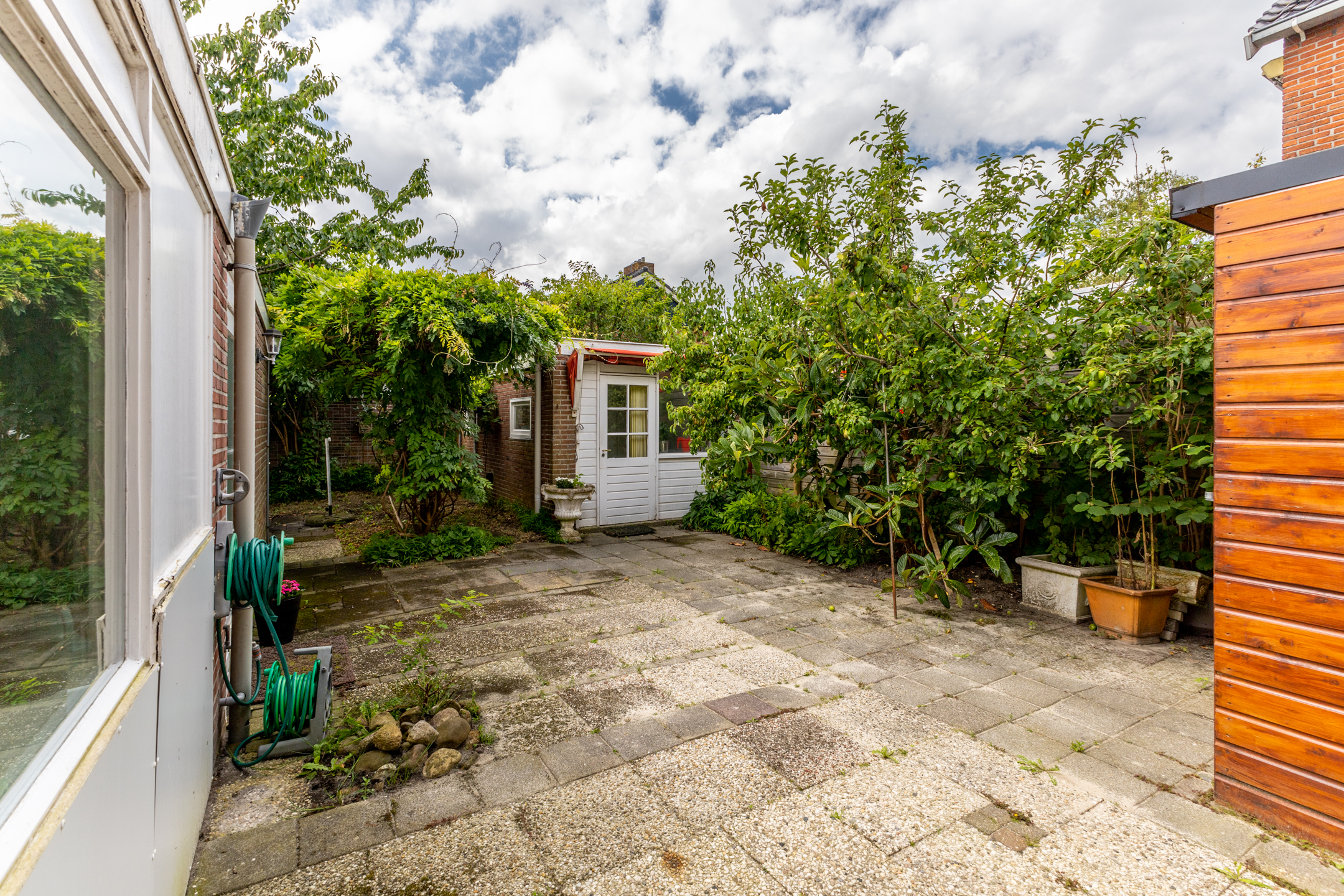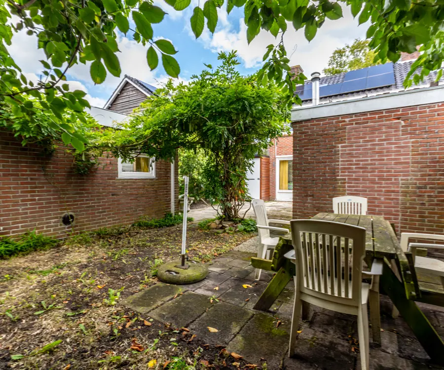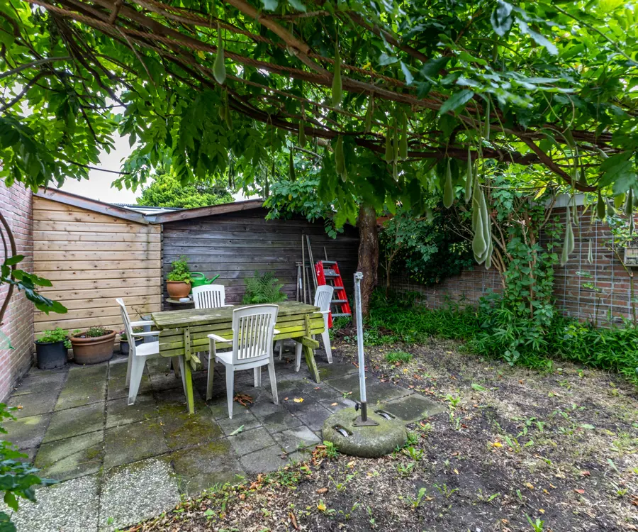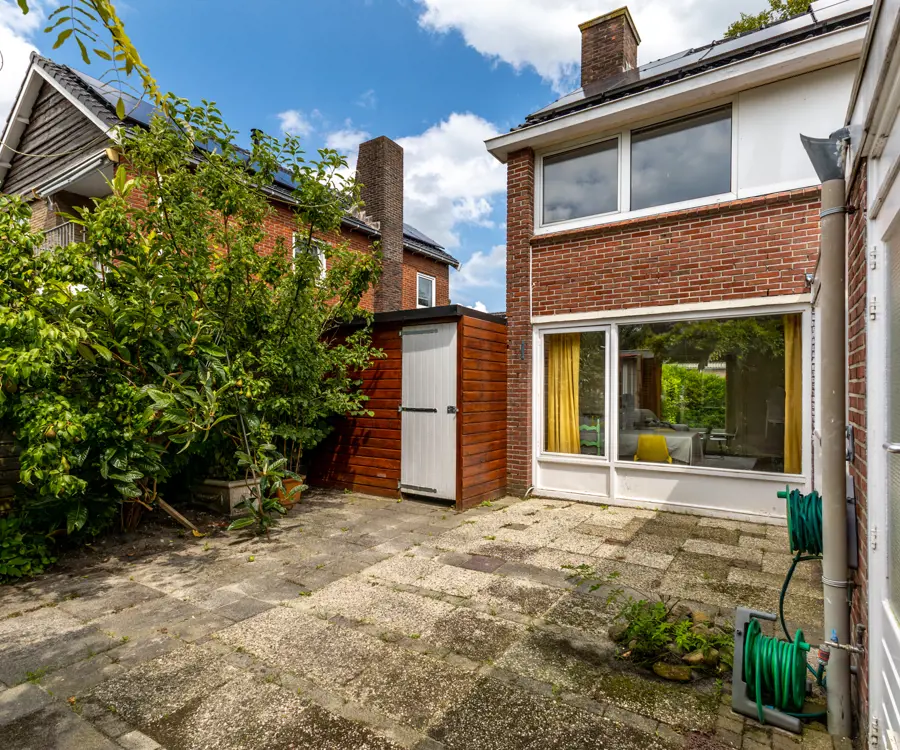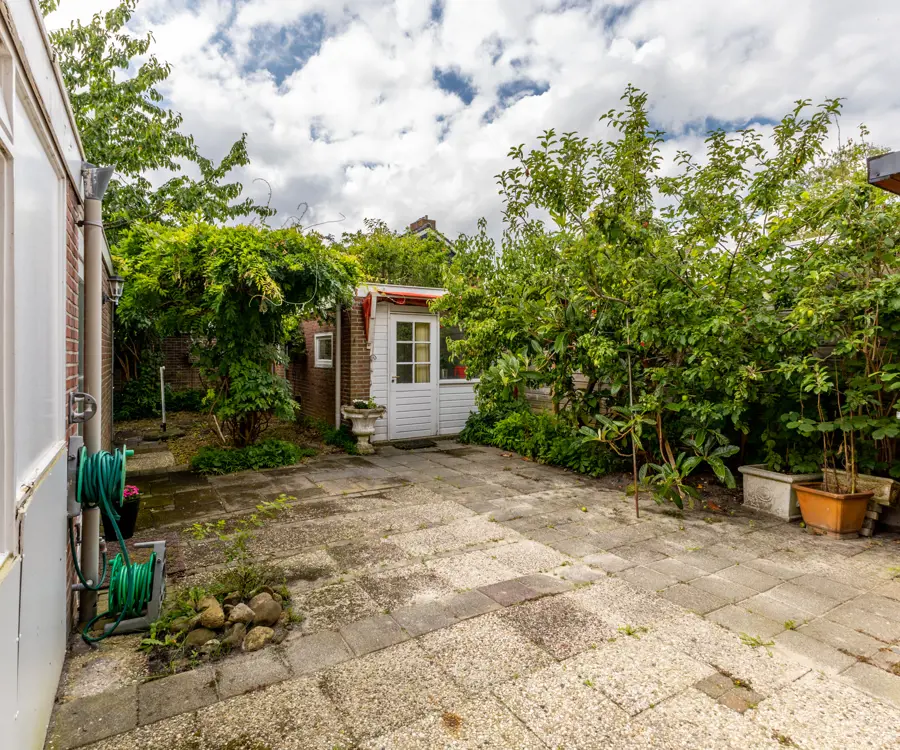 Buiten: de woning beschikt over een ruime tuin, perfect voor kinderen om in te spelen of voor het houden van gezellige zomerbarbecues. In de tuin staat een aangebouwde houten berging die extra opslagruimte biedt. Daarnaast is er een vrijstaand gastenverblijf dat voor meerdere doeleinden gebruikt kan worden. Dit gastenverblijf is verwarmd en voorzien van een keukenblok, douche en toilet, wat het ideaal maakt voor gasten of als thuiskantoor.