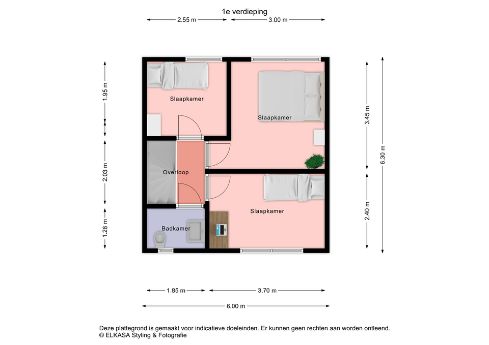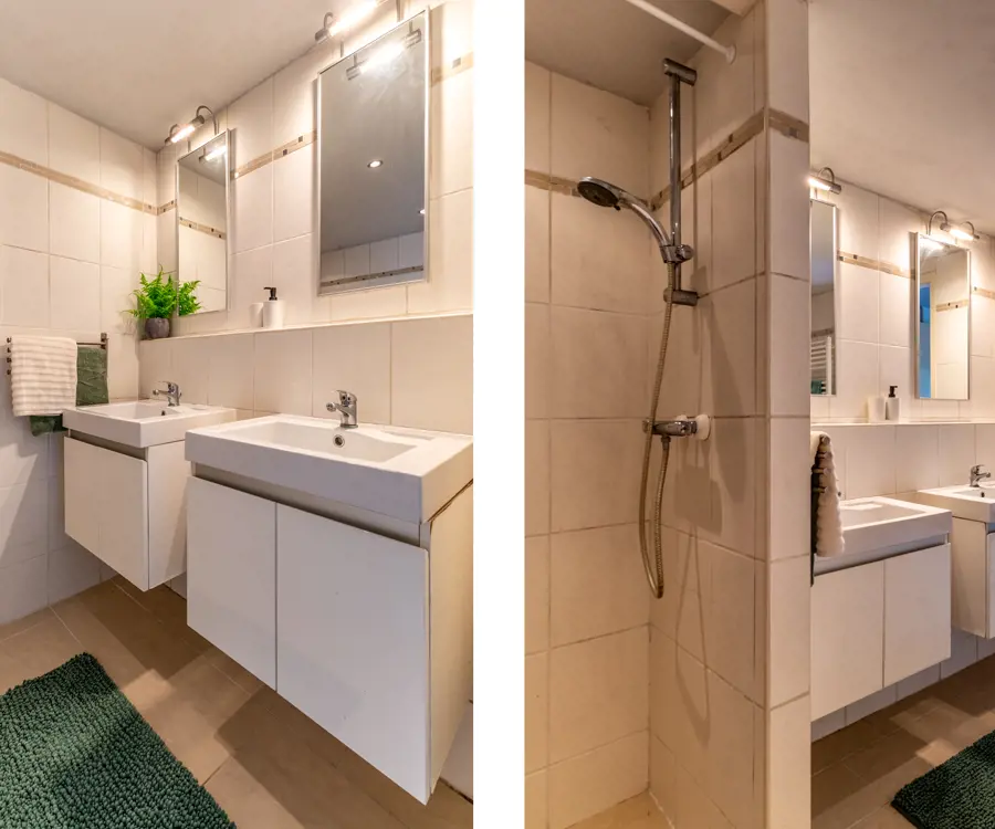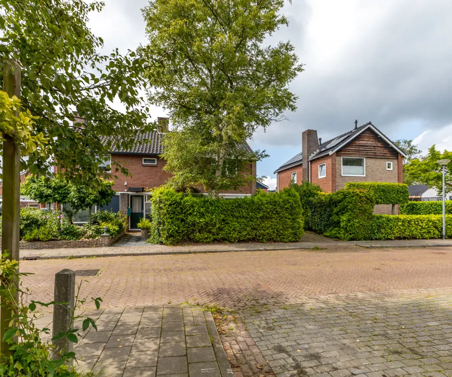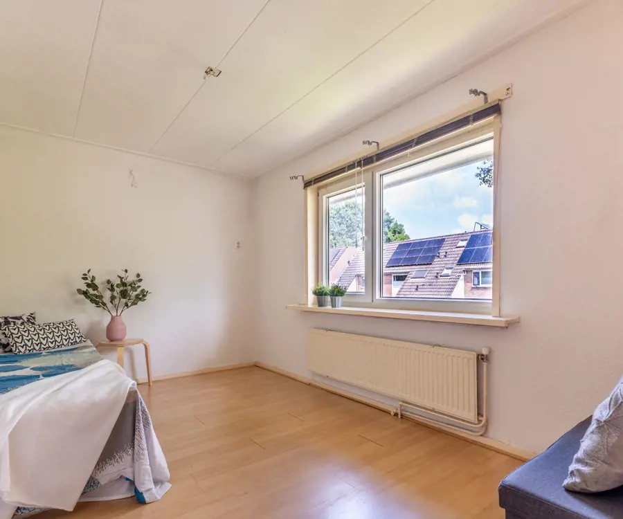 Eerste verdieping: op de eerste verdieping bevinden zich drie slaapkamers, allen voorzien van kunststof kozijnen, wat zorgt voor extra isolatie en onderhoudsgemak. De slaapkamers variëren in grootte, maar bieden allemaal voldoende ruimte voor een bed en kledingkast. De overloop geeft toegang tot een tweede badkamer, die voorzien is van een bidet en wastafel Vanaf de overloop is door middel van een vlizotrap een handige bergzolder te bereiken.