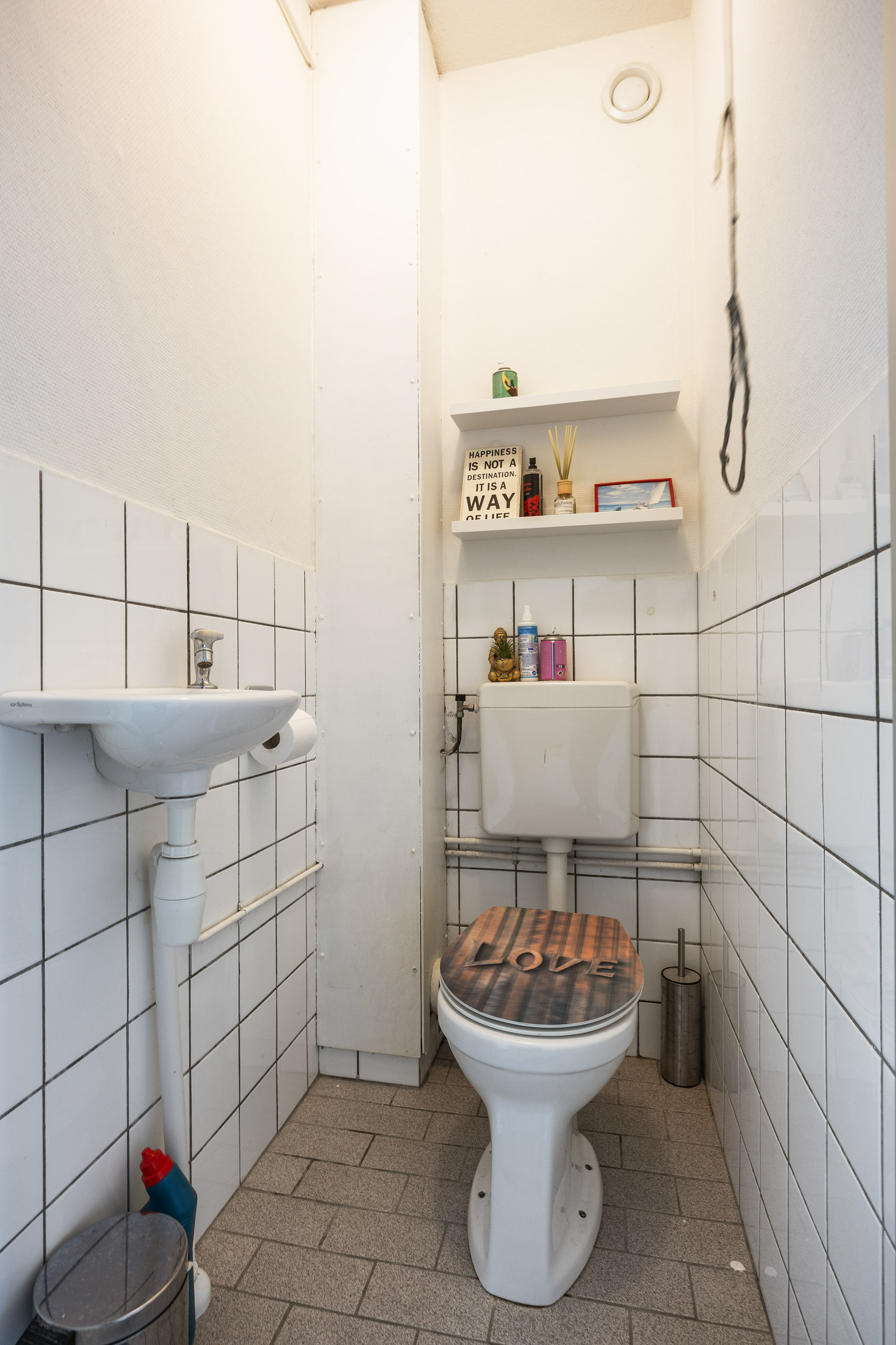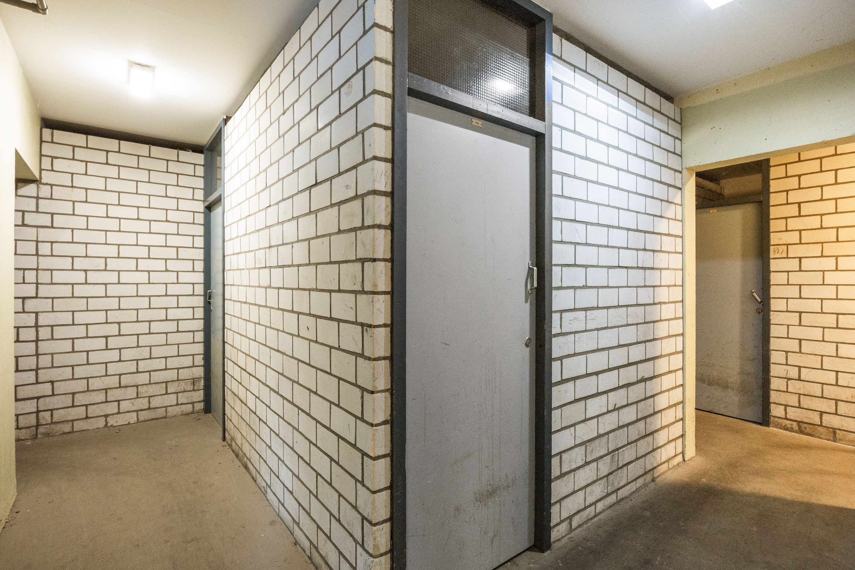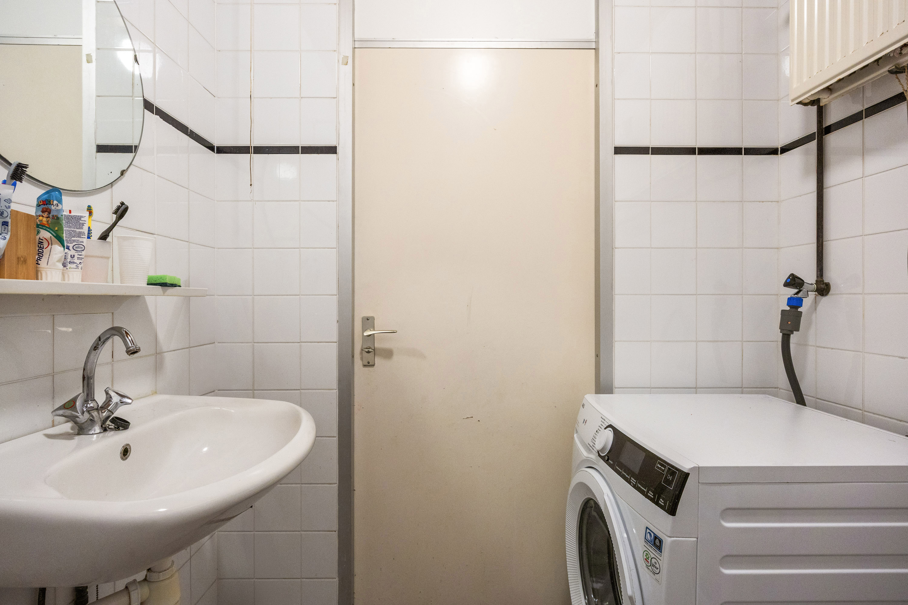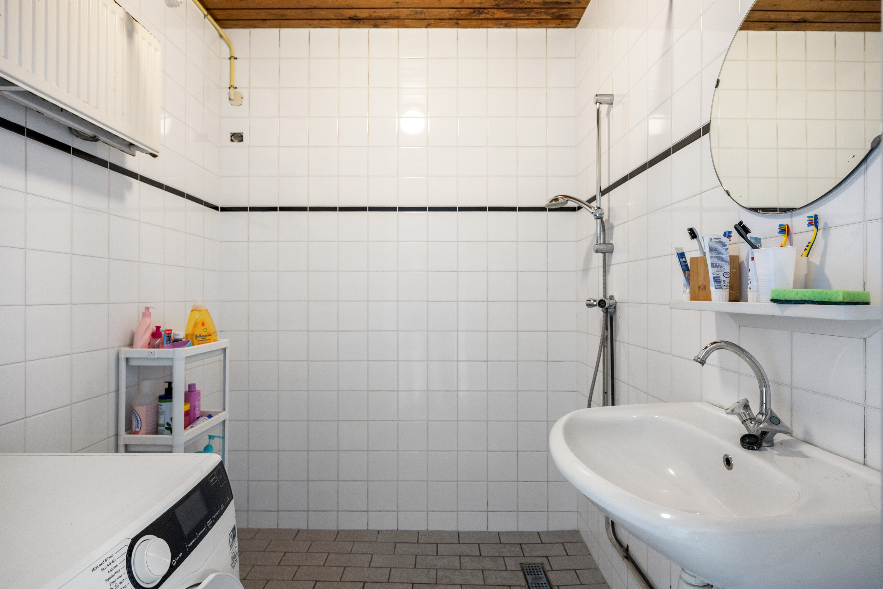 De badkamer beschikt over een douche, wastafel en een wasmachineaansluiting en is gelegen naast het toilet, wat extra comfort biedt. Daarnaast is er een praktische berging met ruimte voor opslag.