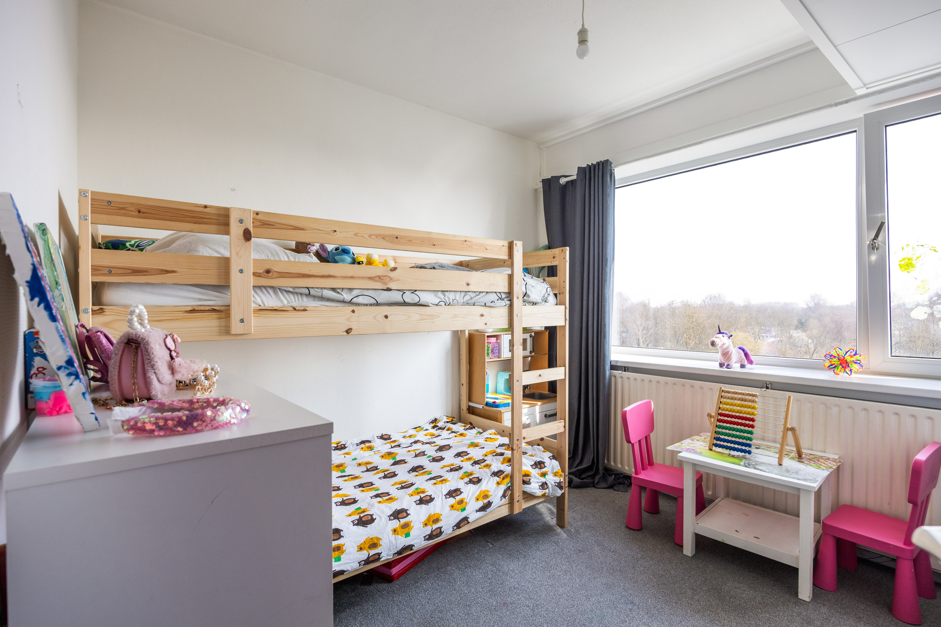 Aan de achterzijde van het appartement bevinden zich nog twee slaapkamers van goed formaat, waardoor de woning in totaal over drie volwaardige slaapkamers beschikt. Ideaal voor een gezin, thuiswerkers of logees.