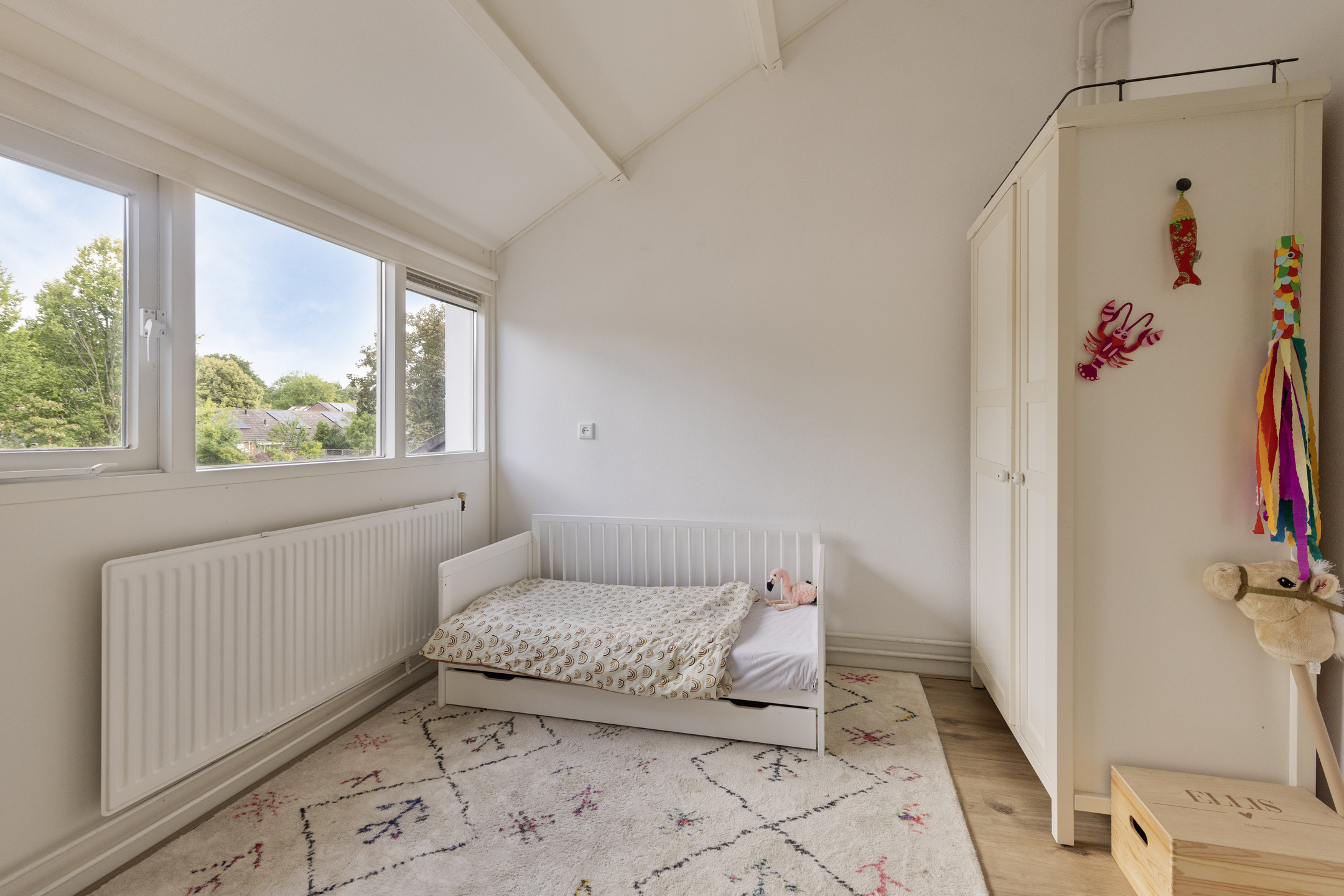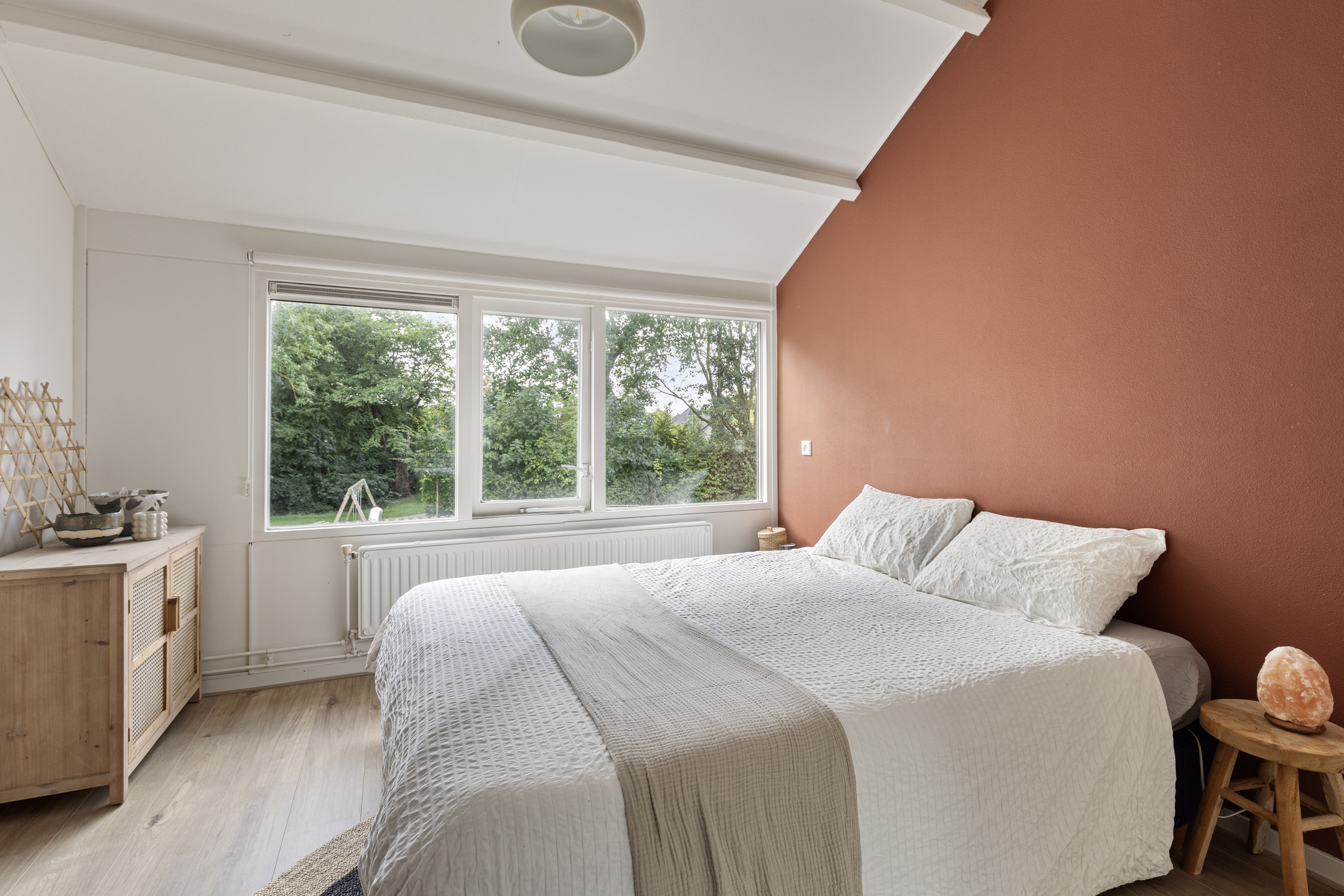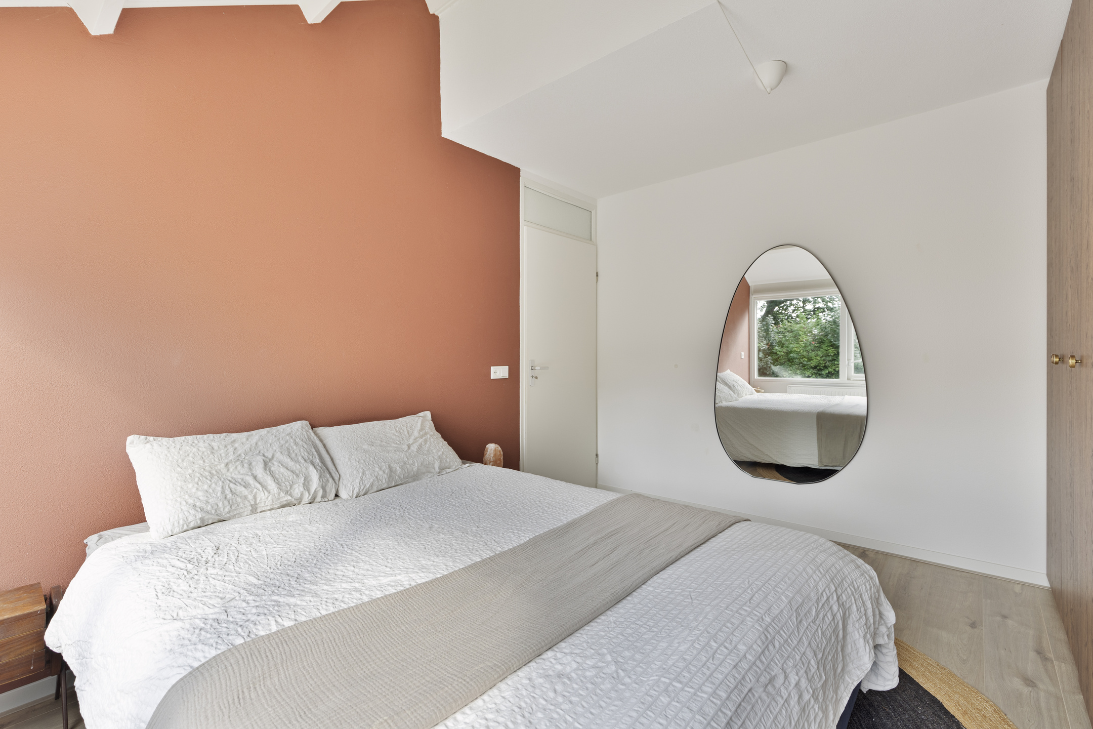Eerste verdieping: de overloop biedt toegang tot drie ruime slaapkamers. De grootste slaapkamer, gelegen aan de achterzijde, heeft een hoog plafond dat een ruimtelijk gevoel geeft. De moderne badkamer is stijlvol afgewerkt en voorzien van een ligbad, inloopdouche, toilet en wastafelmeubel. Daarnaast is er een praktische wasruimte aanwezig.