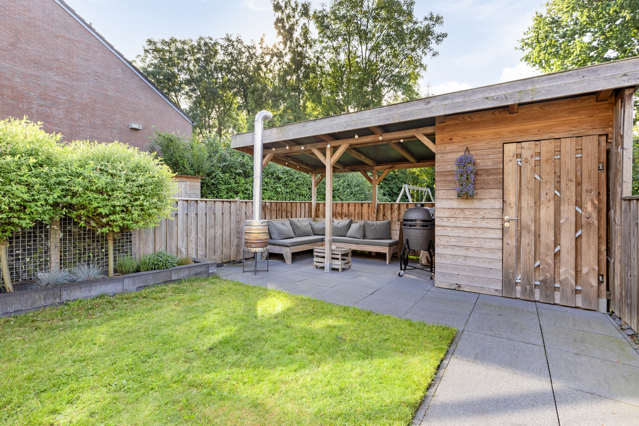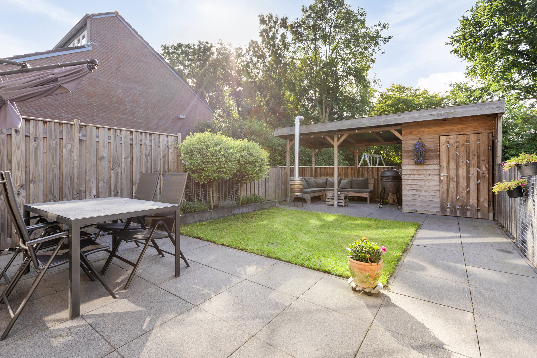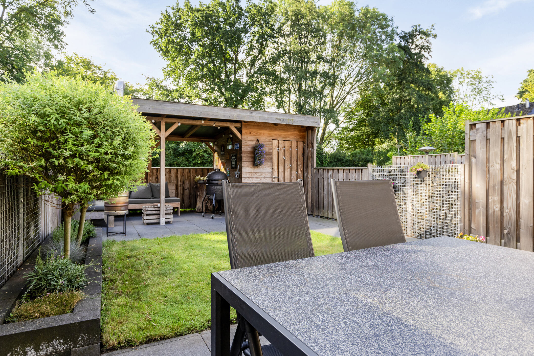Buiten: de tuin is onderhoudsvriendelijk, zonnig en gelegen op het zuiden, met achterin een berging en een fijne overkapping. Hierdoor geniet je van optimale privacy en zicht op het achtergelegen groen. De woning beschikt over een eigen oprit aan de voorzijde.