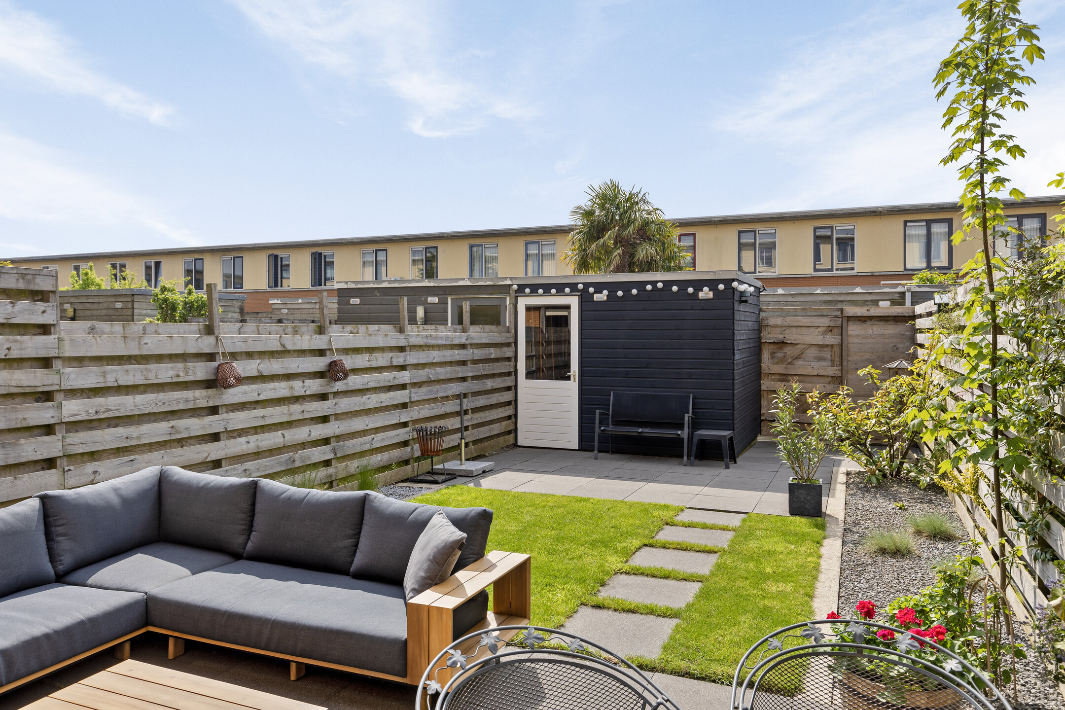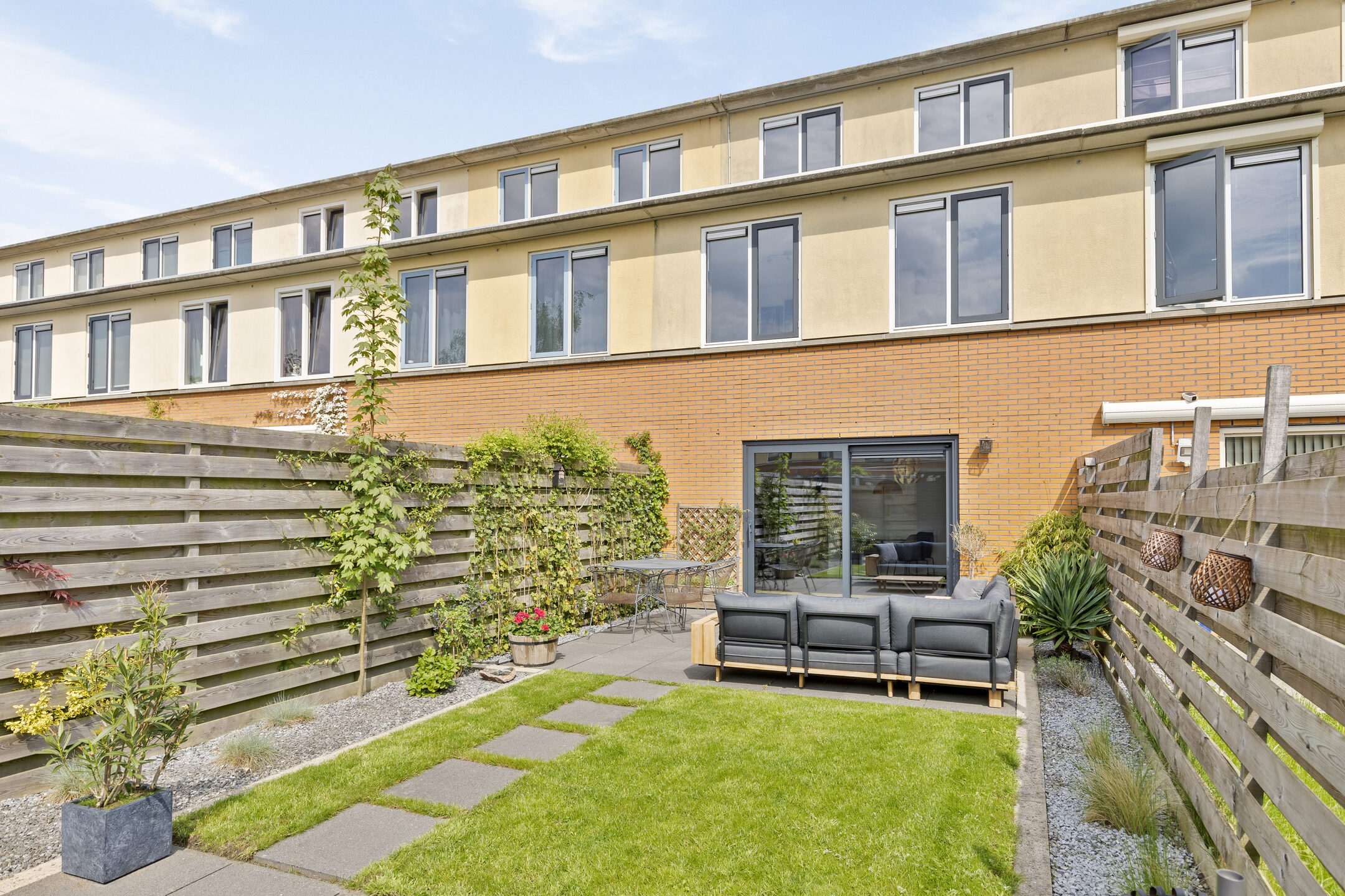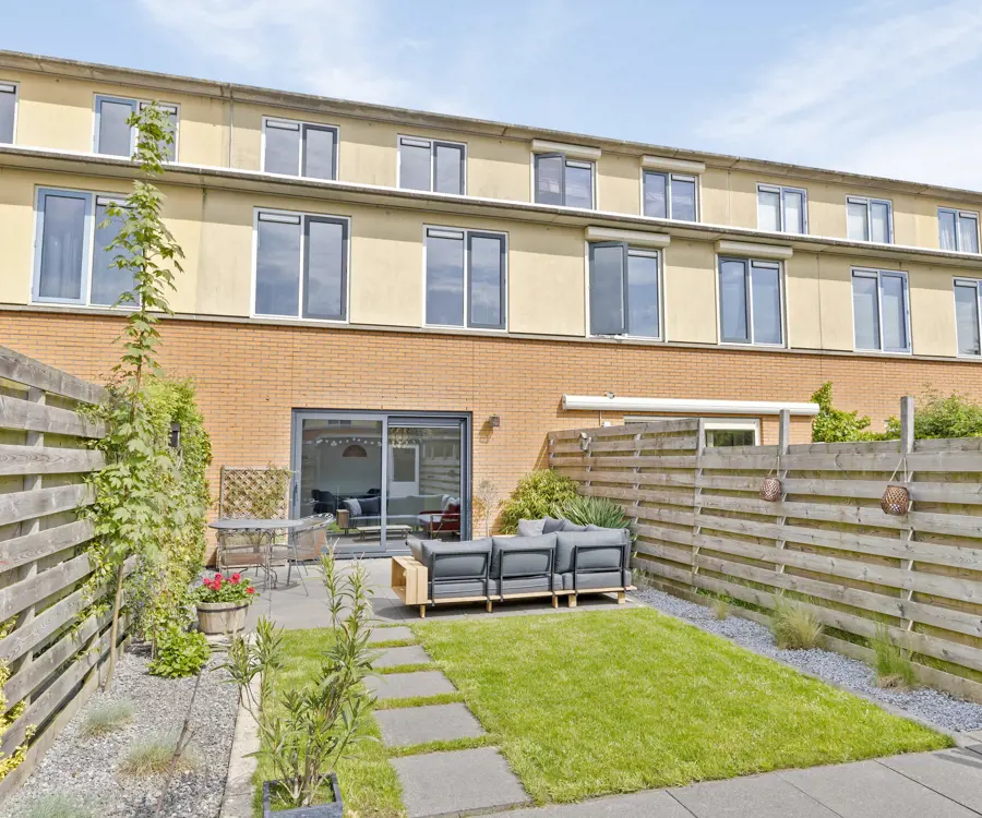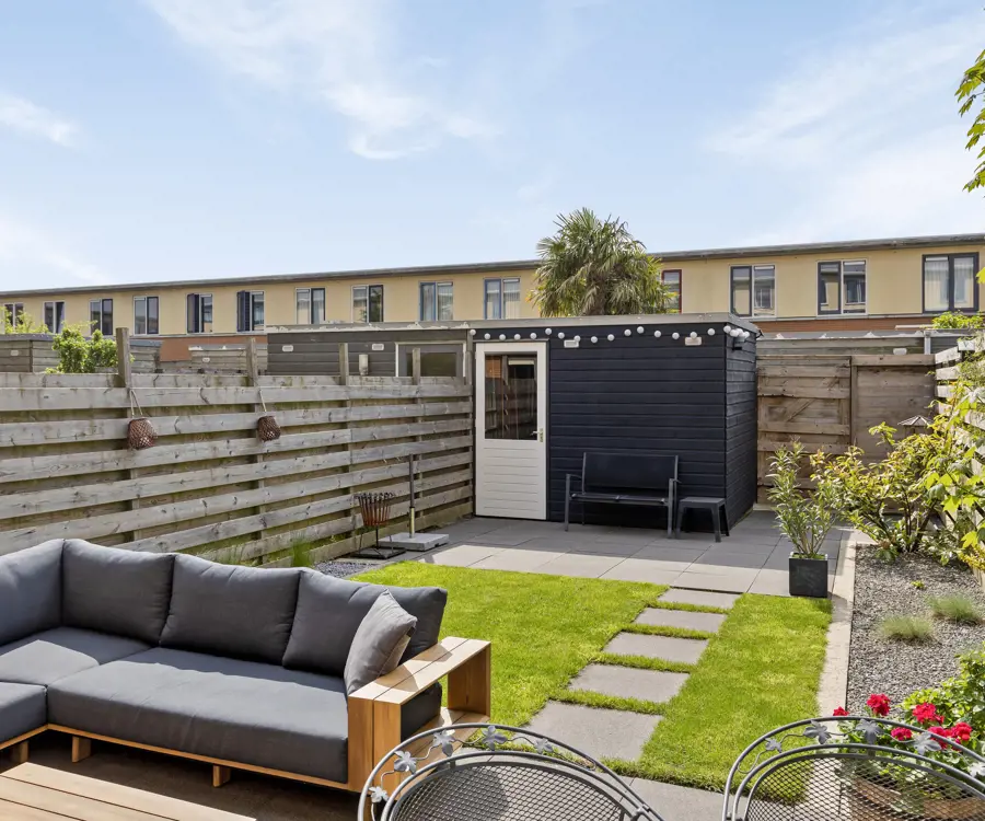 Tuin: via de grote schuifpui stap je zo het zonnige terras aan huis op – een heerlijke plek om te ontspannen. Verderop in de tuin is er nog een extra zitplek in de zon. De tuin is onderhoudsvriendelijk, biedt veel privacy en beschikt over een praktische berging en een achterom.