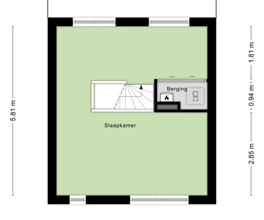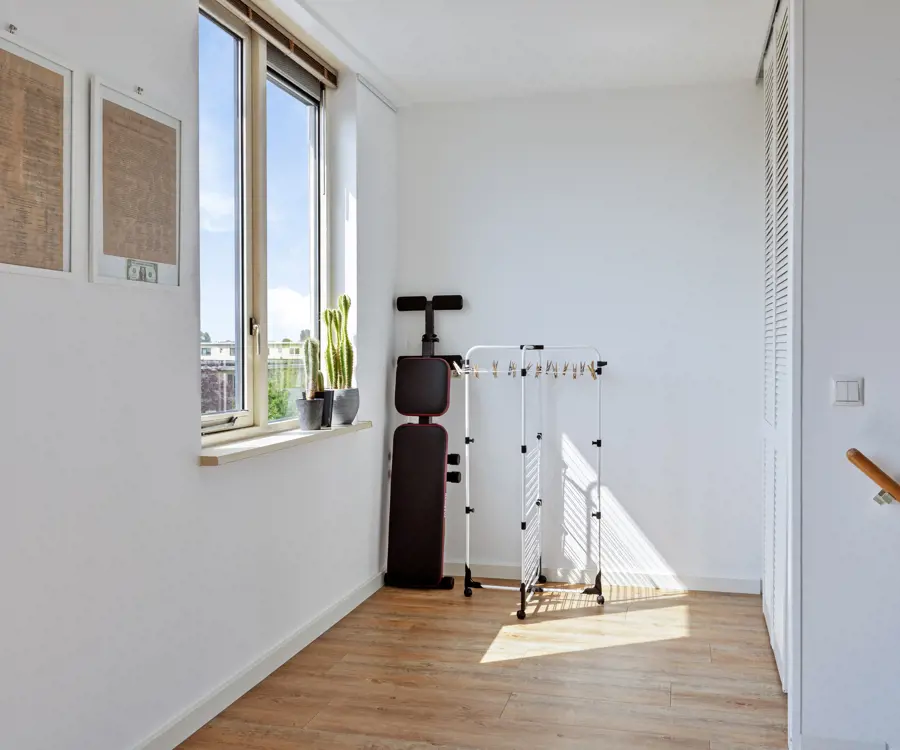Tweede verdieping: de vaste trap leidt naar een royale zolderverdieping waar momenteel een grote derde slaapkamer is gesitueerd. Daarnaast is er een opstelplaats voor de wasmachine, droger en CV-ketel. Door de ruimte is het eenvoudig om hier ook een aparte slaapkamer te creëren.