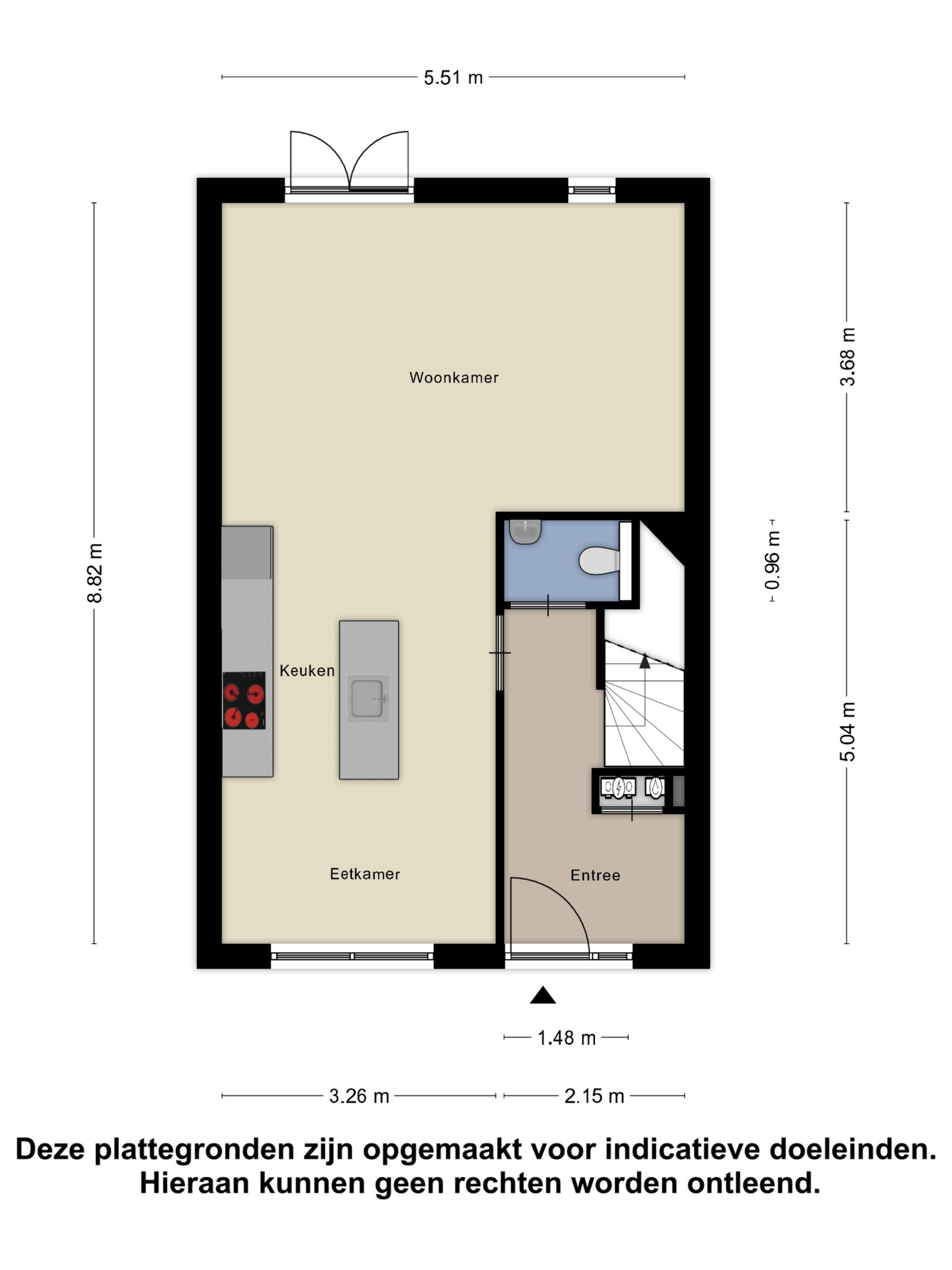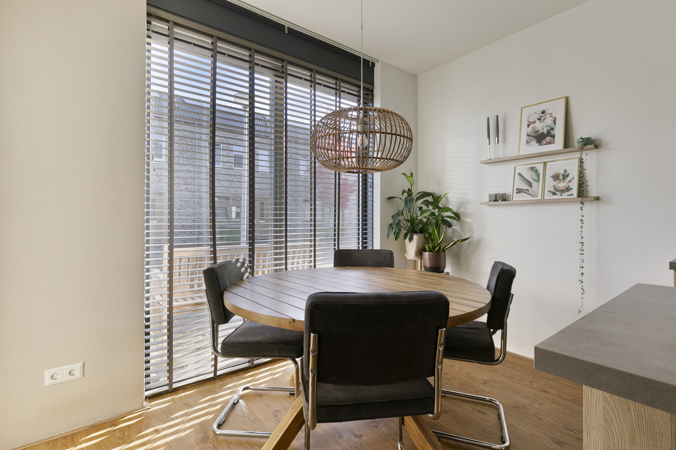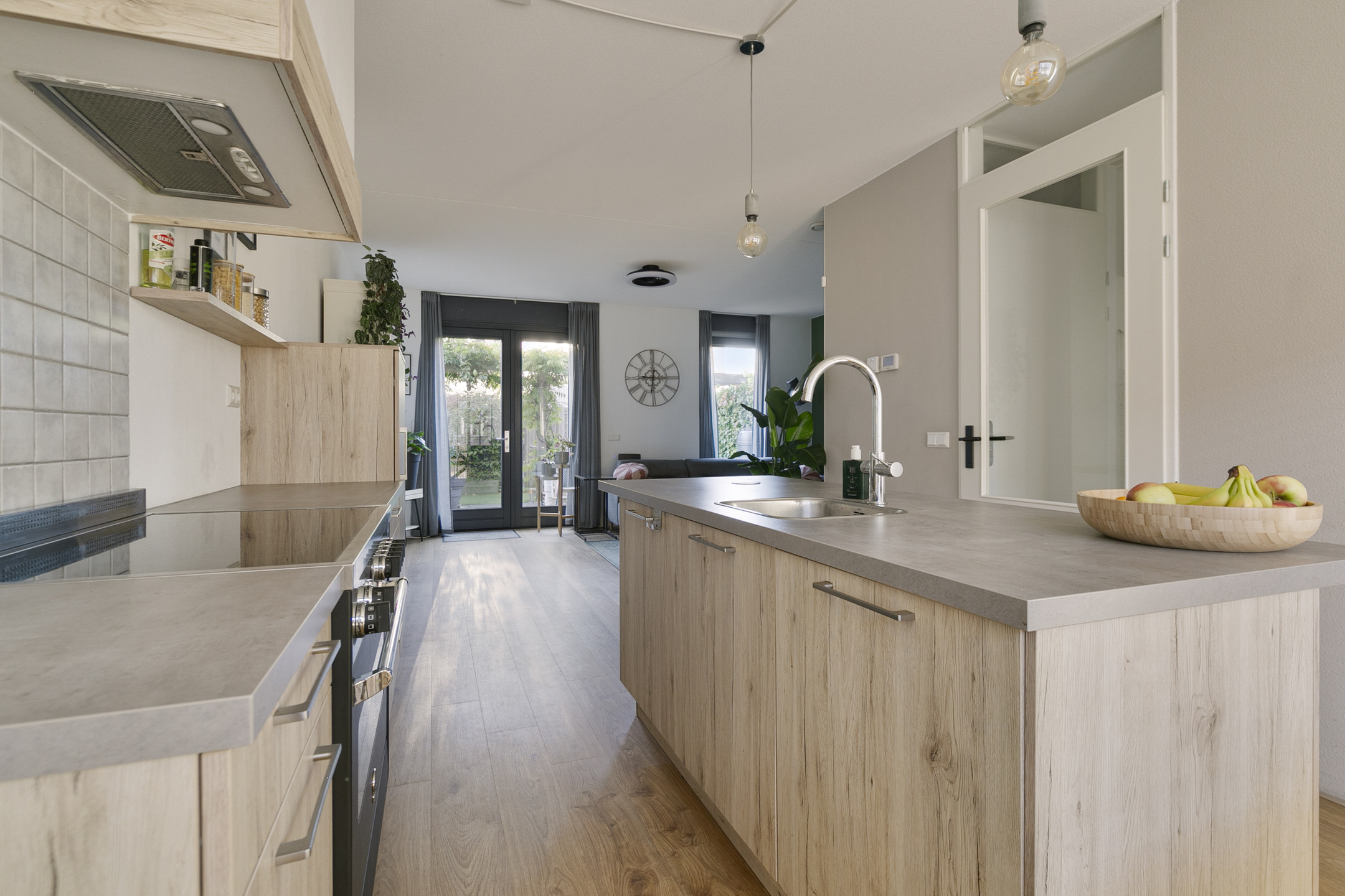 Begane grond: entree die toegang biedt tot een modern toilet, de trap naar de bovenverdieping en meterkast. De woning is voorzien van vloerverwarming, wat bijdraagt aan een aangename temperatuur door het hele huis. De woonkamer, gelegen aan de achterzijde van de woning, is zeer licht dankzij de grote raampartijen en openslaande deuren die directe toegang bieden tot de achtertuin. Dit zorgt voor een heerlijke verbinding tussen binnen en buiten, ideaal voor lange zomeravonden. Aan de voorzijde van de woning bevindt zich de open keuken met een moderne kookeiland-opstelling. De keuken is uitgerust met hoogwaardige apparatuur, waaronder een kokend waterkraan. Aangrenzend is er een eetkamer, perfect voor gezellige diners met familie en vrienden.