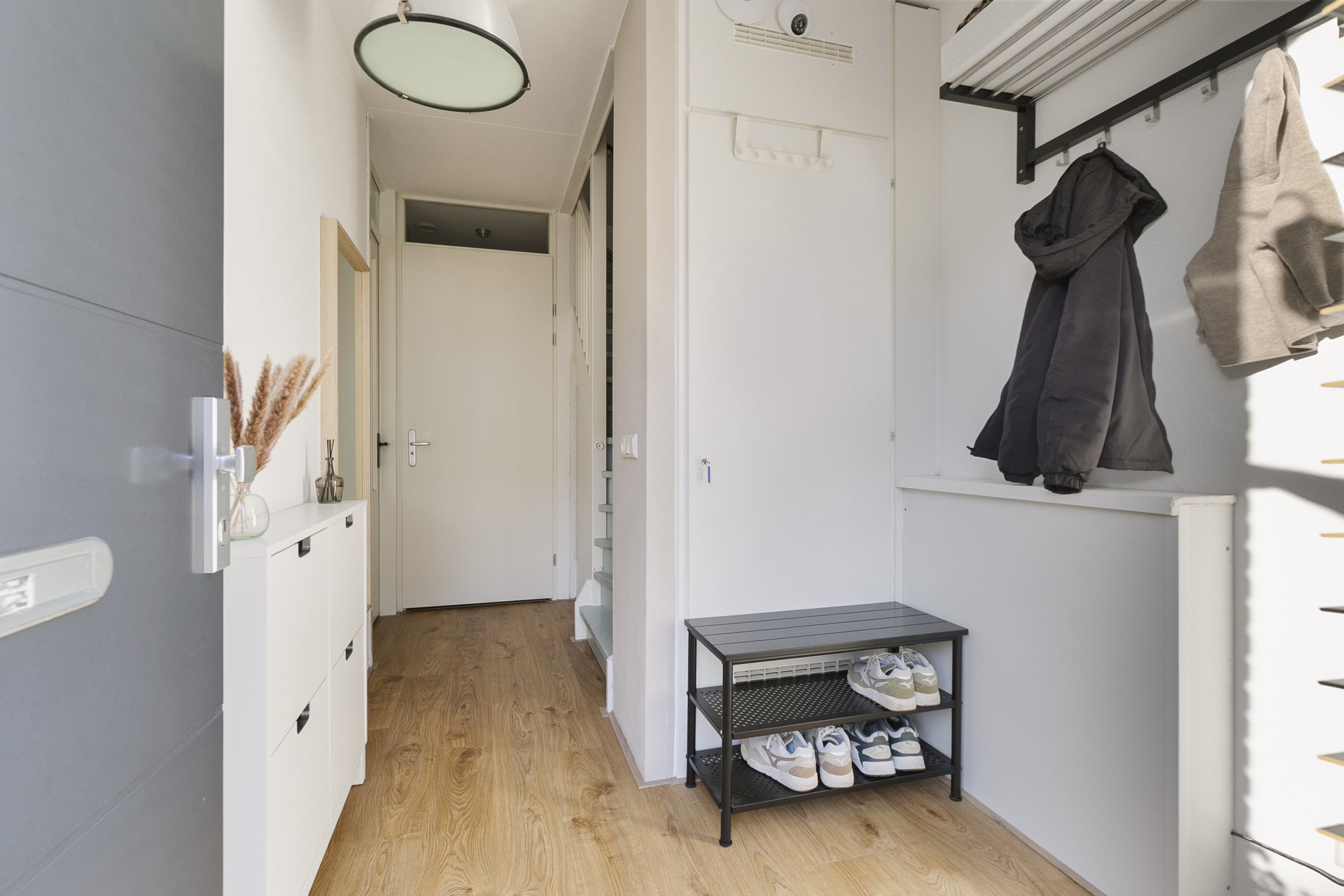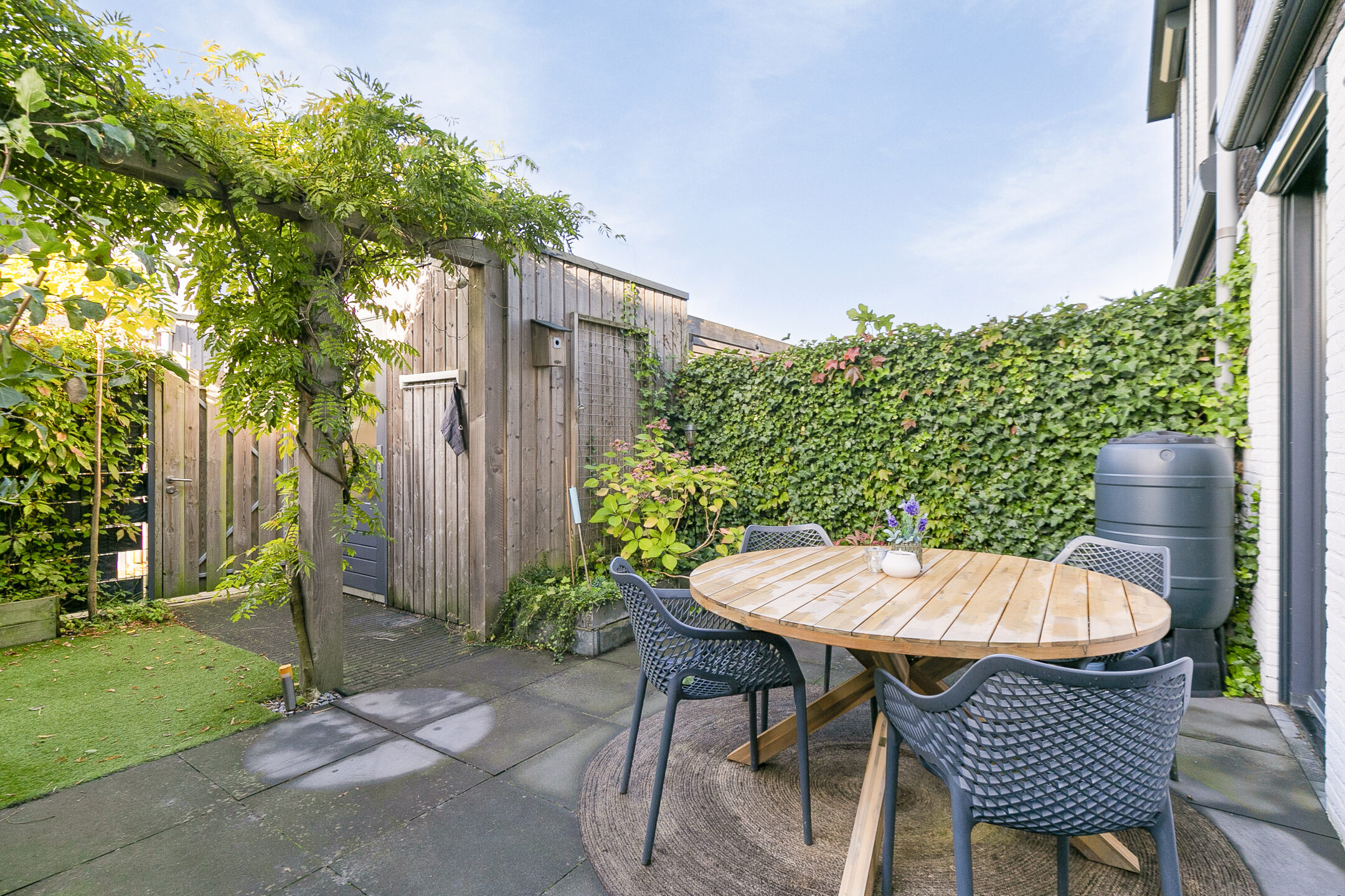 Aan de achterzijde van het huis bevindt zich een zonnige tuin op het zuidwesten, waar je de hele dag kunt genieten van de zon. In de tuin staat een handig schuurtje, voorzien van een milieuvriendelijk sedumdak. Daarnaast zorgen screens en zonwering ervoor dat het binnen ook op warme dagen heerlijk koel blijft. De acht zonnepanelen op het dak dragen bij aan een duurzame energievoorziening en drukken de energiekosten aanzienlijk.