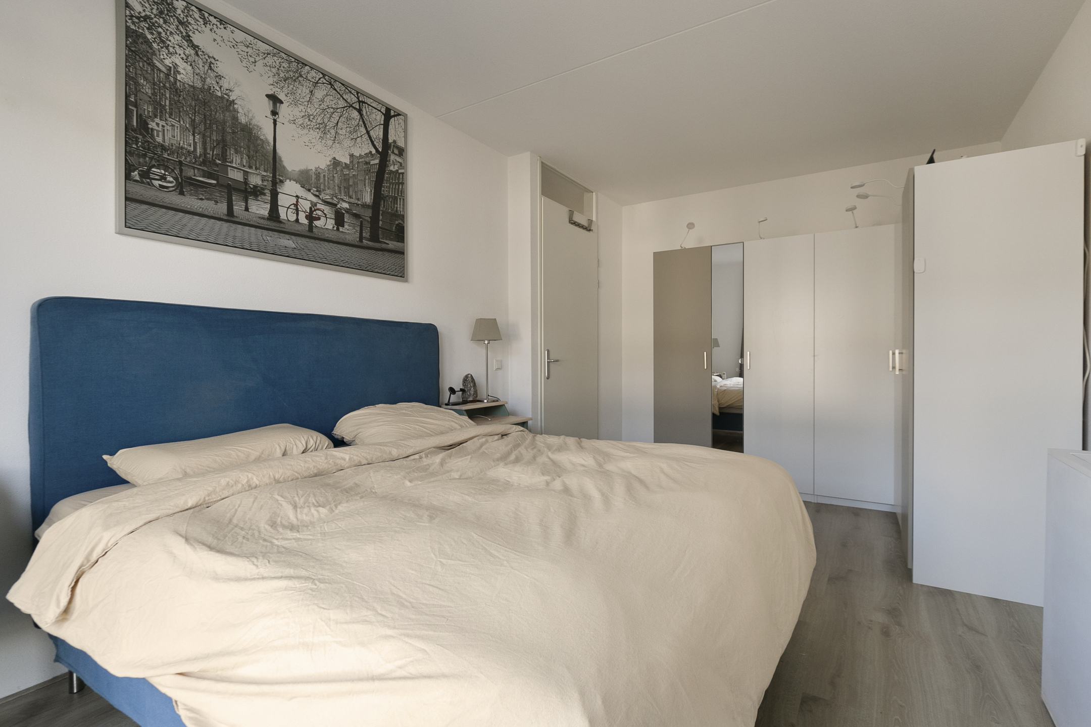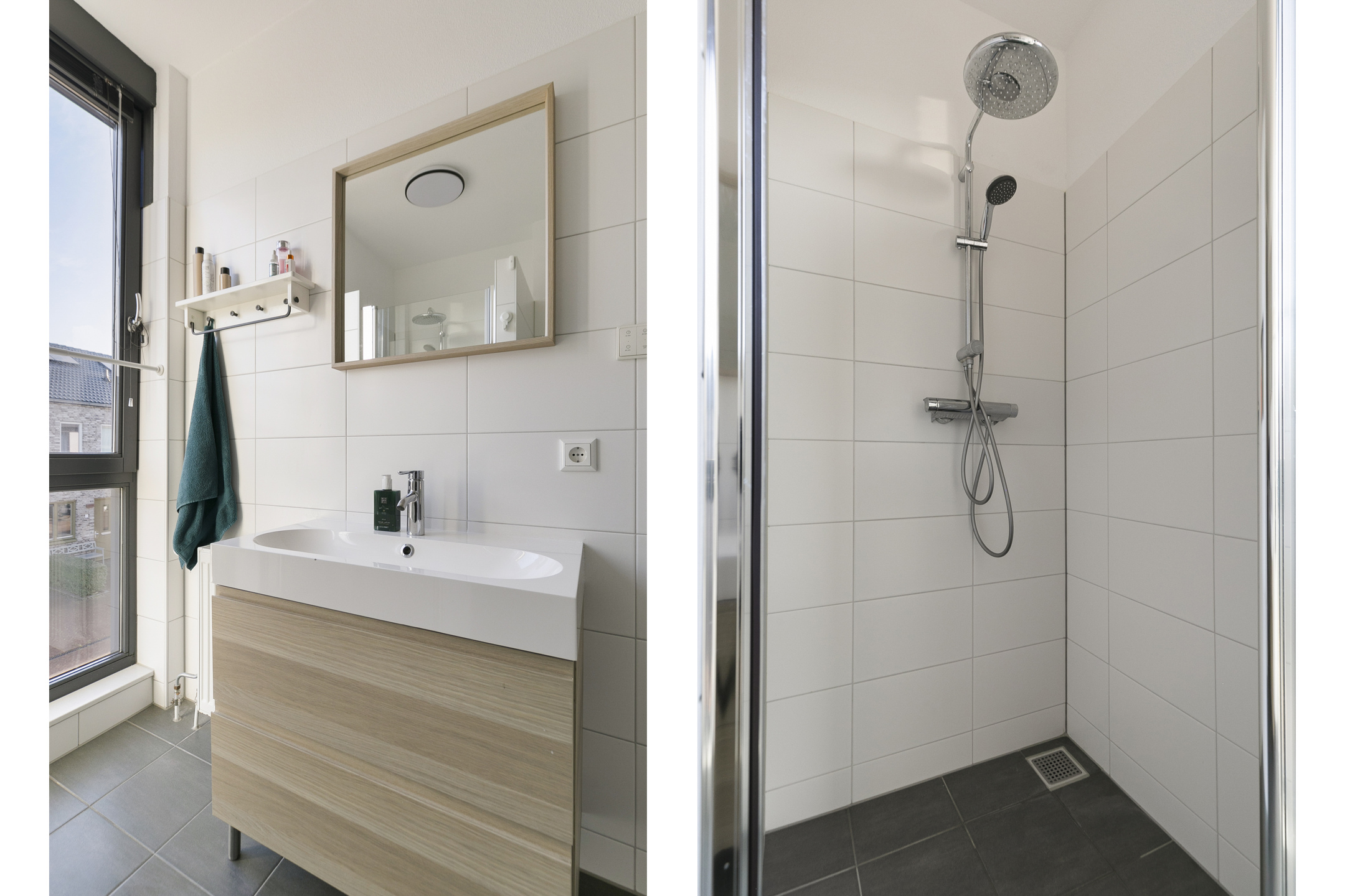 Eerste verdieping: op deze verdieping bevinden zich drie ruime slaapkamers. De slaapkamers aan de achterzijde hebben screens, wat prettig is tijdens de warme zomerdagen. De badkamer is voorzien van een douche, wastafel met bijbehorend meubel en een tweede toilet. De overloop verbindt alle kamers en geeft toegang tot de 2de verdieping via een vaste trap.