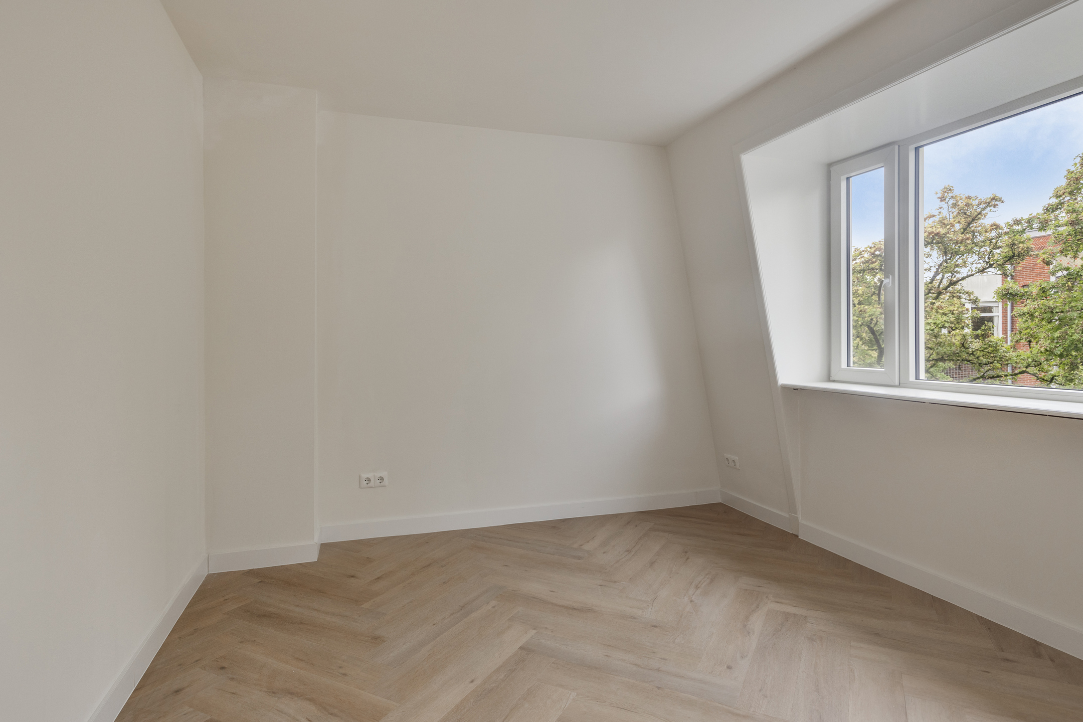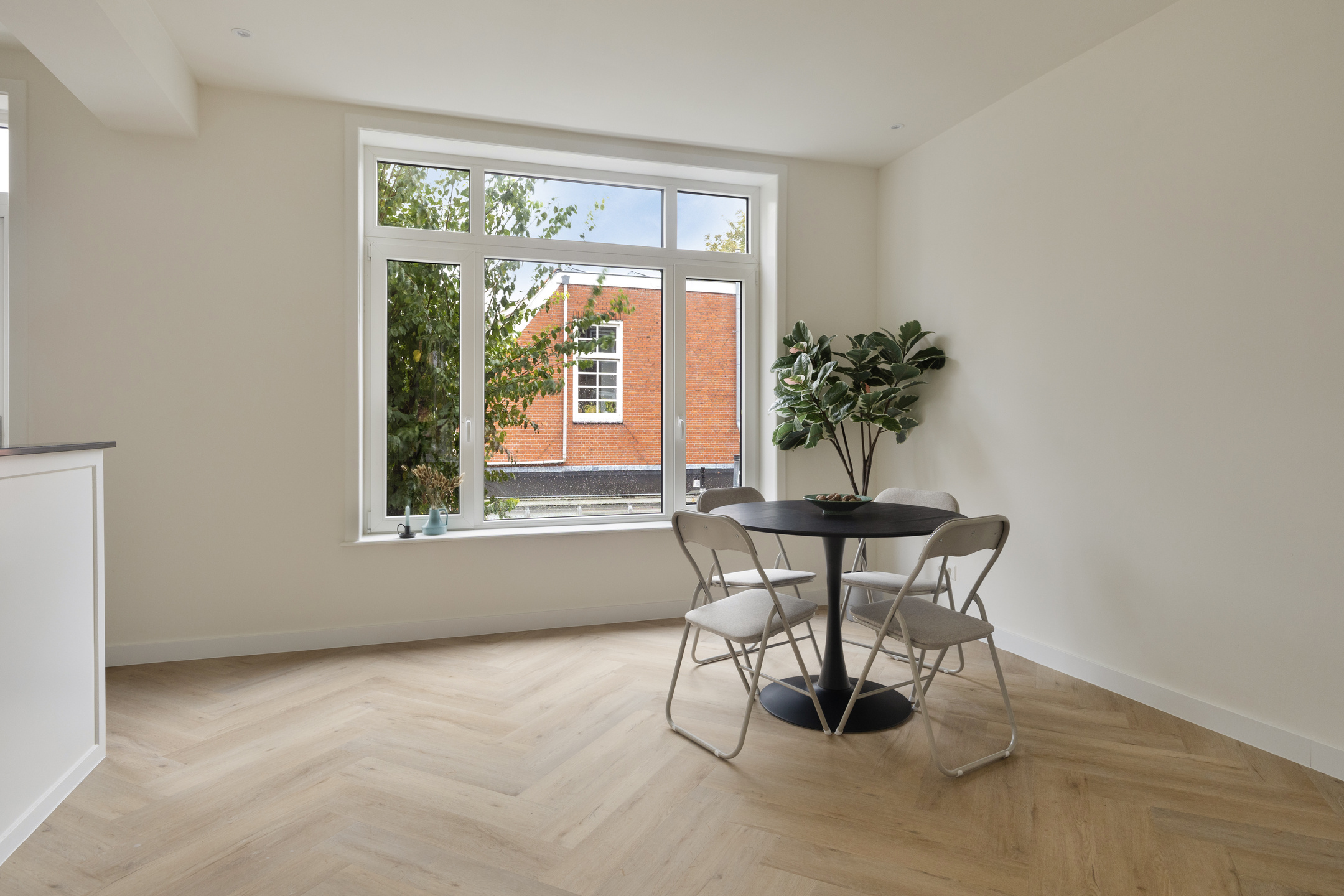 Deze prachtige bovenwoning aan de Professor Rankestraat 43a is recent volledig gerenoveerd en biedt een unieke combinatie van moderne luxe en authentieke details. Met een oppervlakte die optimaal is benut en een hoogwaardige afwerking is deze woning een echte parel in de stad. Bij binnenkomst valt meteen de warme en luxe uitstraling van de visgraat vloer op, die door de gehele woning is gelegd en samen met de vloerverwarming zorgt voor een comfortabel woonklimaat. De woning is grotendeels voorzien van kunststof kozijnen, wat niet alleen zorgt voor een strakke uitstraling, maar ook bijdraagt aan de energiezuinigheid, in combinatie met de volledige isolatie. De prachtige en-suite deuren verbinden de woonkamer en eetkamer op een elegante manier, waardoor de indeling praktisch en stijlvol blijft. Buiten genieten kan op het ruime dakterras, een heerlijke plek voor een rustige ochtend of om ’s avonds te ontspannen.