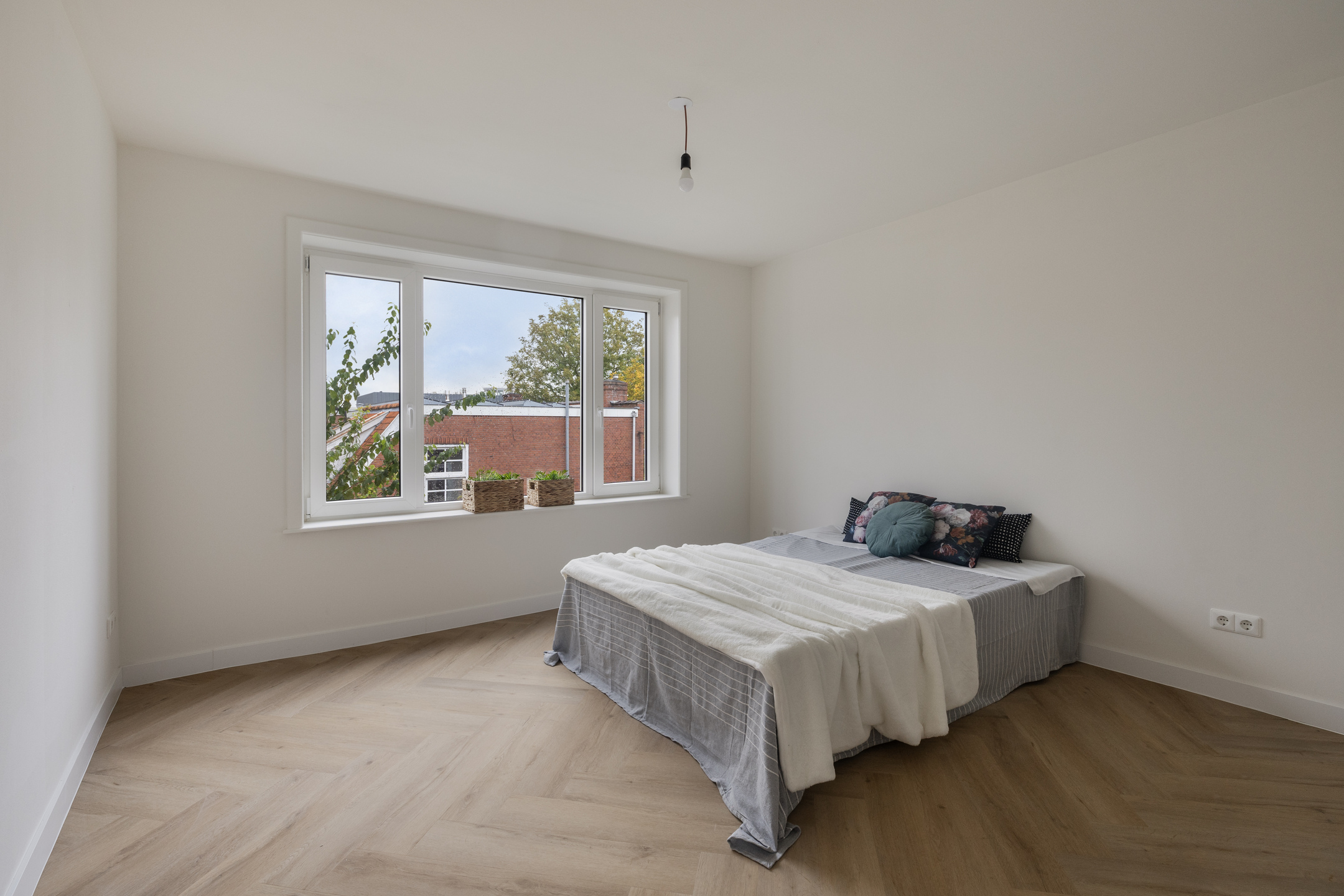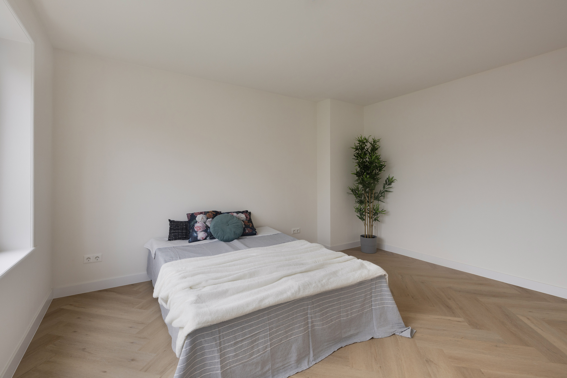 Tweede verdieping: op deze verdieping zijn twee ruime slaapkamers. Verder is er een multifunctionele ruimte, ideaal als extra werkplek of hobbykamer. Deze ruimte biedt ook een handige plek voor de wasmachine. Ook deze verdieping is voorzien van vloerverwarming, wat zorgt voor een aangename temperatuur en comfort in elke ruimte, terwijl de stijlvolle visgraat vloer een luxe uitstraling geeft. Daarnaast is een airco aanwezig voor koeling in de zomer en extra warmte in de winter. De moderne badkamer is voorzien van een inloopdouche, dubbelwastafel en een toilet in dezelfde sfeervolle stijl.