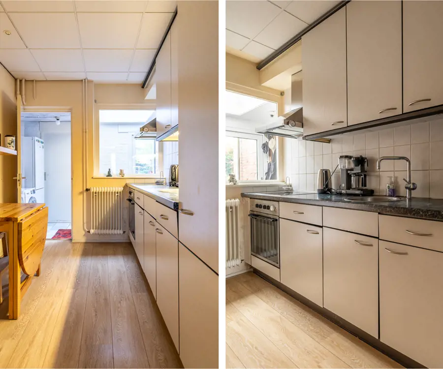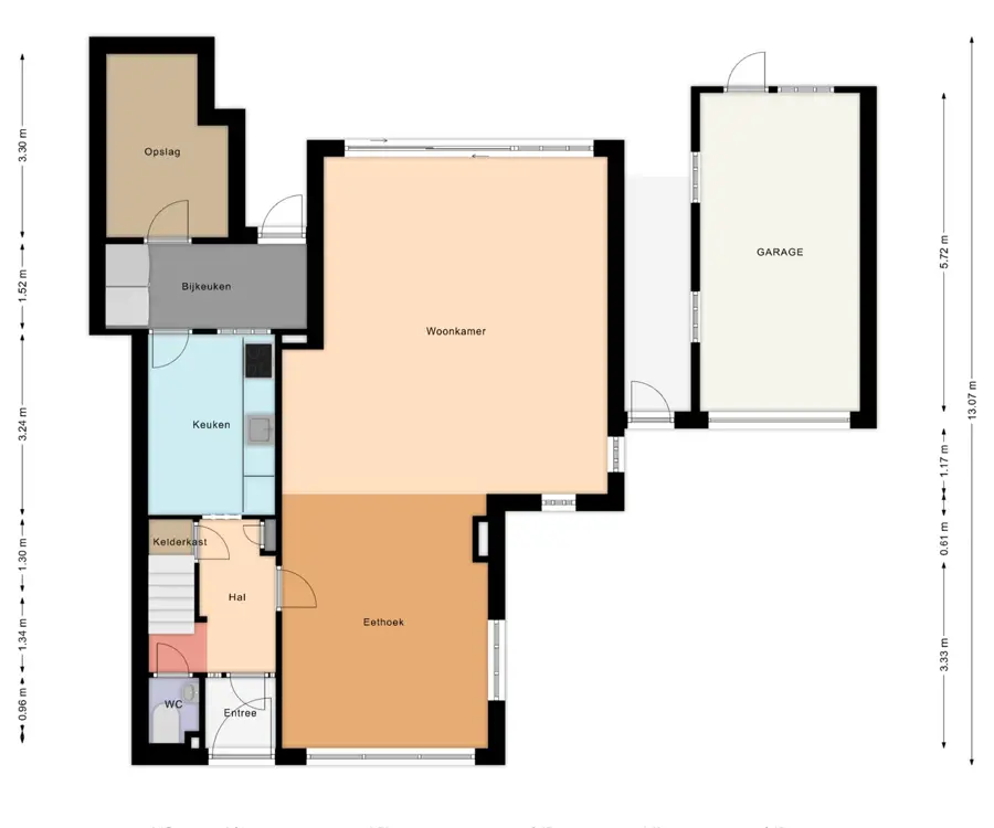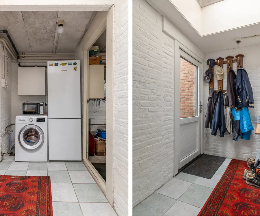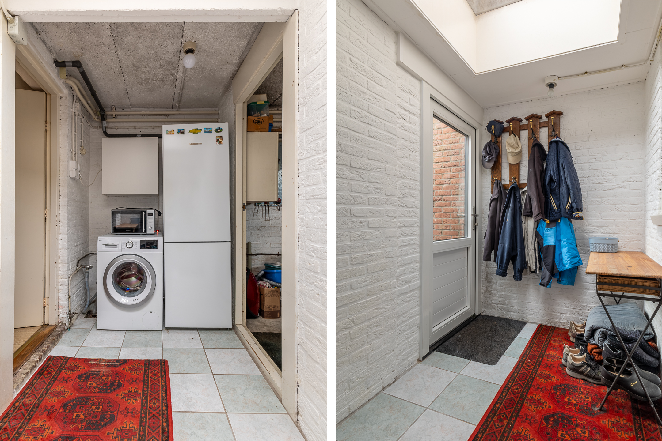 Begane grond: entree/hal voorzien van meterkast, trap met toegang tot de eerste verdieping, toilet en kelderkast. Bij binnenkomst van de woonkamer valt direct de lichtinval op, mede dankzij de grote raampartijen en de schuifpui aan de achterkant van de woonkamer die uitzicht biedt op de diepe en fraai aangelegde achtertuin. De ruime woonkamer is een ideale plek voor gezellige avonden met familie of vrienden, en biedt via de schuifpui directe toegang tot het terras en de tuin. De keuken is praktisch ingericht. Aansluitend is een handige bijkeuken aanwezig en nog een bergruimte met voldoende opslagmogelijkheden.