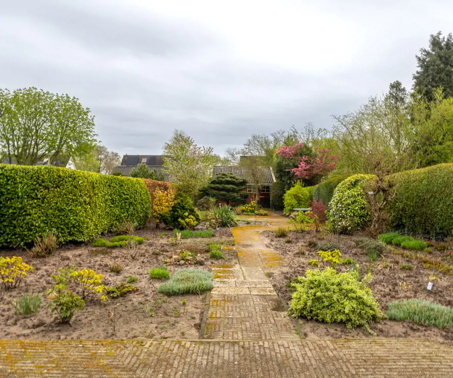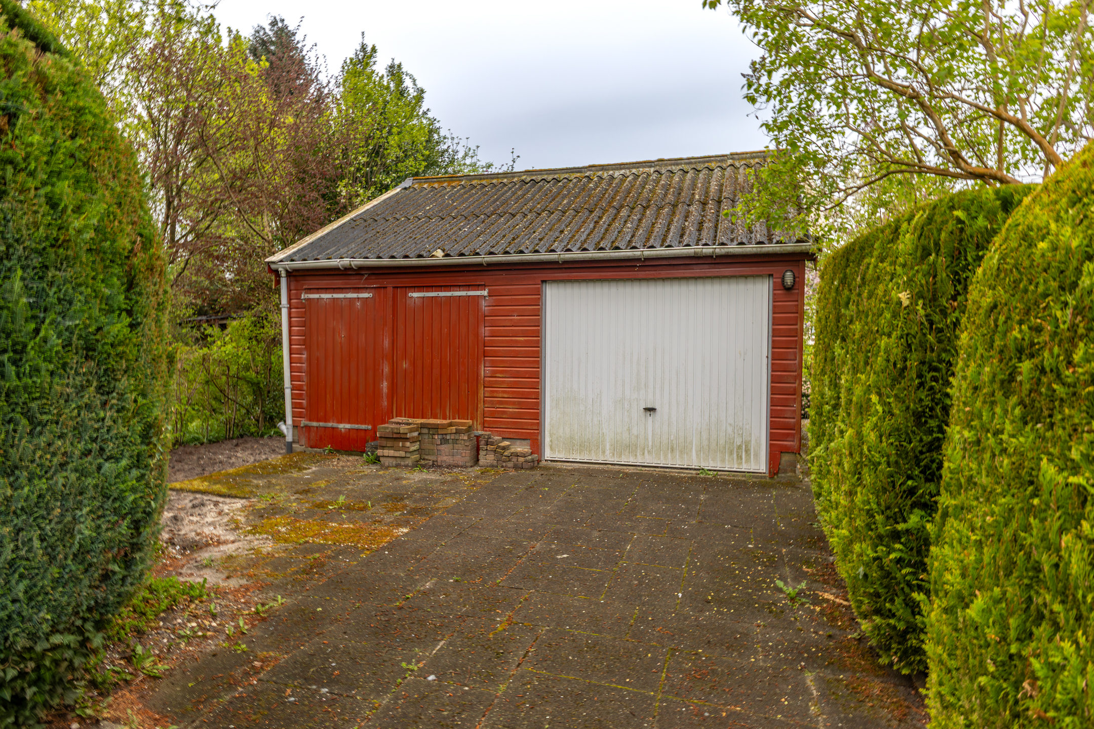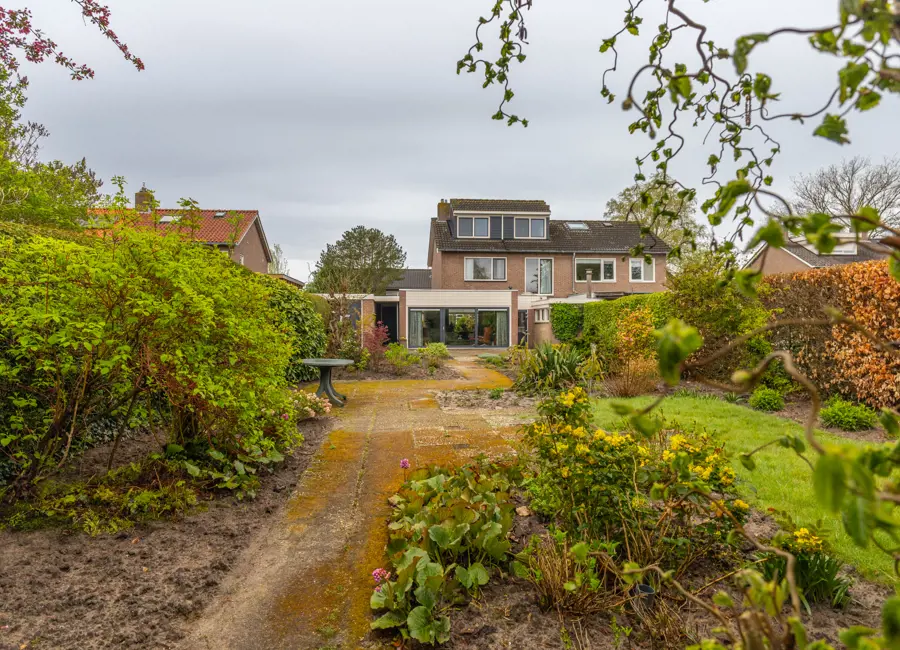 Buiten: de tuin is een van de absolute parels van deze woning: zeer langgerekt, groen en met veel privacy. Achterin de tuin bevindt zich een dubbele garage met vliering welke middels een achterom is te bereiken, ideaal voor hobbyisten of als opslag. Aan de voorzijde beschikt de woning over een stenen garage met ruime oprit, geschikt voor meerdere auto’s.