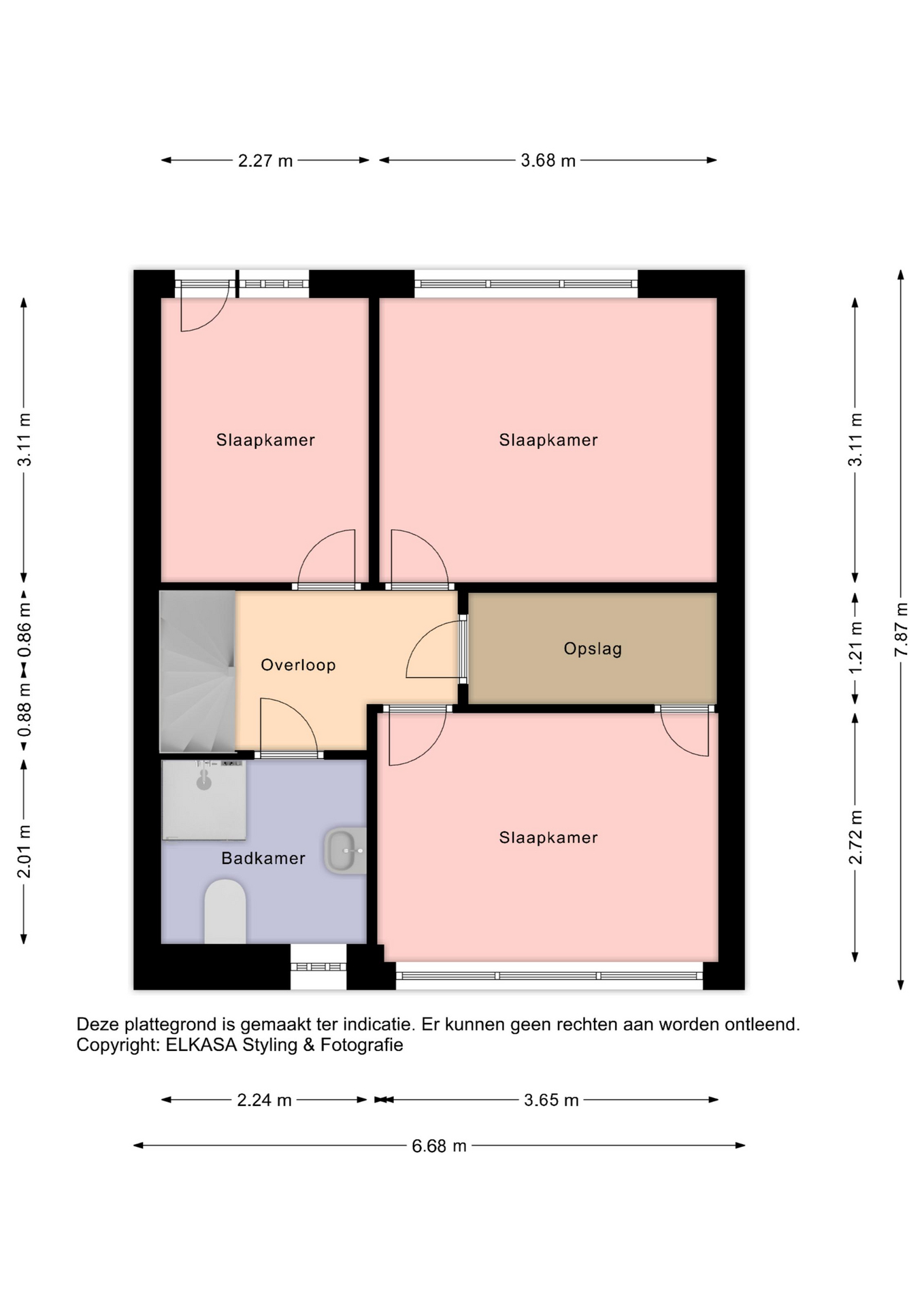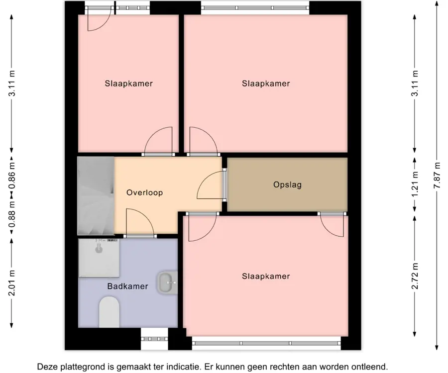 Eerste verdieping: op deze verdieping zijn drie slaapkamers aanwezig en een handige inloopkast. De badkamer biedt een praktische indeling met een douchecabine, wastafel en toilet.