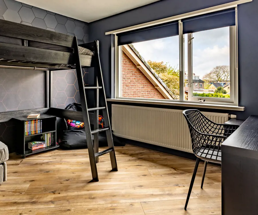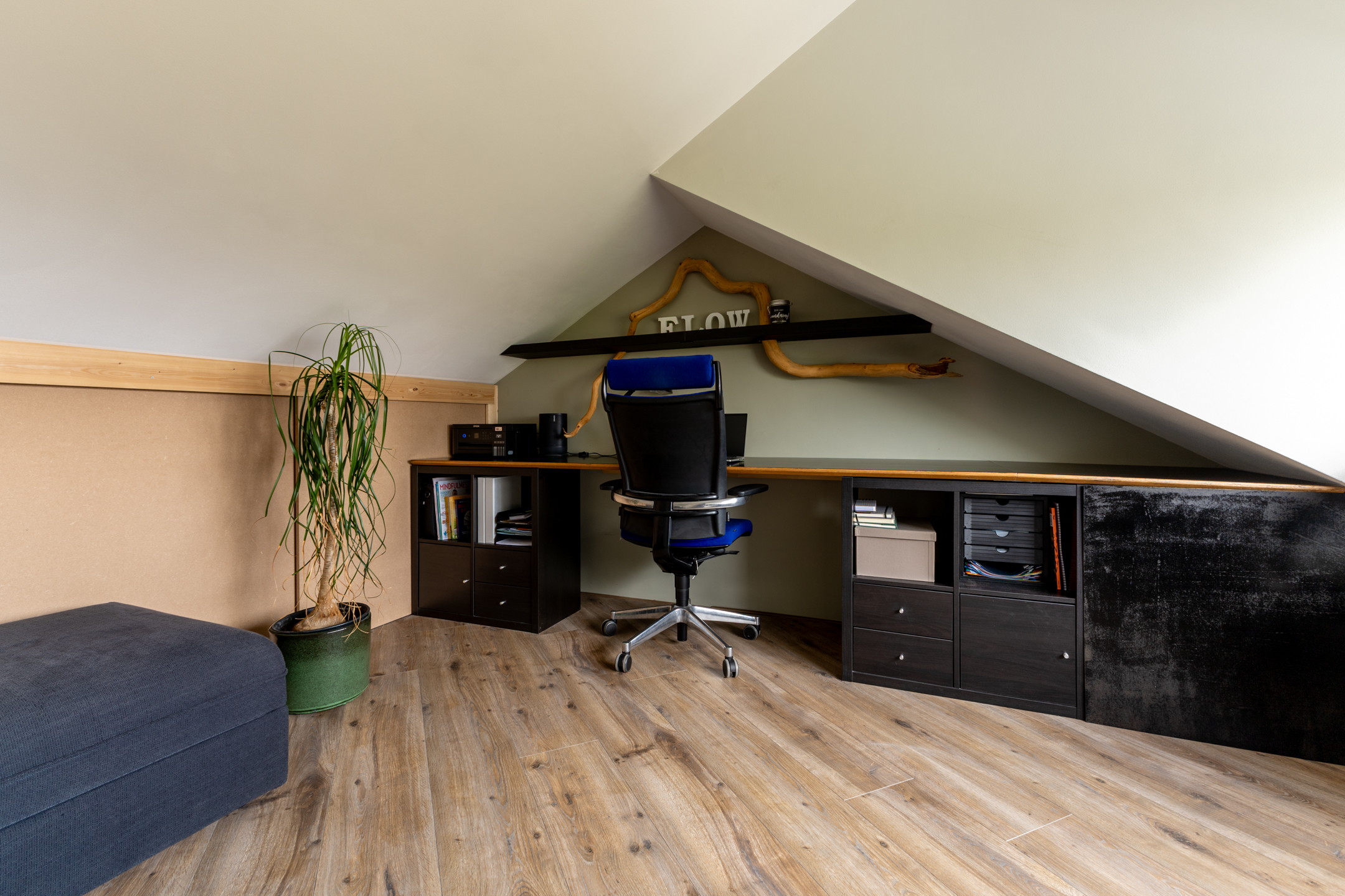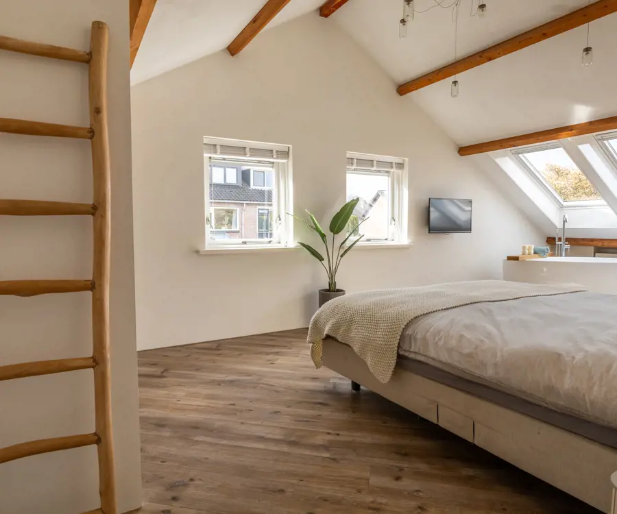 Tweede verdieping: via een vaste trap bereik je de verrassend ruime tweede verdieping voorzien van een kunststof dakopbouw. Hier bevindt zich de vijfde slaapkamer, perfect als logeerkamer of werkkamer. De overloop biedt extra bergruimte en mogelijkheden voor een thuiswerkplek of hobbyhoek.