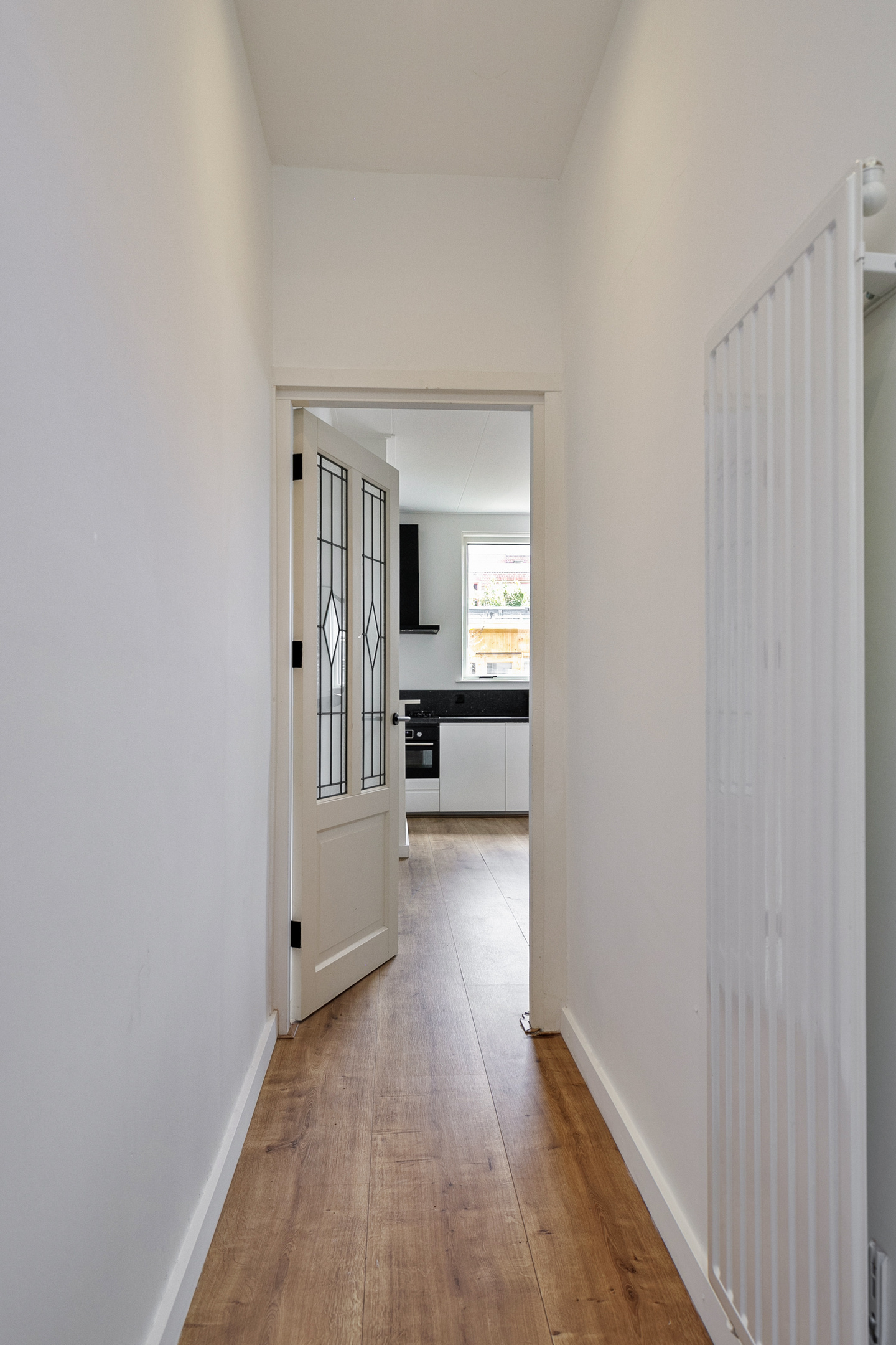 Begane grond: entree/hal, open keukenopstelling voorzien van inbouwapparatuur. De keuken is geplaatst in 2021. Vanuit de keuken heb je toegang tot het toilet en de woonkamer aan de voorzijde van de woning. Mogelijkheden genoeg, want van de woonkamer aan de voorzijde kan eventueel ook een tweede slaapkamer worden gemaakt. De moderne badkamer is tevens geplaatst in 2021 en beschikt over een inloopdouche en wastafel met bijbehorend meubel. Tot slot is er nog een slaapkamer aanwezig in de aanbouw.