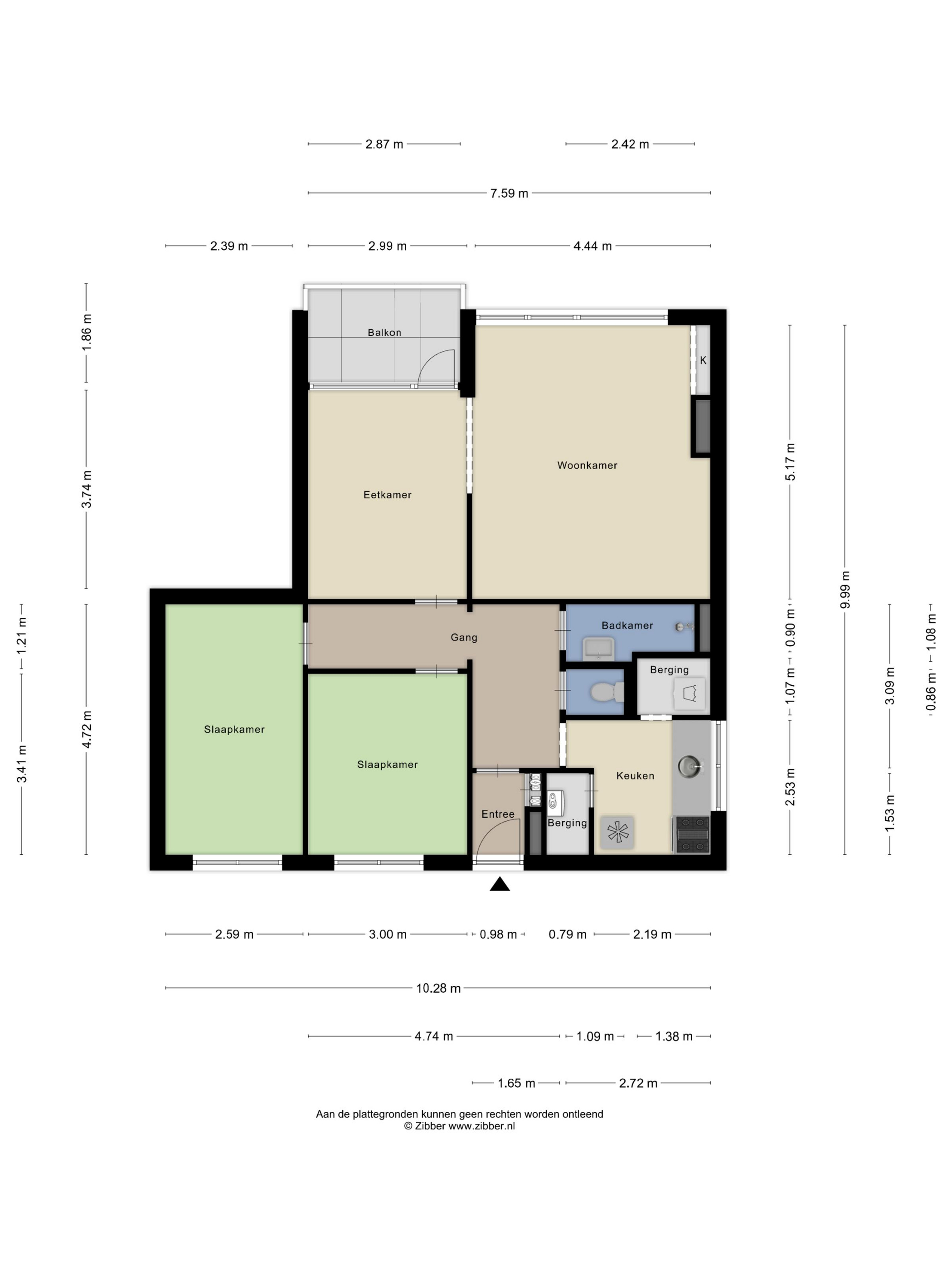 - Inpandige berging;