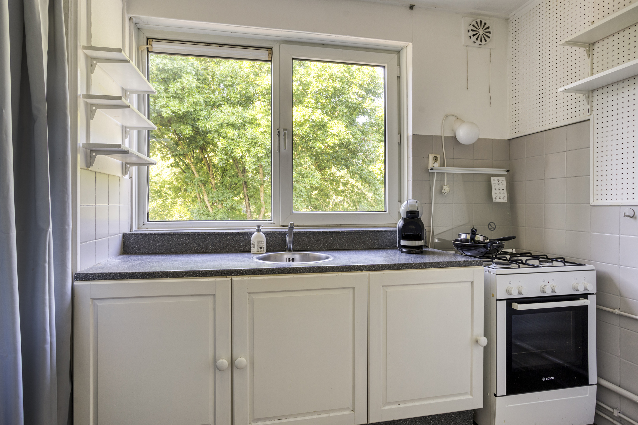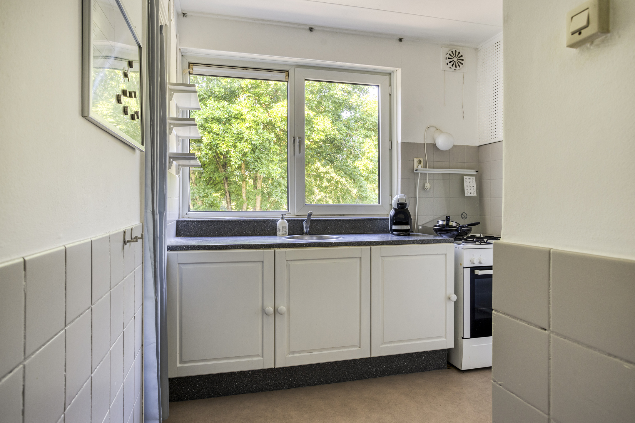 Goed onderhouden hoekappartement op de derde verdieping, fraai gelegen aan een groenstrook en grotendeels voorzien van kunststof kozijnen. Het appartement beschikt over een ruime woonkamer met eetgedeelte en toegang tot het zonnige balkon op het zuiden. Door de grote raampartijen is het een heerlijke lichte woonkamer. Er zijn momenteel twee slaapkamers, maar het is eenvoudig mogelijk om van het eetgedeelte een derde slaapkamer te maken.