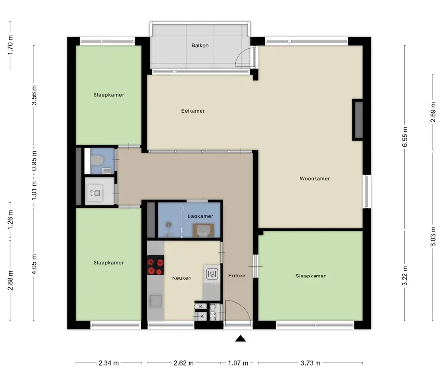 • Ruime woonkamer en eetkamer: de ideale plek om tot rust te komen, met toegang tot het zonnige balkon.